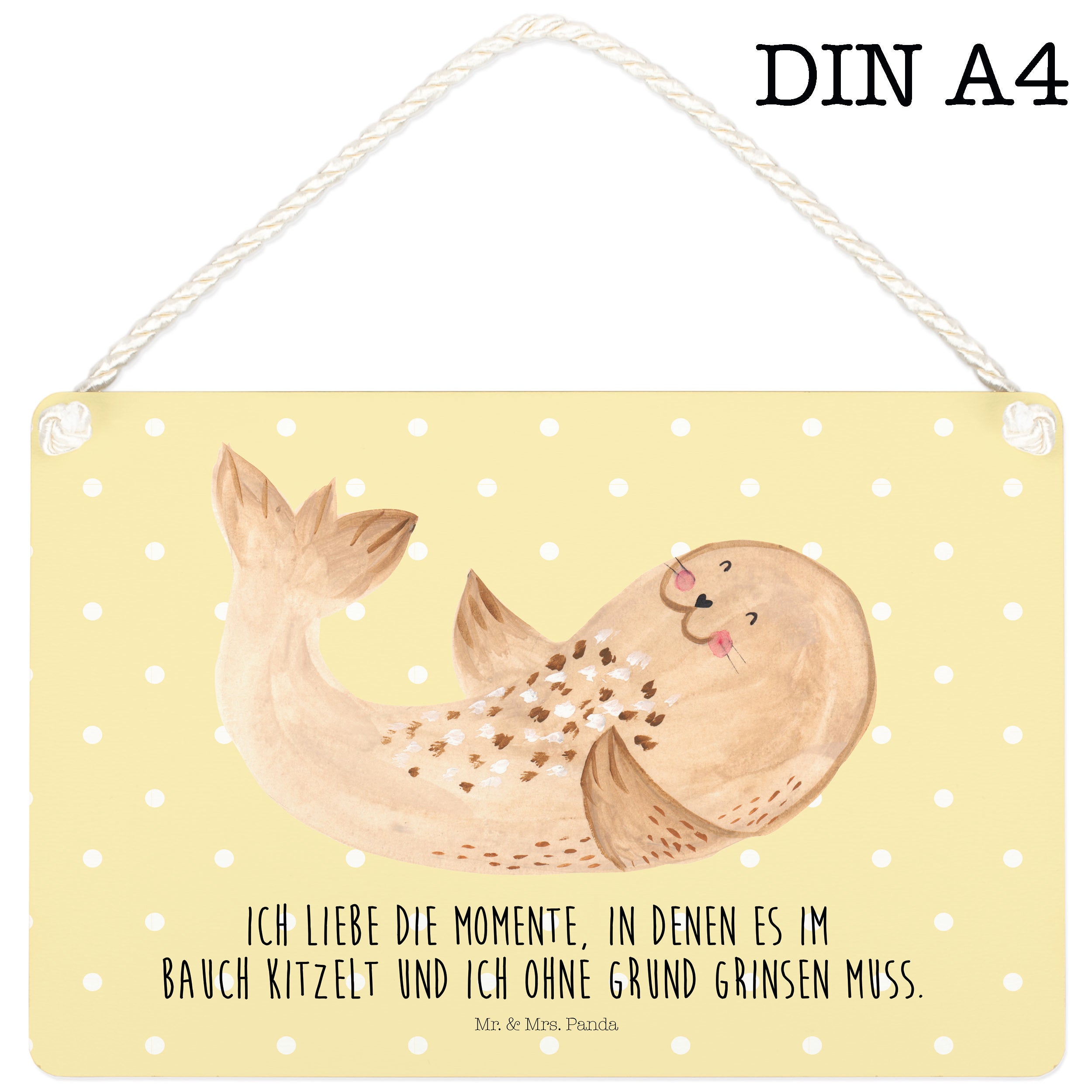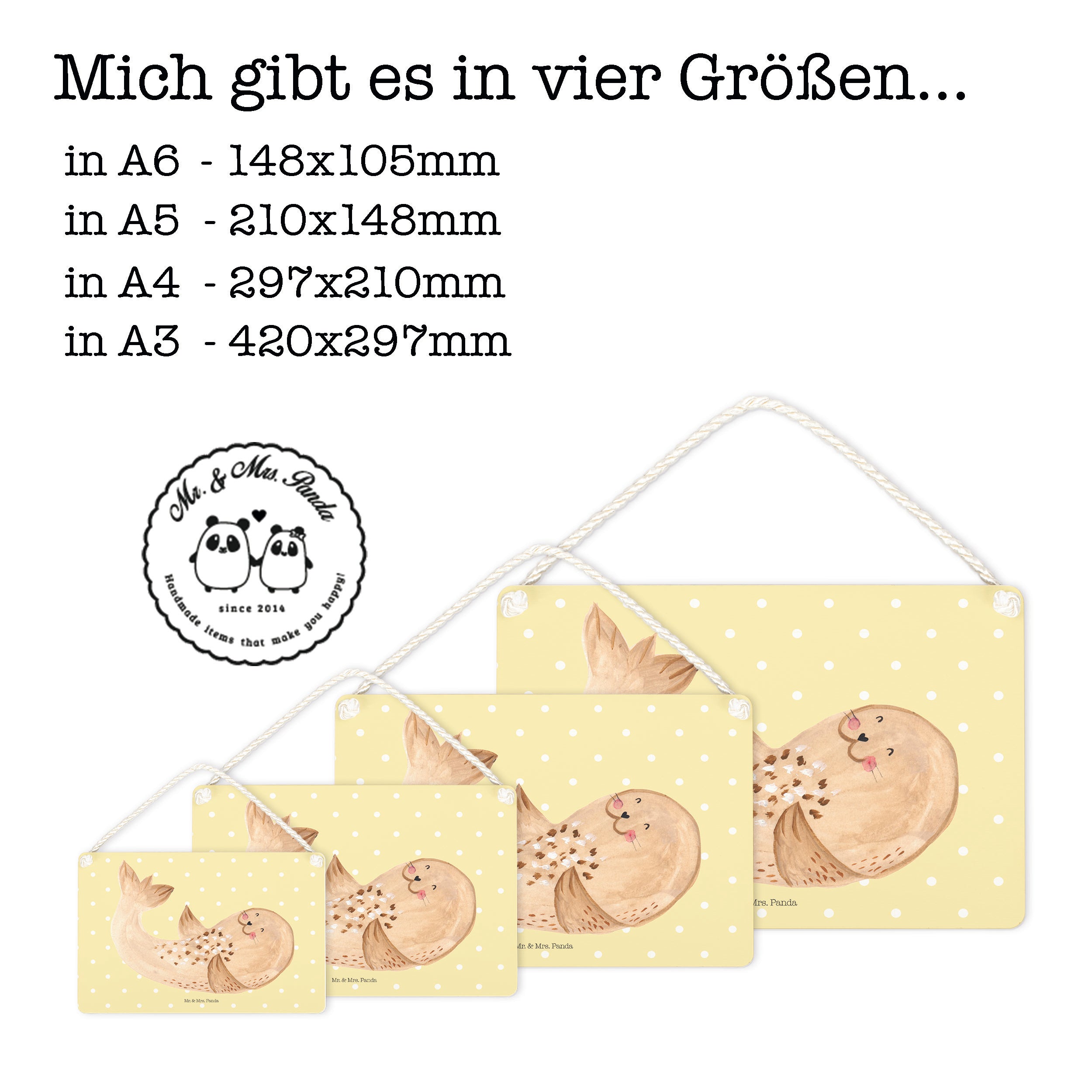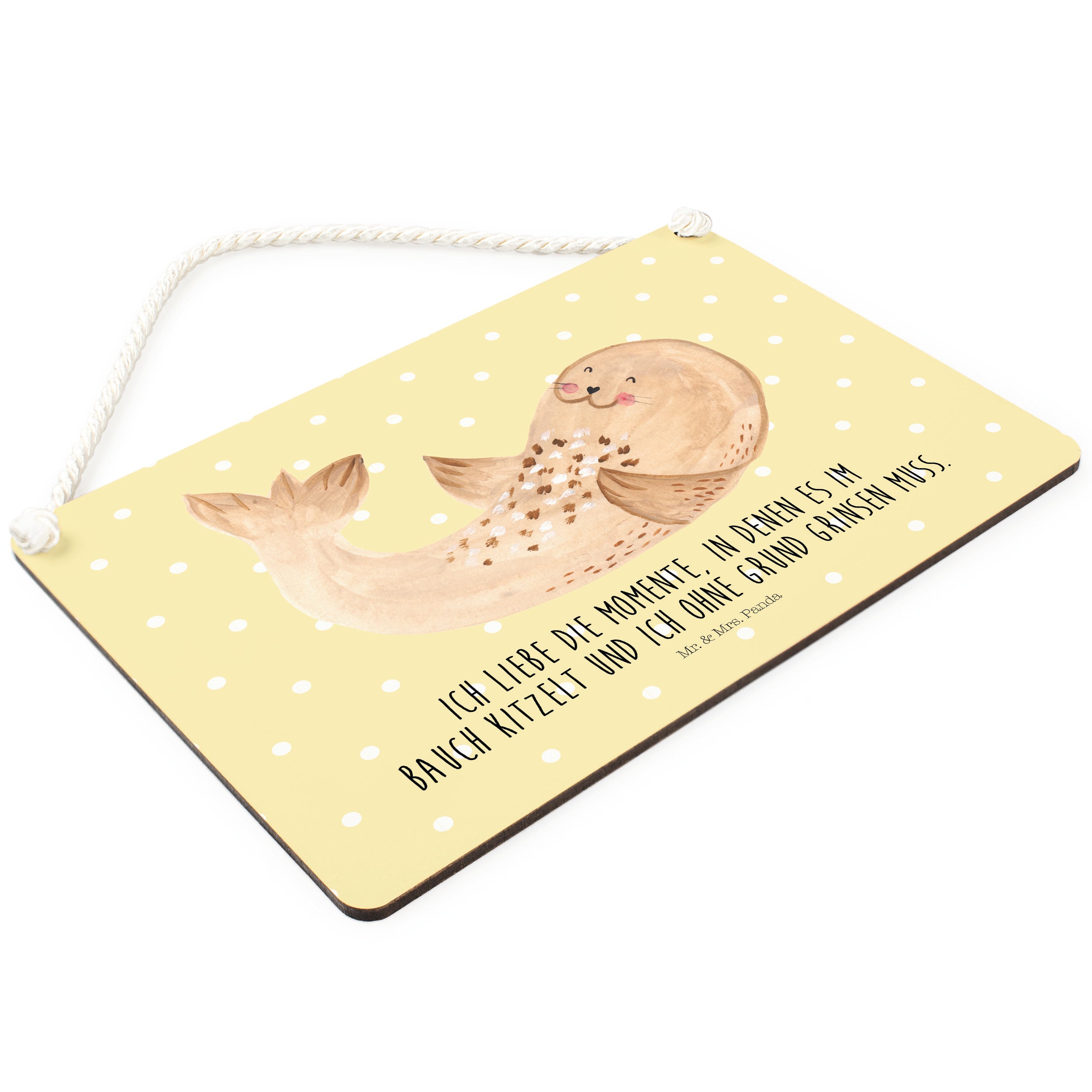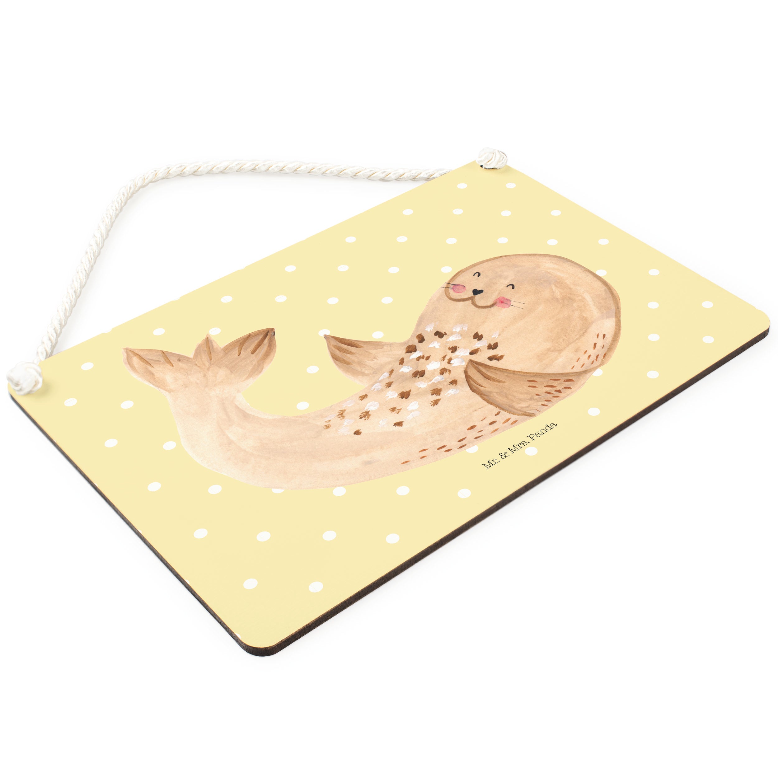 Deko Schild Robbe liegend - mit Spruch - Gelb Pastell