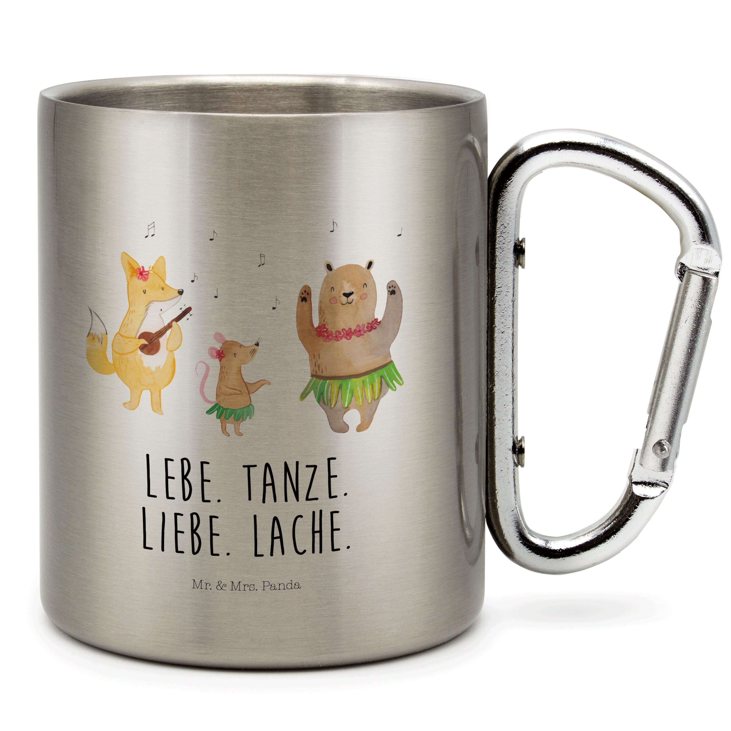 Edelstahlbecher Waldtiere Aloha Edelstahltasse, Karabiner, Edelstahlbecher, Outdoor, Camping, Tasse, Becher, Tiermotive, Gute Laune, lustige Sprüche, Tiere, Wald, Waldtiere, Musik, Aloha, Bär, Hase, Igel, Tanzen, Leben, Lachen