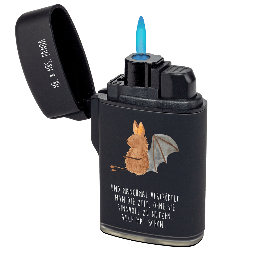 Feuerzeug Fledermaus sitzend - mit Spruch