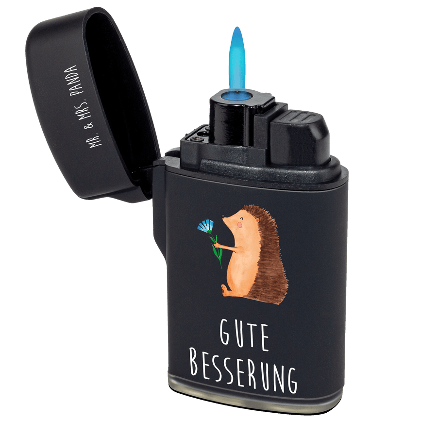 Feuerzeug Igel mit Blume Tiermotive, Gute Laune, lustige Sprüche, Tiere, Igel, Gute Besserung, Genesungswünsche, Krankheit, Krankenhaus, krank, Besuch
