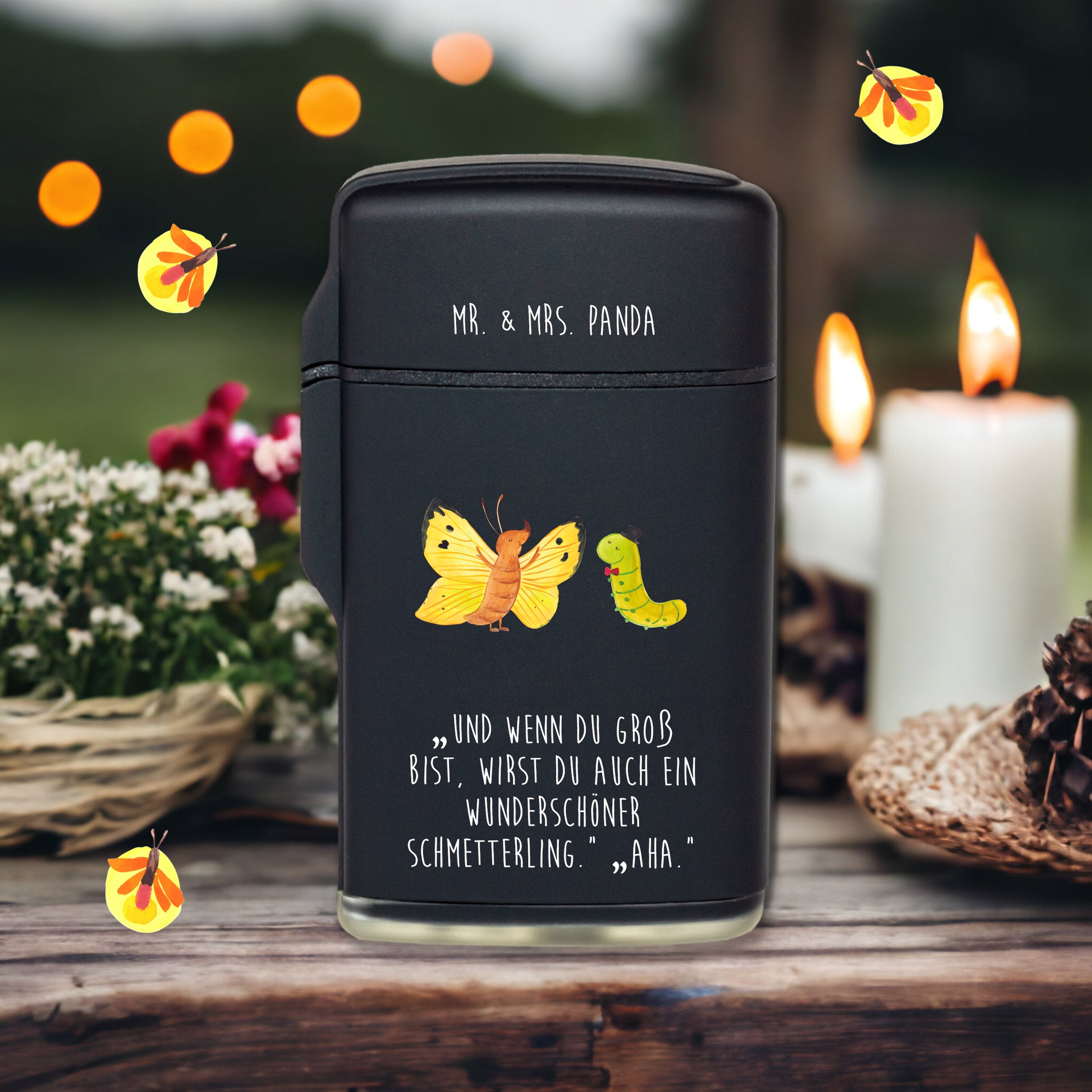 Feuerzeug Raupe & Schmetterling - mit Spruch