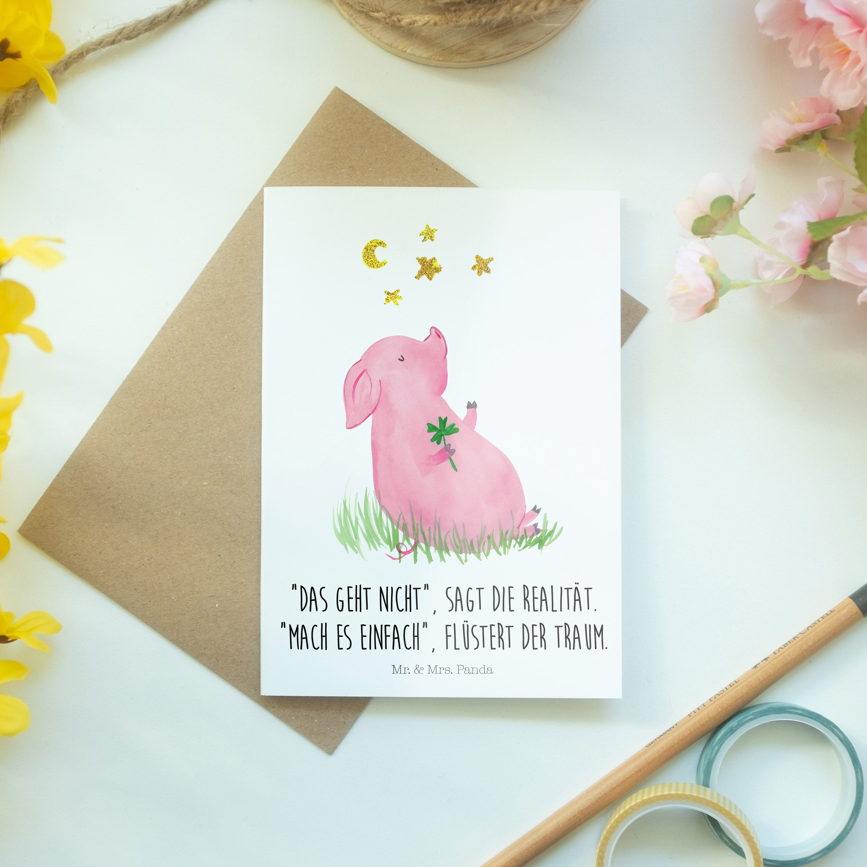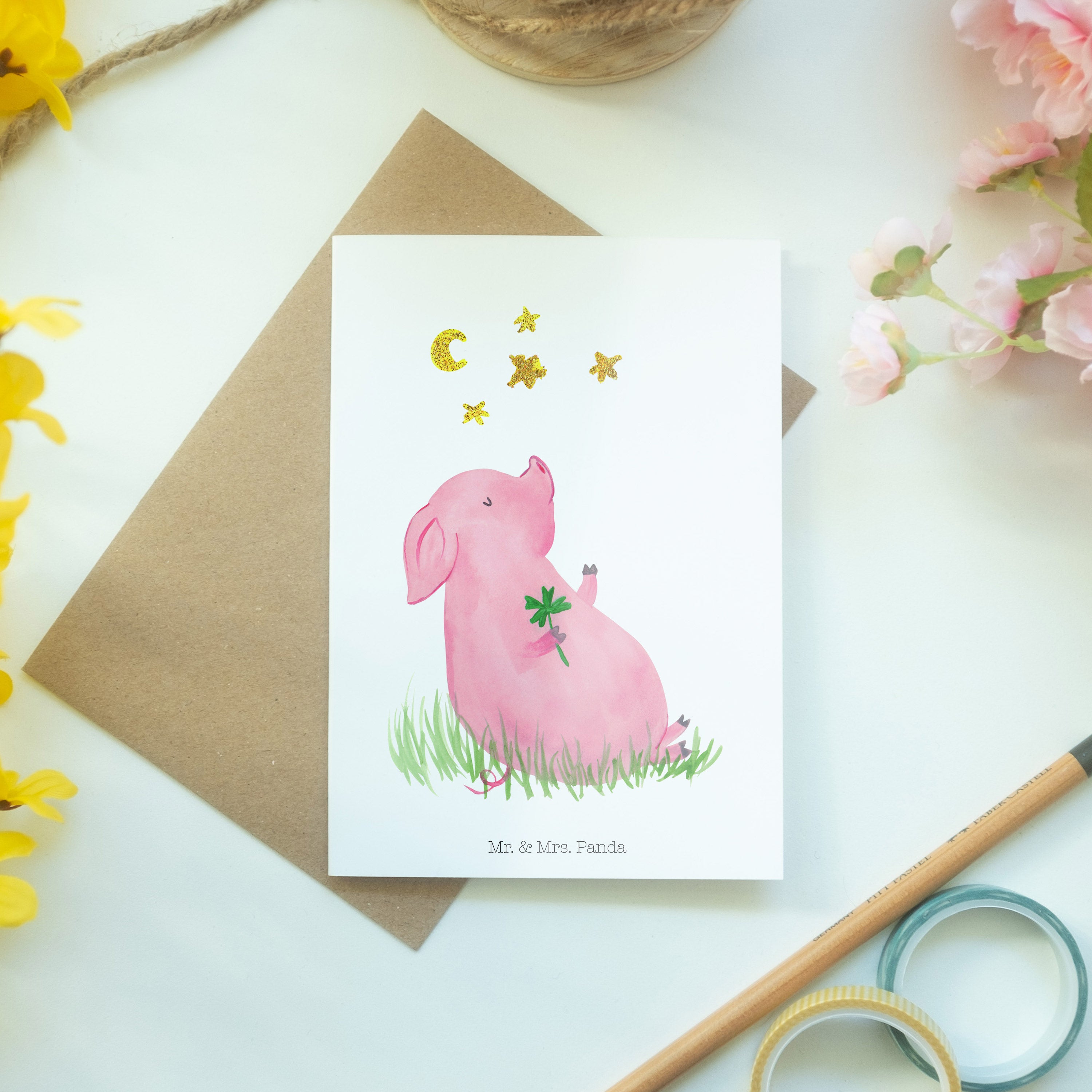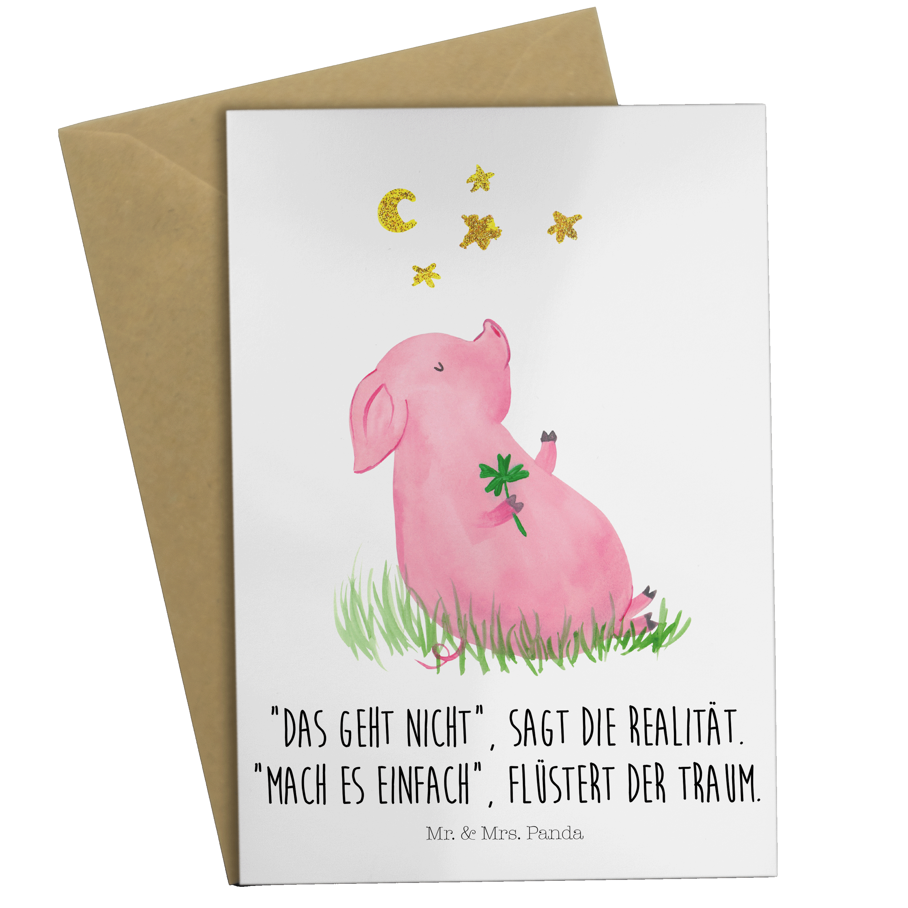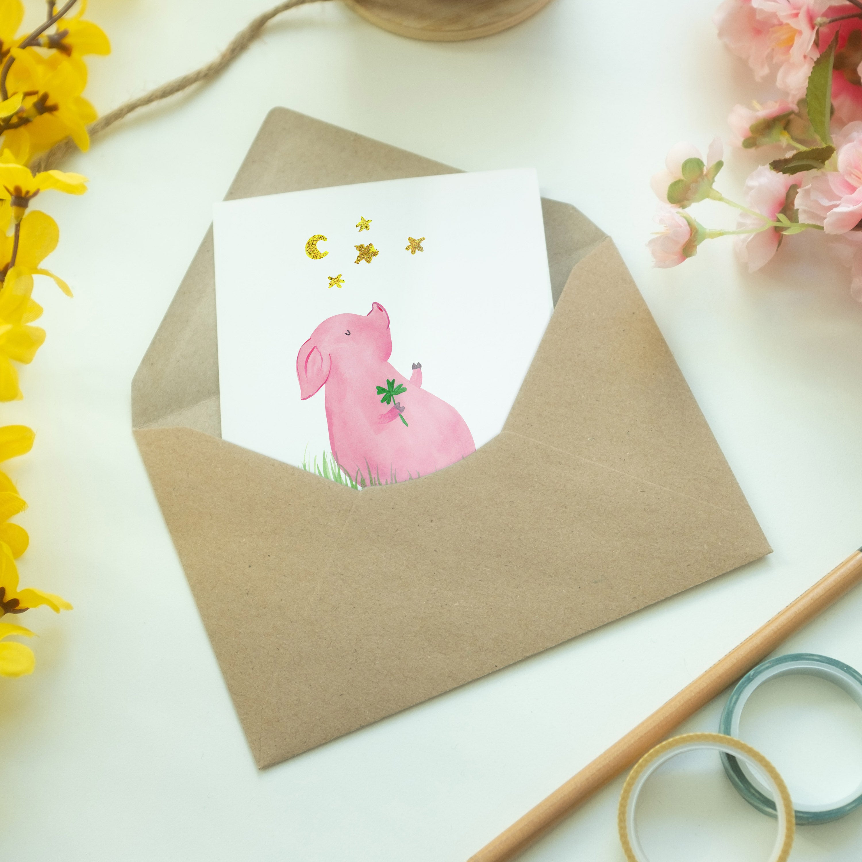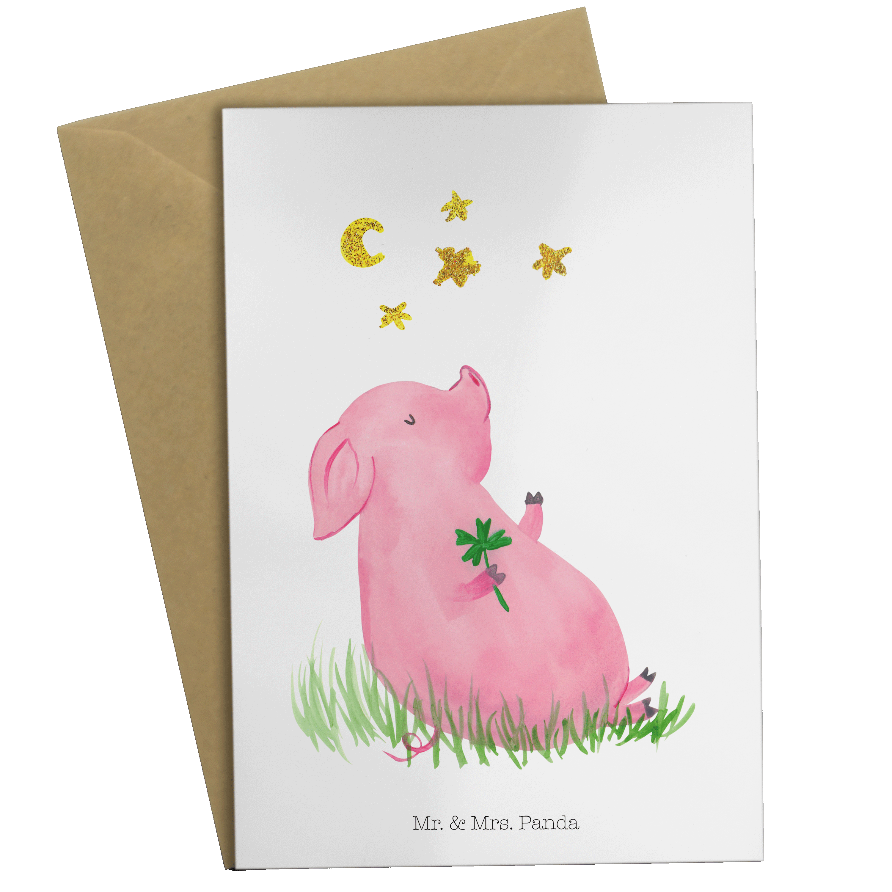 Grußkarte Glücksschwein - mit Spruch - Weiß
