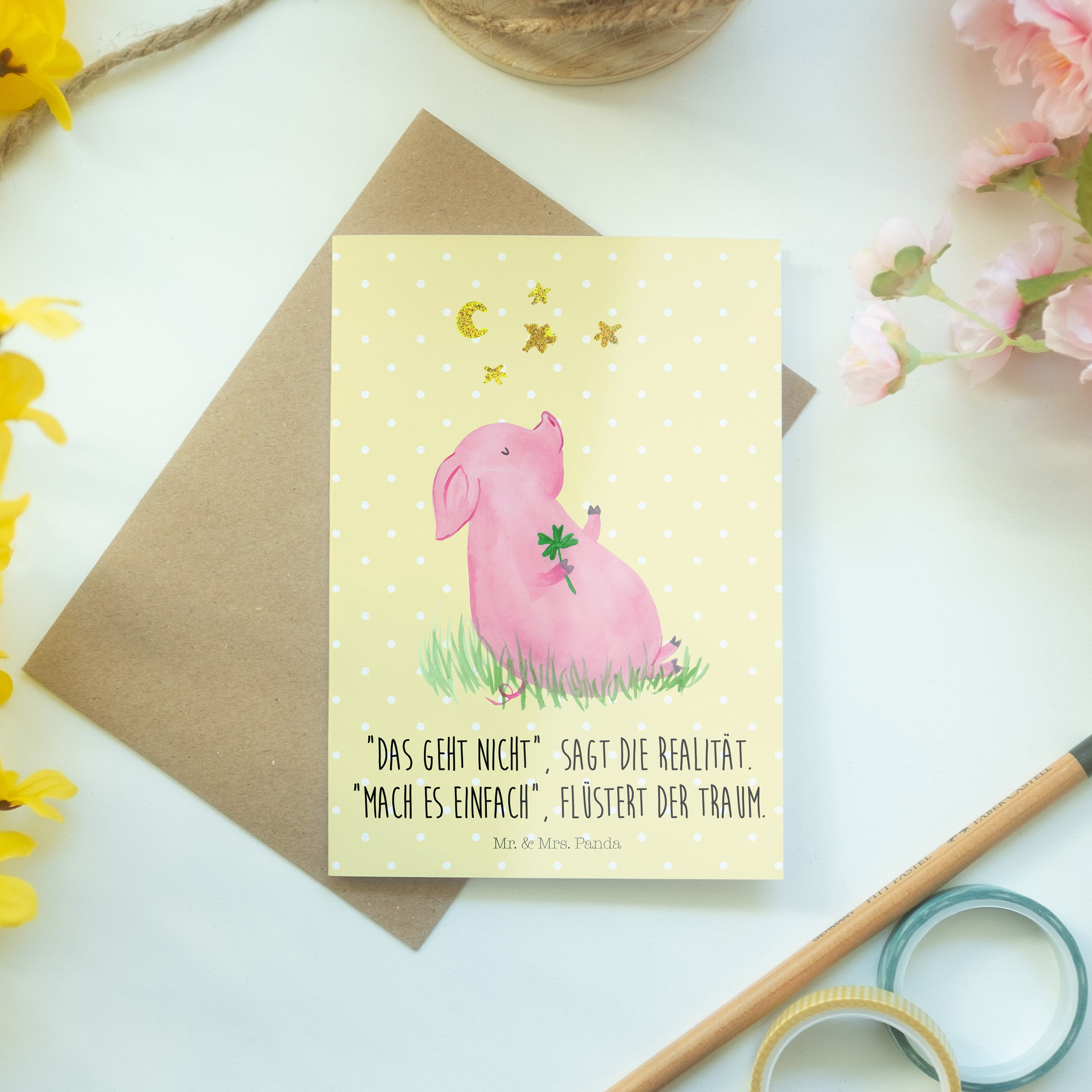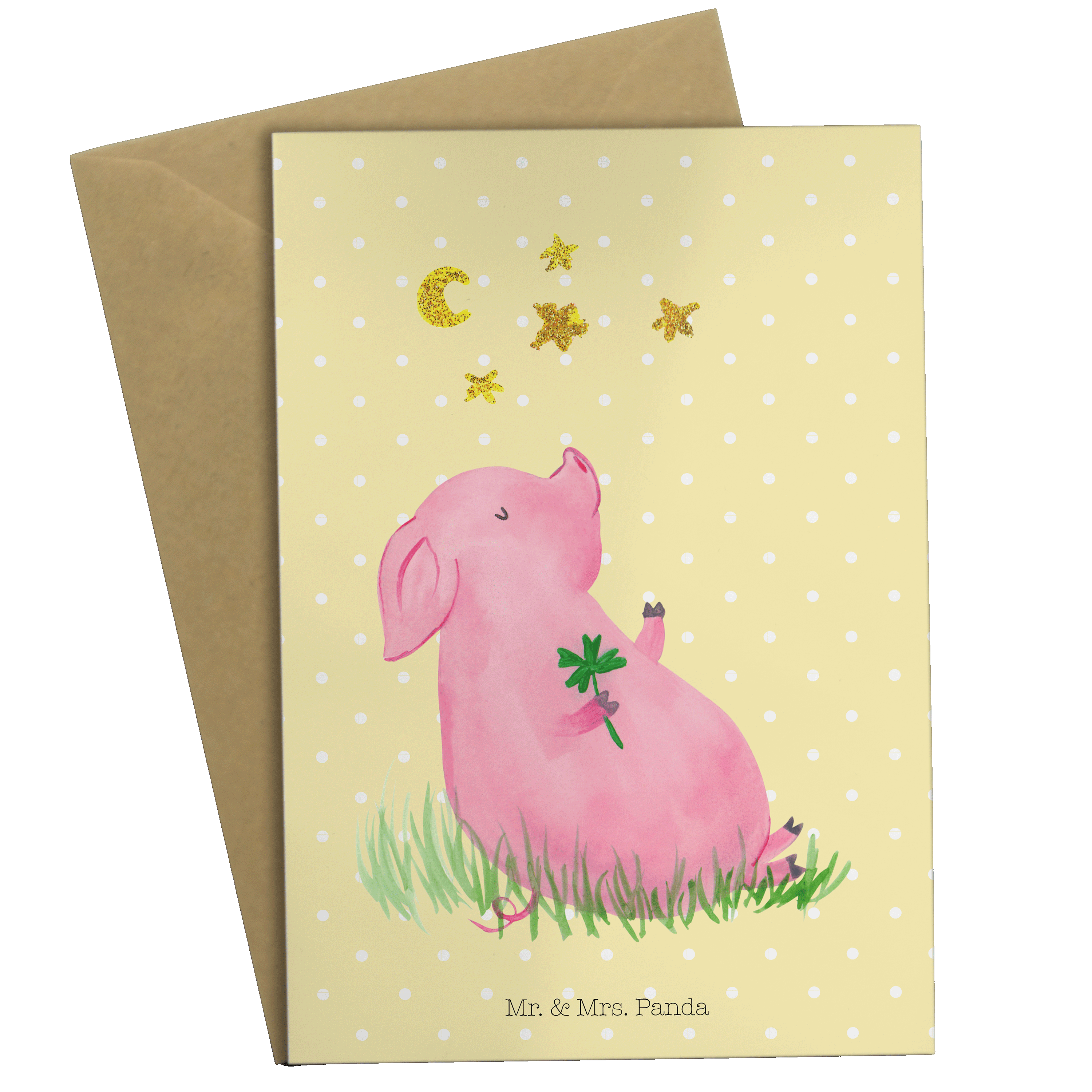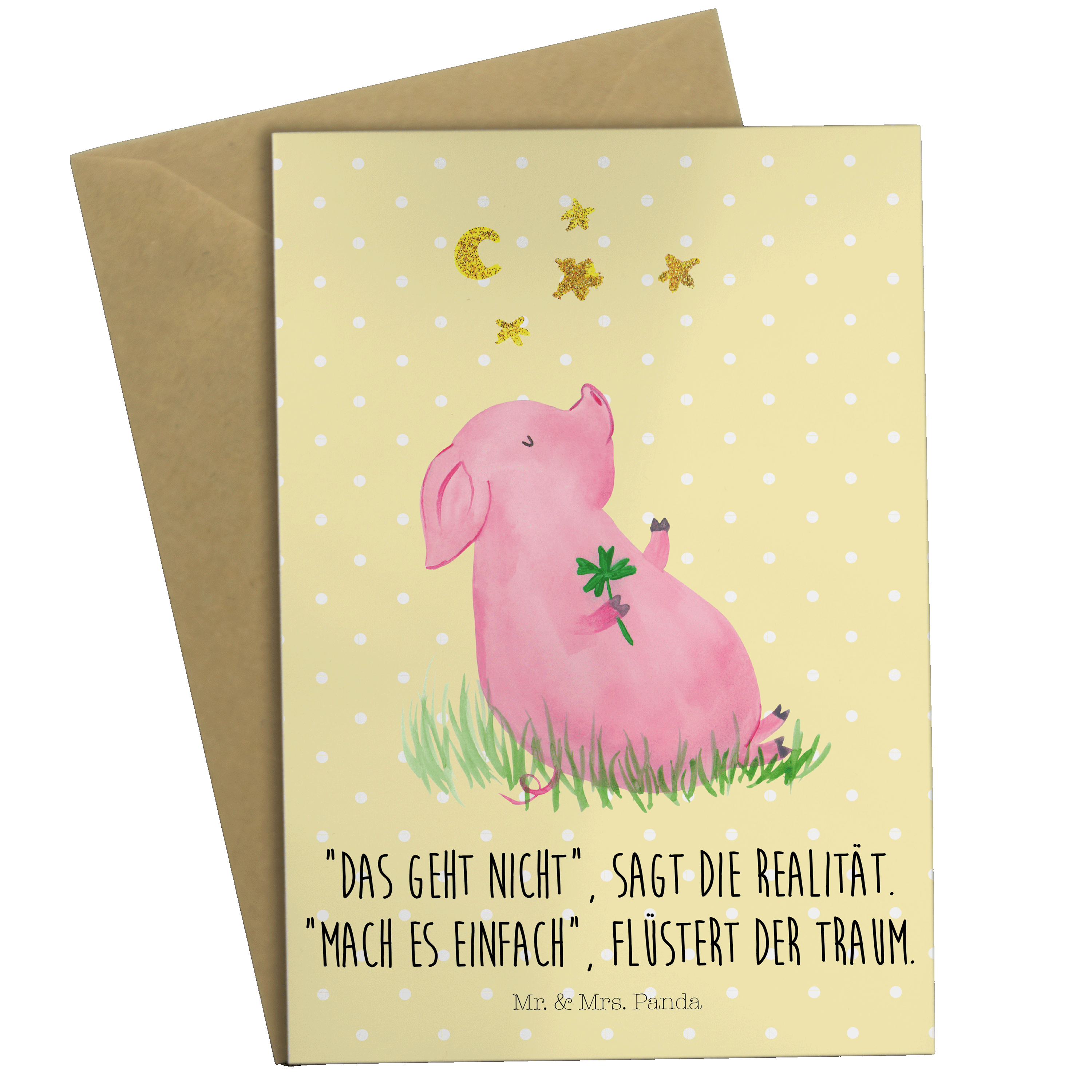 Du bist auf der Suche nach einem Weg, um das Glück in dein Leben zu lassen? Dann haben Mr. & Mrs. Panda genau das Richtige für dich - das Glücksschwein. Auf dem süßen Motiv hält ein kleines Schwein ein Kleeblatt in der Hand – das Symbol für Glück und Zufriedenheit. Das Glücksschwein ist der perfekte Begleiter für alle, die ihrem Leben eine Extraportion Glück verleihen wollen.
