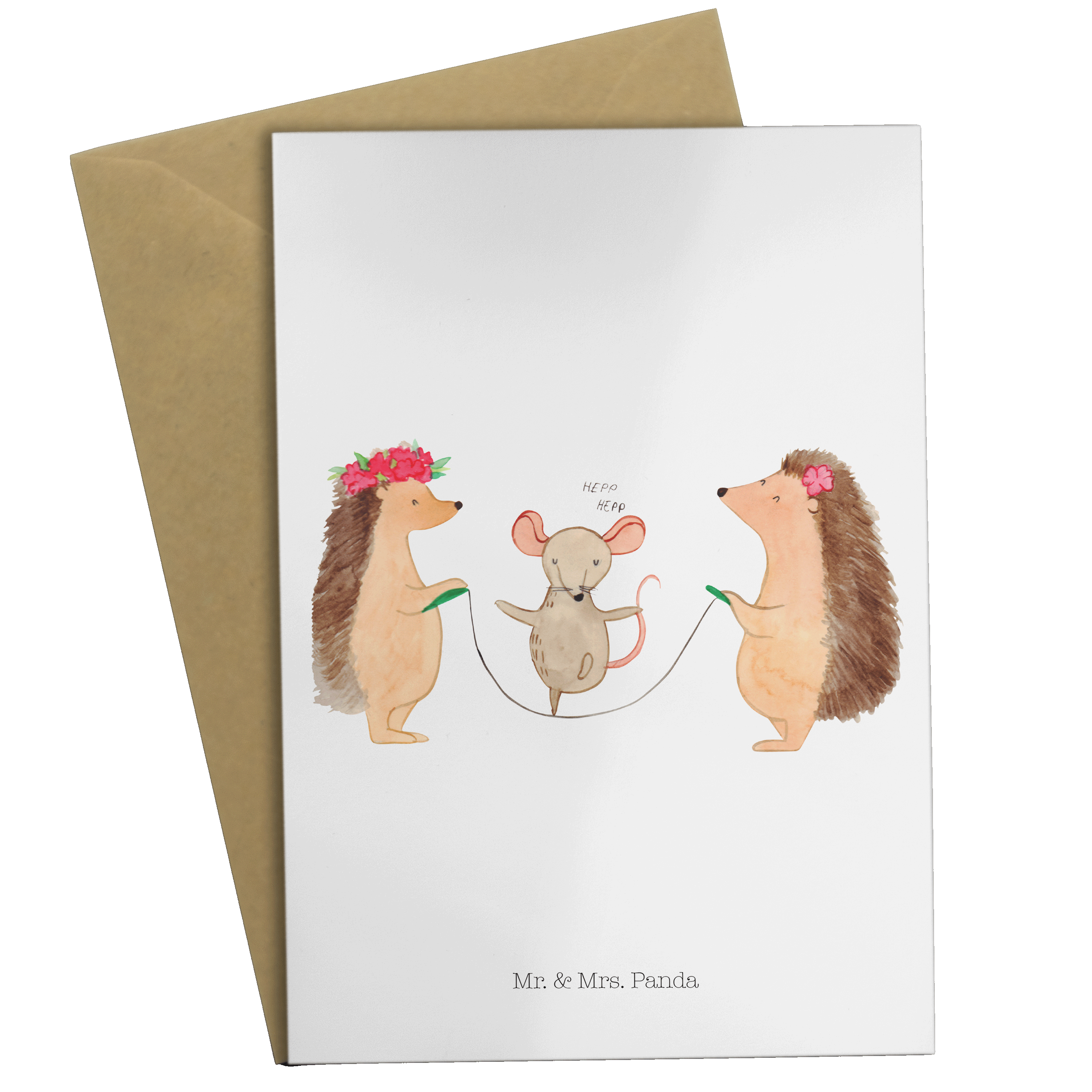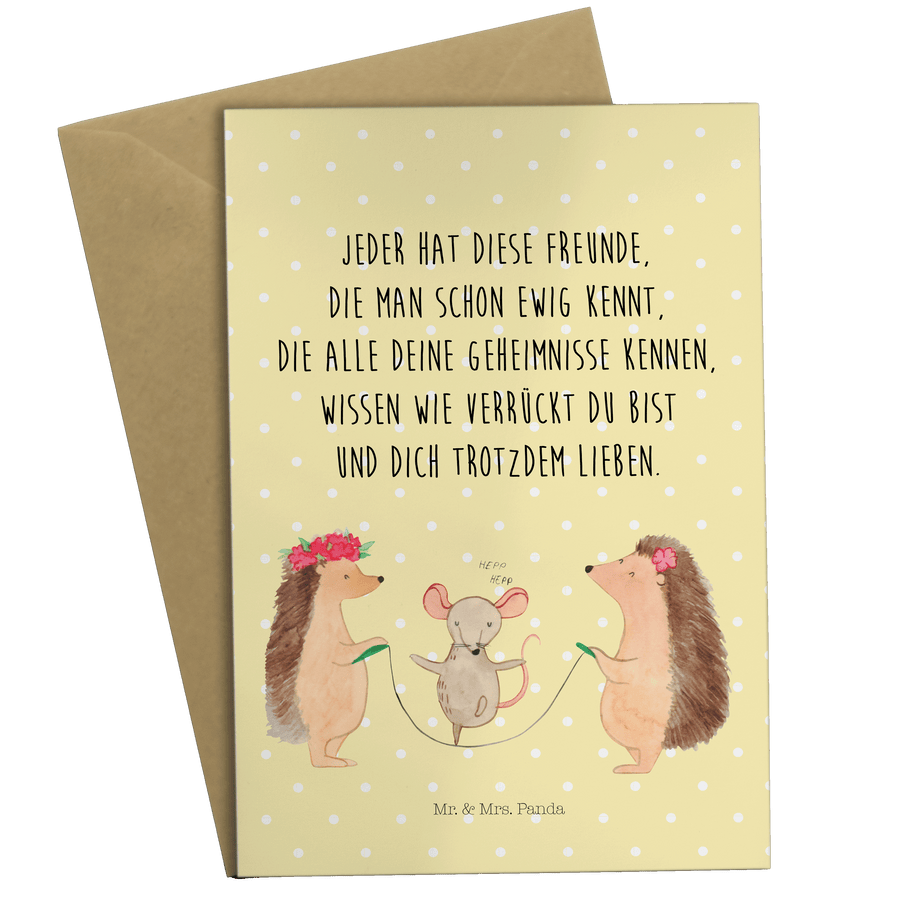 Grußkarte Igel Seilhüpfen - mit Spruch - Gelb Pastell