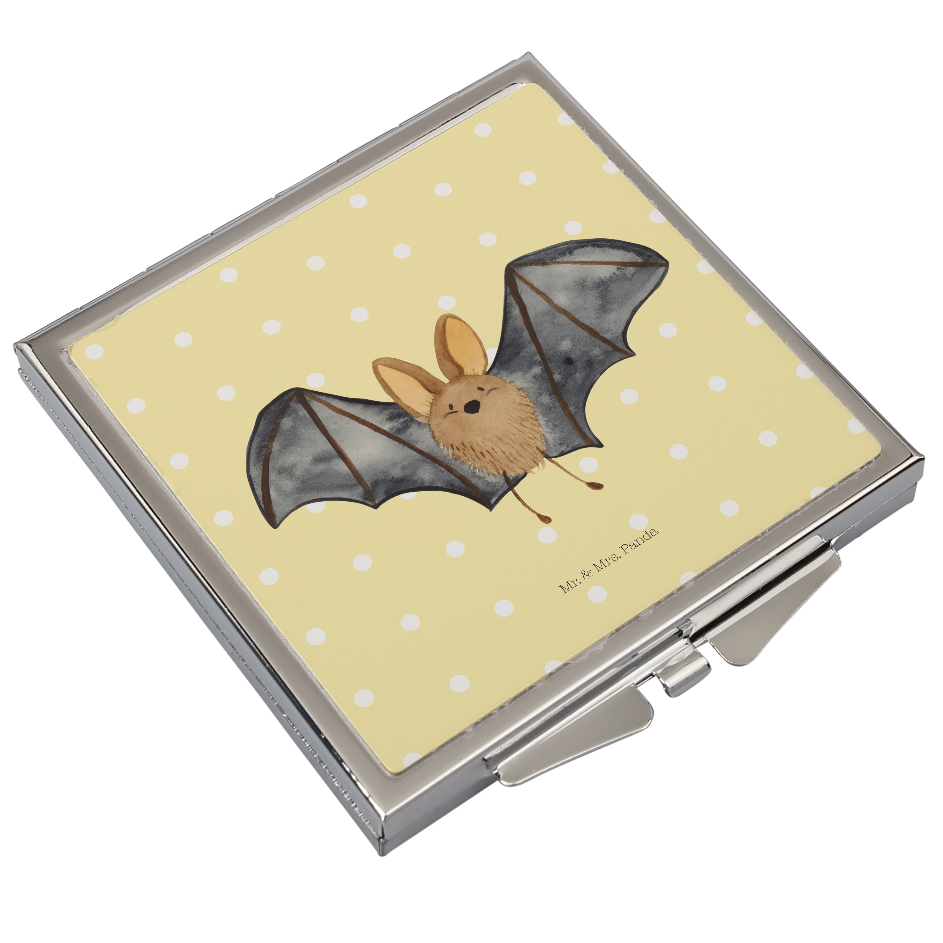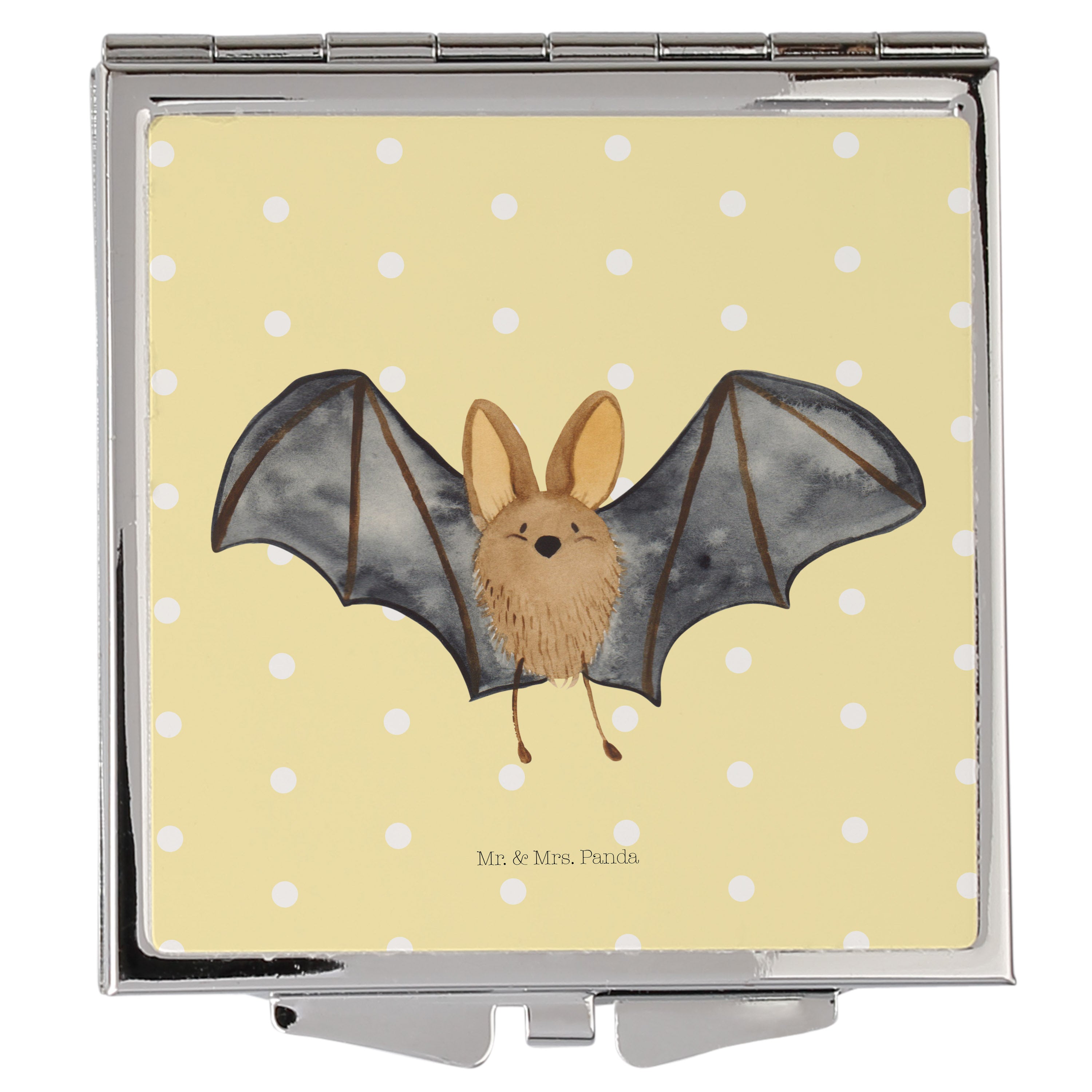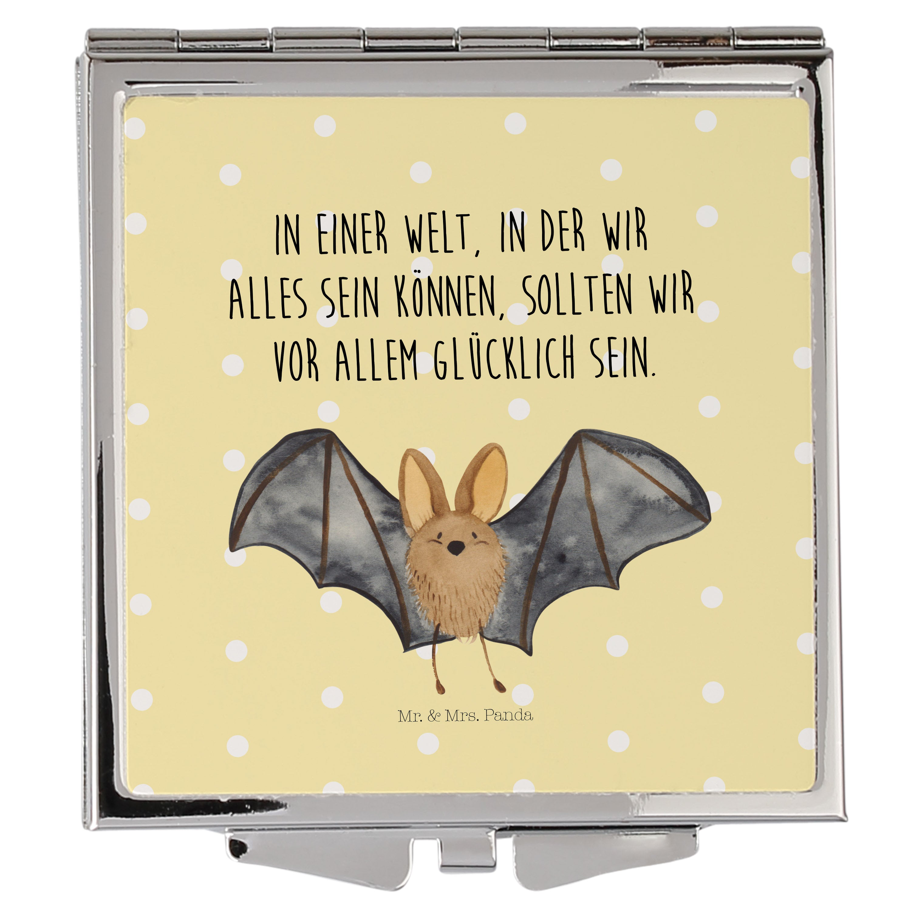 Handtaschenspiegel quadratisch Fledermaus Flügel - mit Spruch - Gelb Pastell