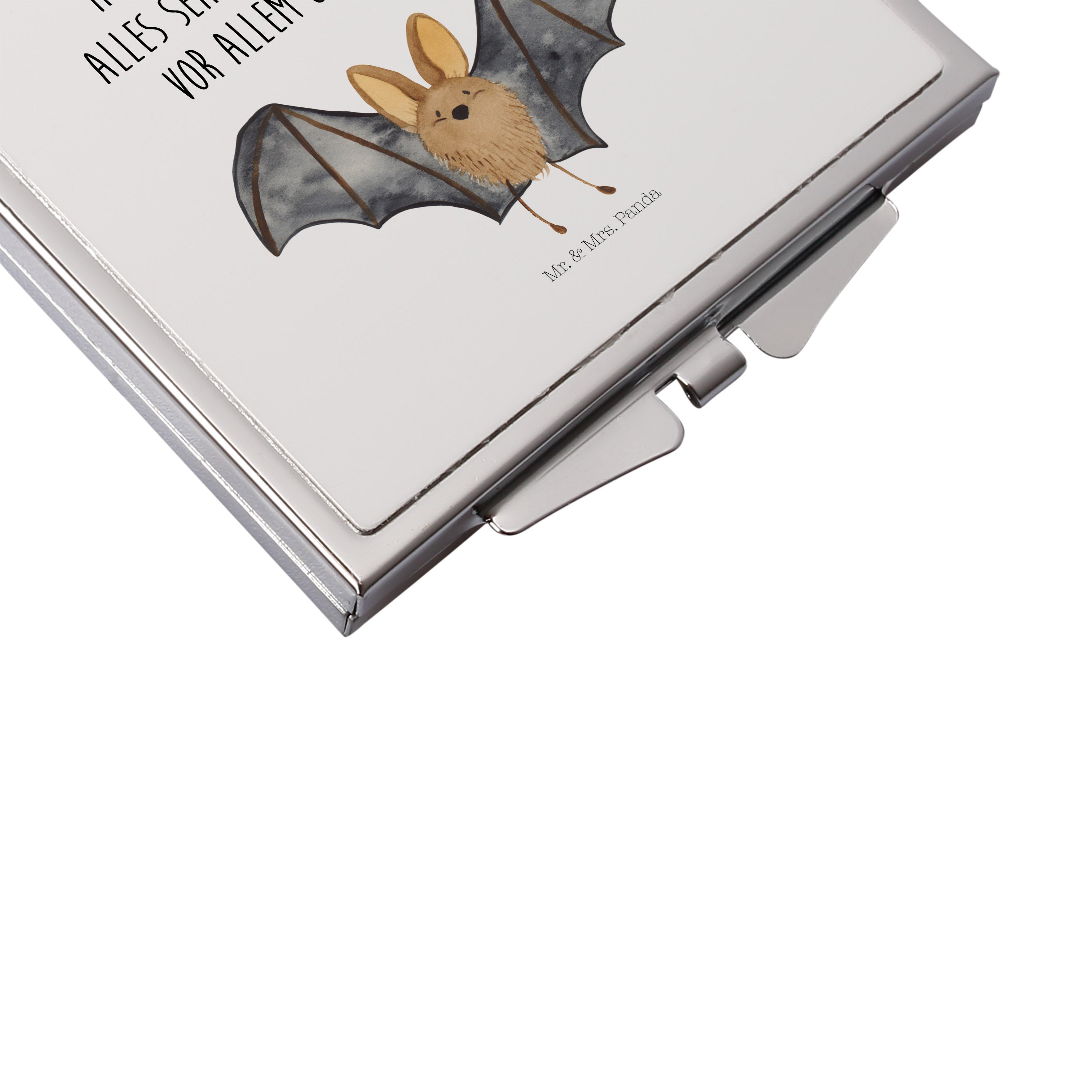 Handtaschenspiegel quadratisch Fledermaus Flügel Spiegel, Handtasche, Quadrat, silber, schminken, Schminkspiegel, Tiermotive, Gute Laune, lustige Sprüche, Tiere