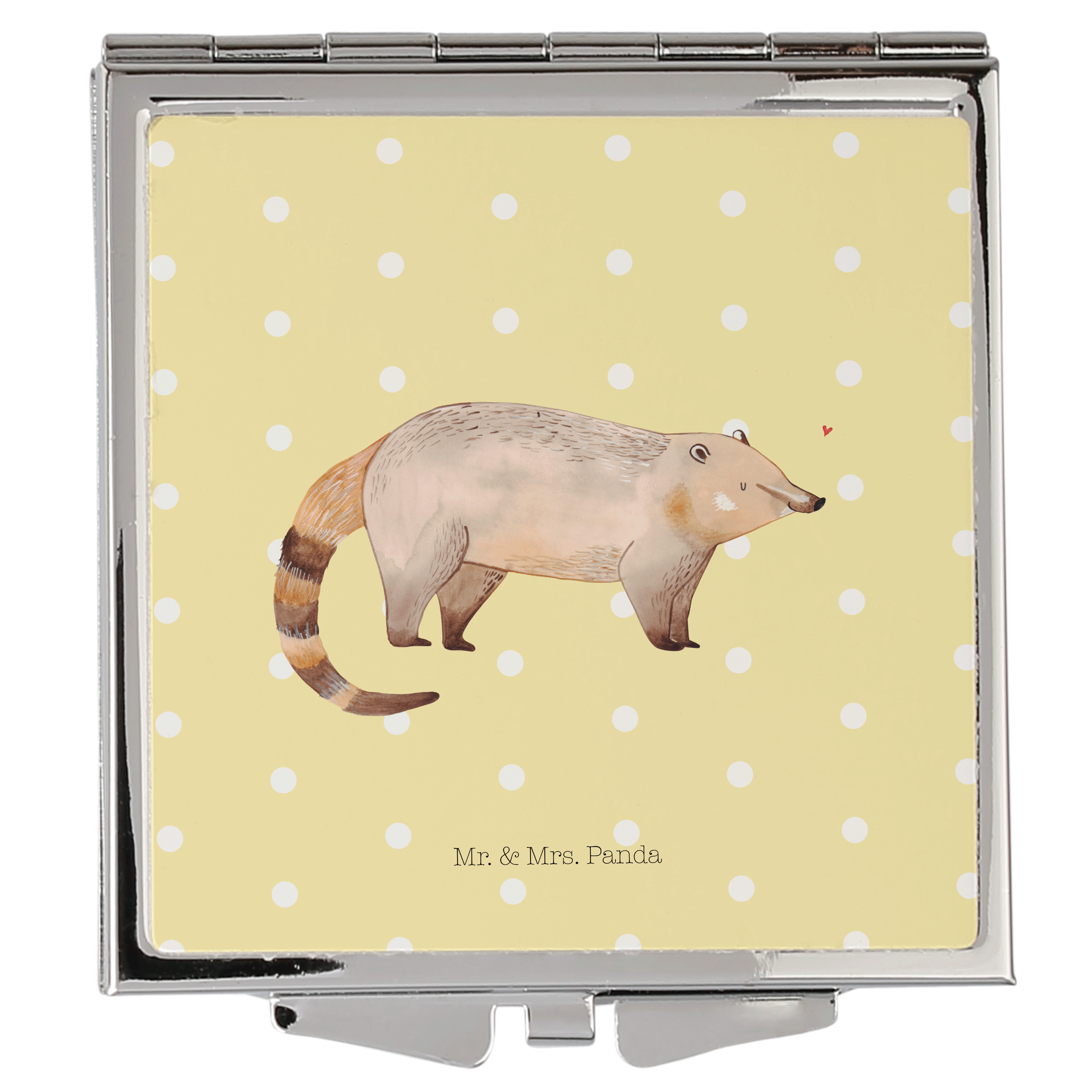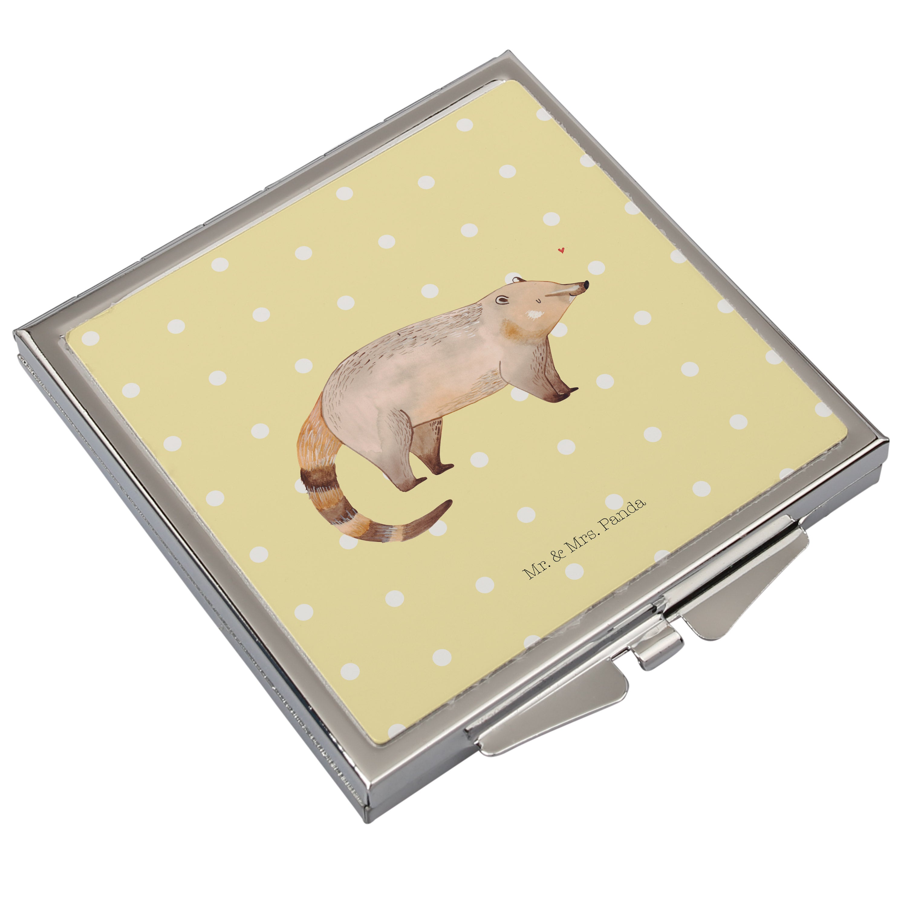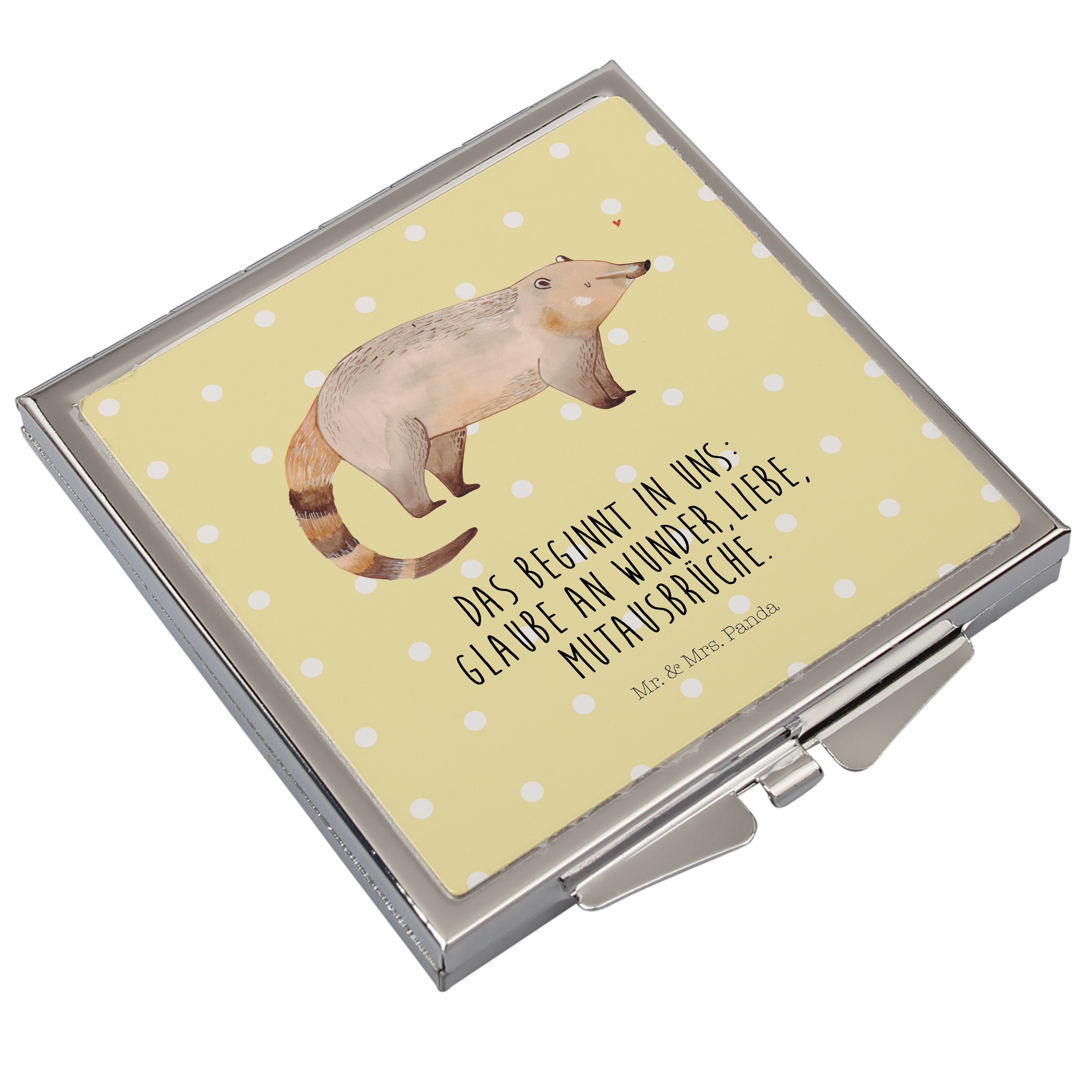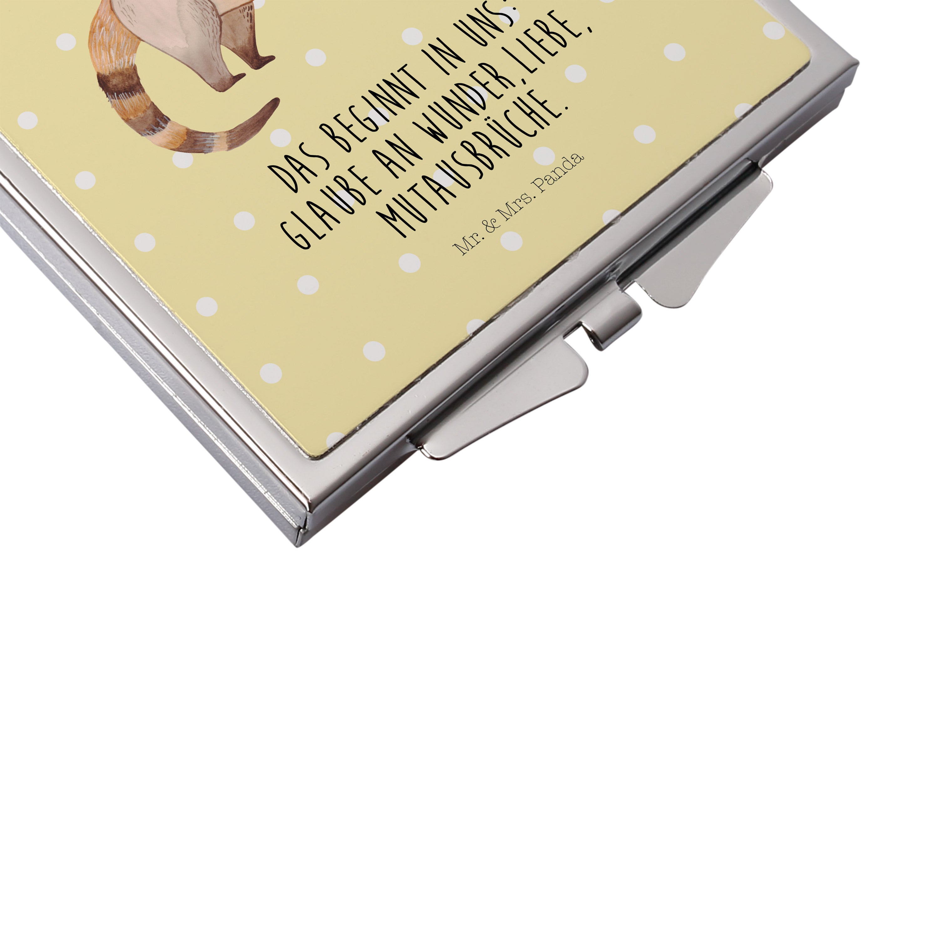 Handtaschenspiegel quadratisch Nasenbaer - mit Spruch - Gelb Pastell