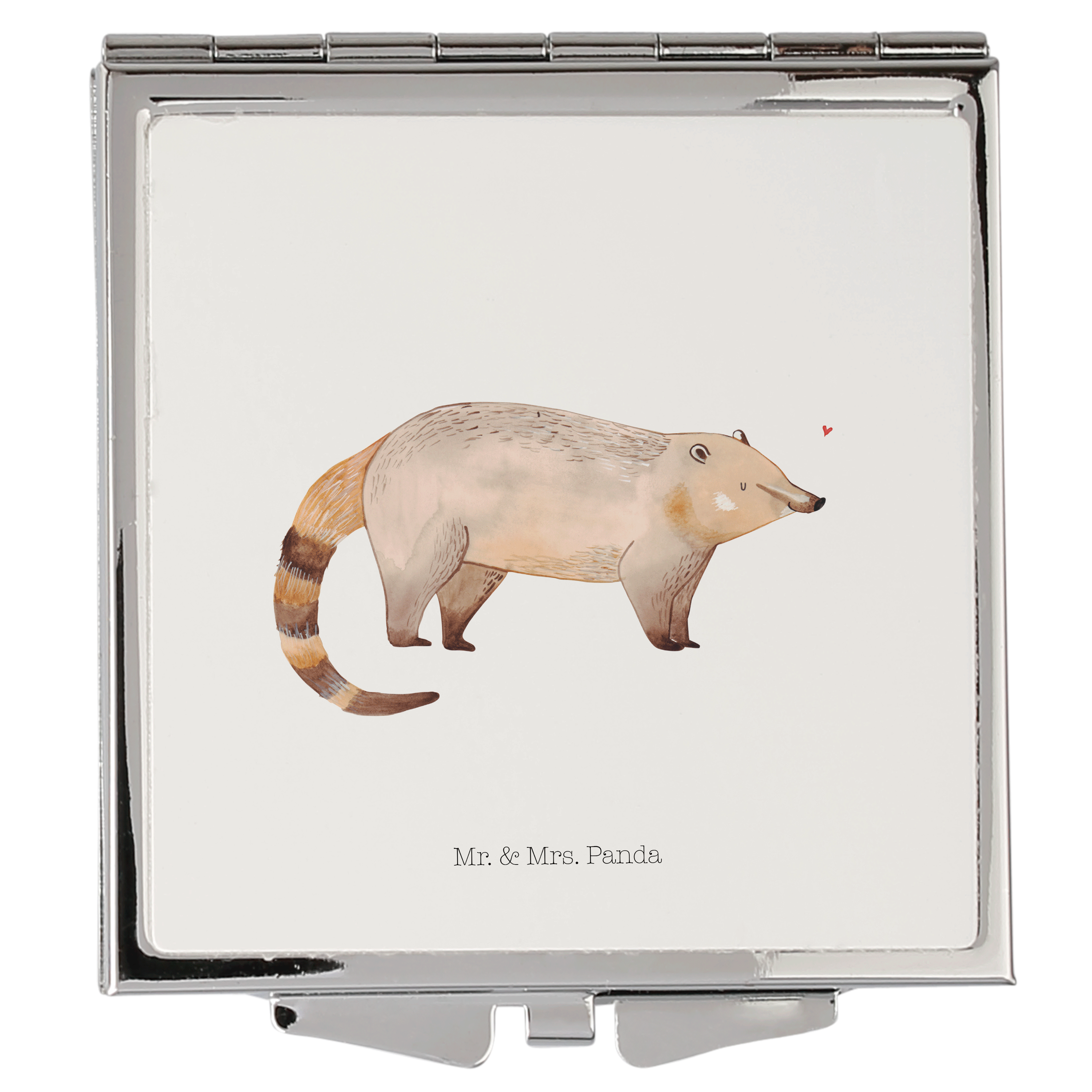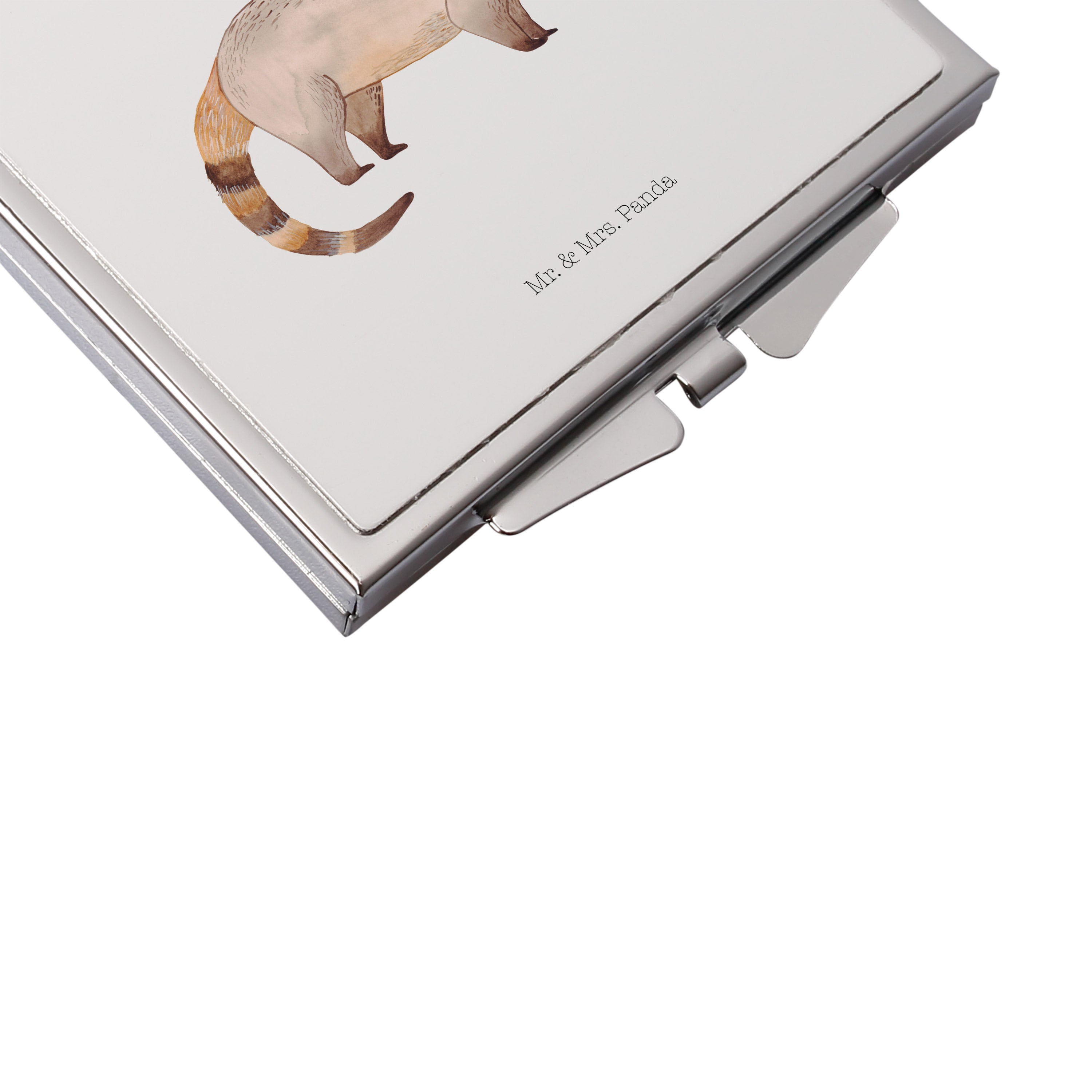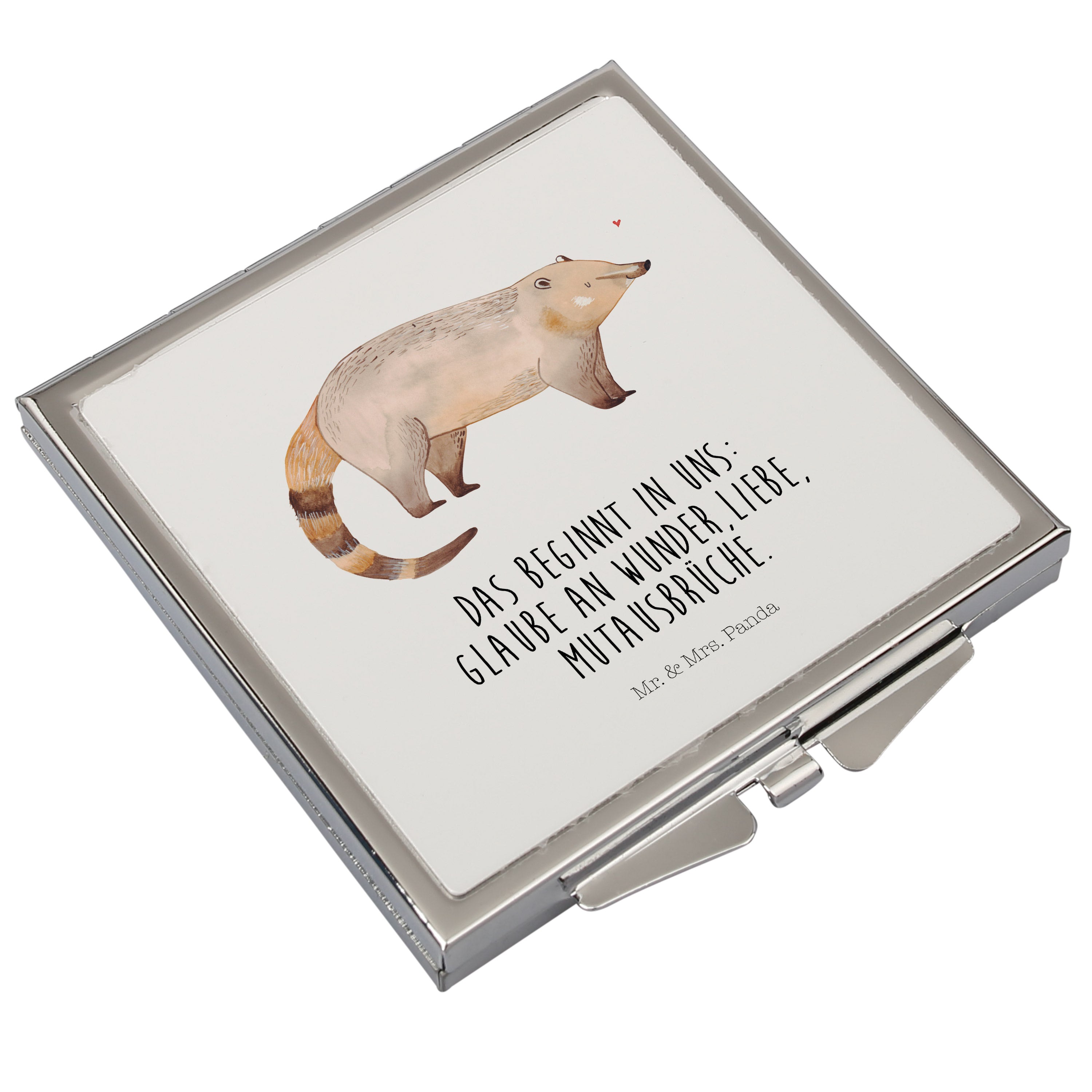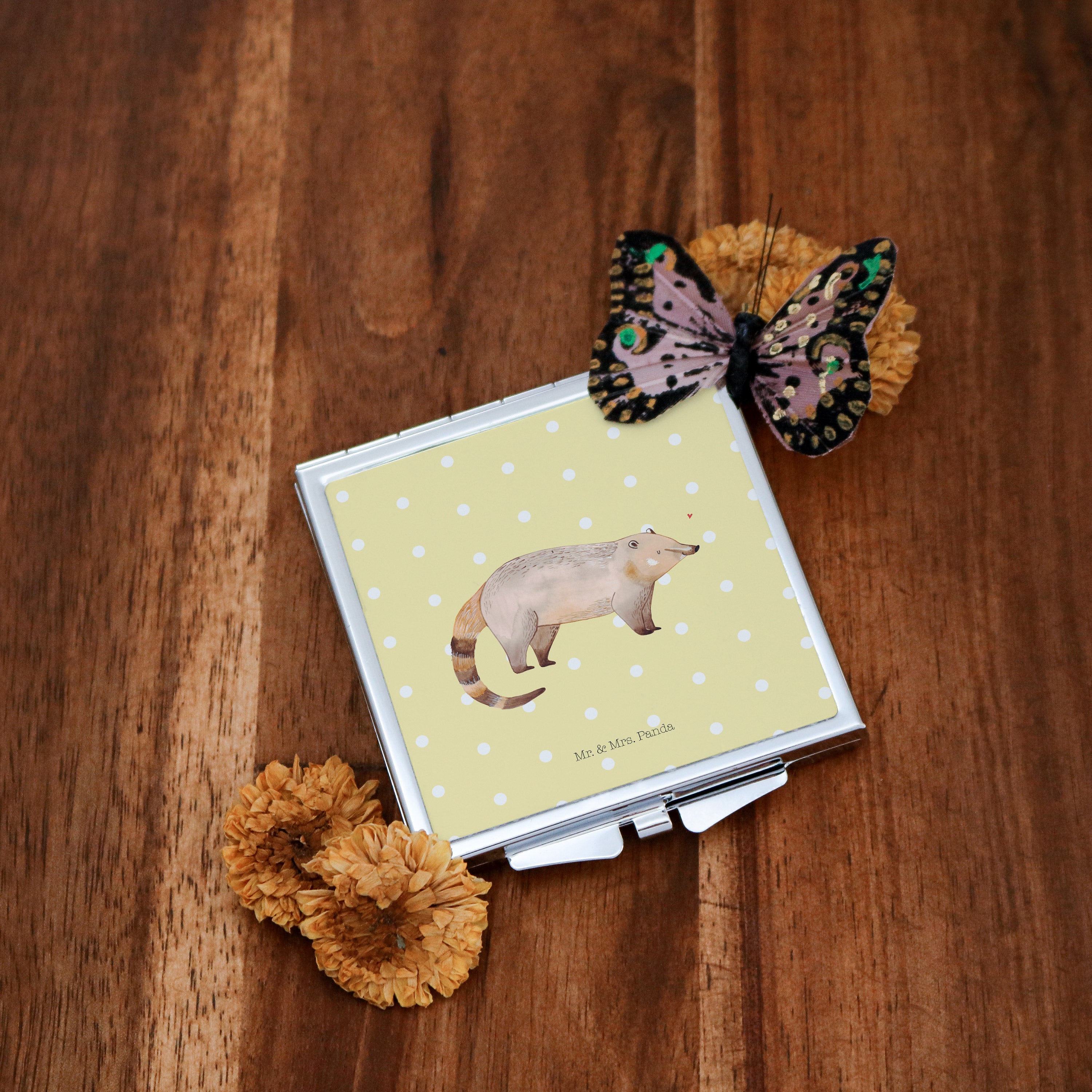 Handtaschenspiegel quadratisch Nasenbaer - mit Spruch - Gelb Pastell