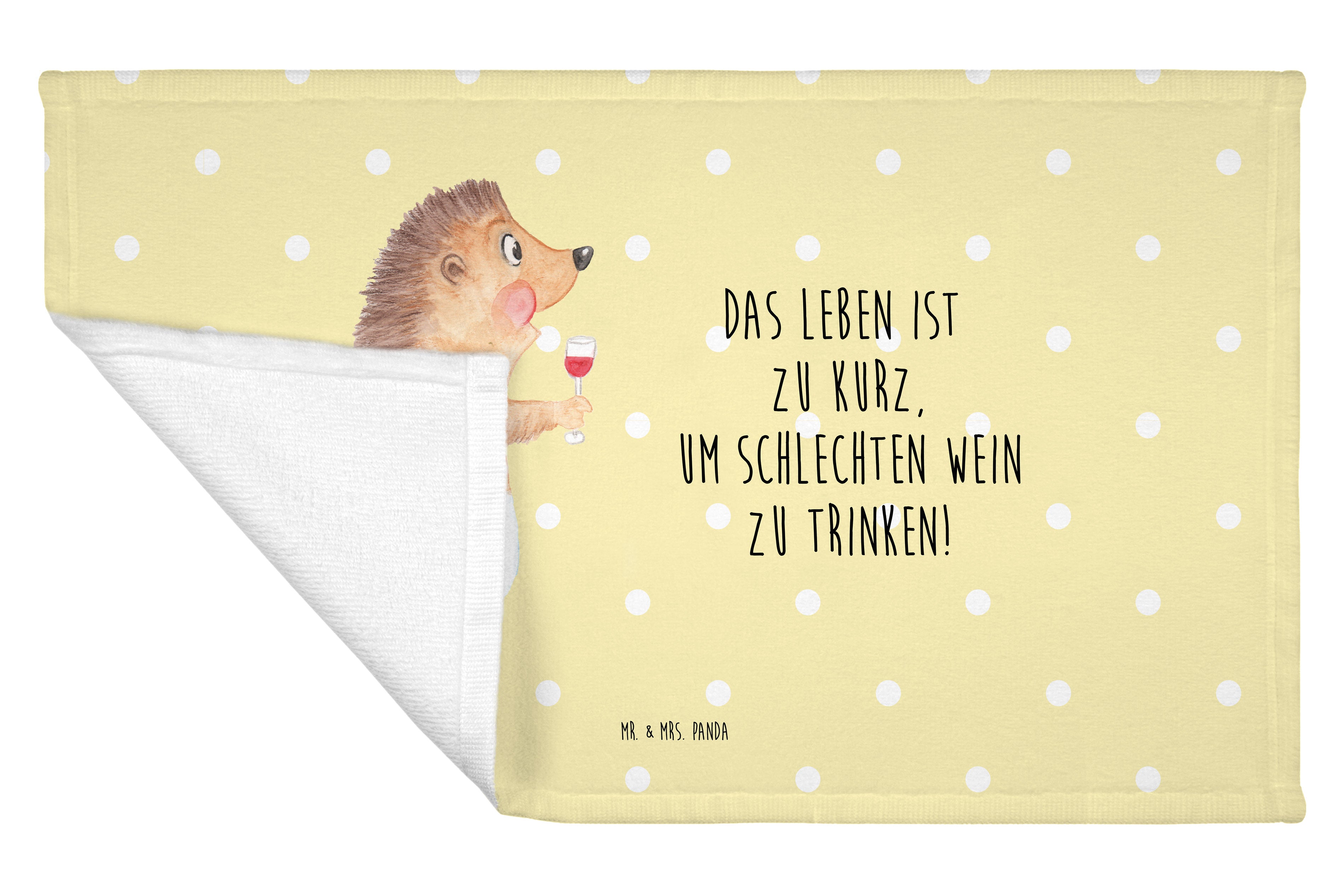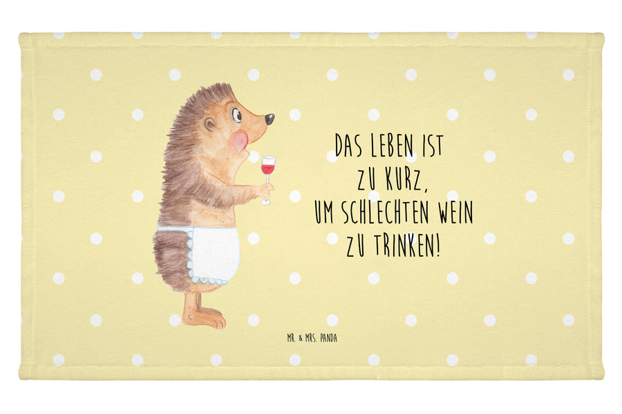 Gäste Handtuch Igel mit Wein - mit Spruch - Gelb Pastell