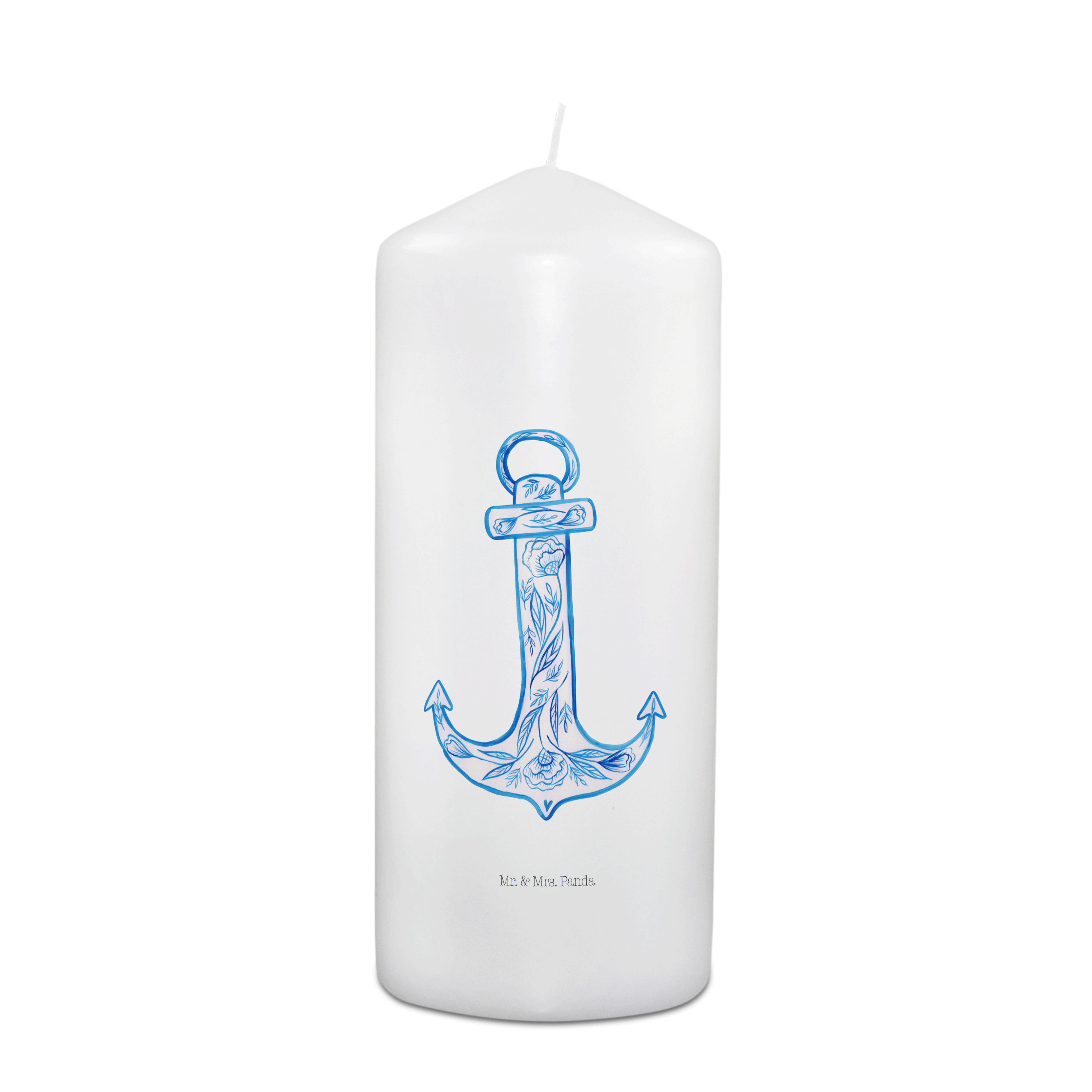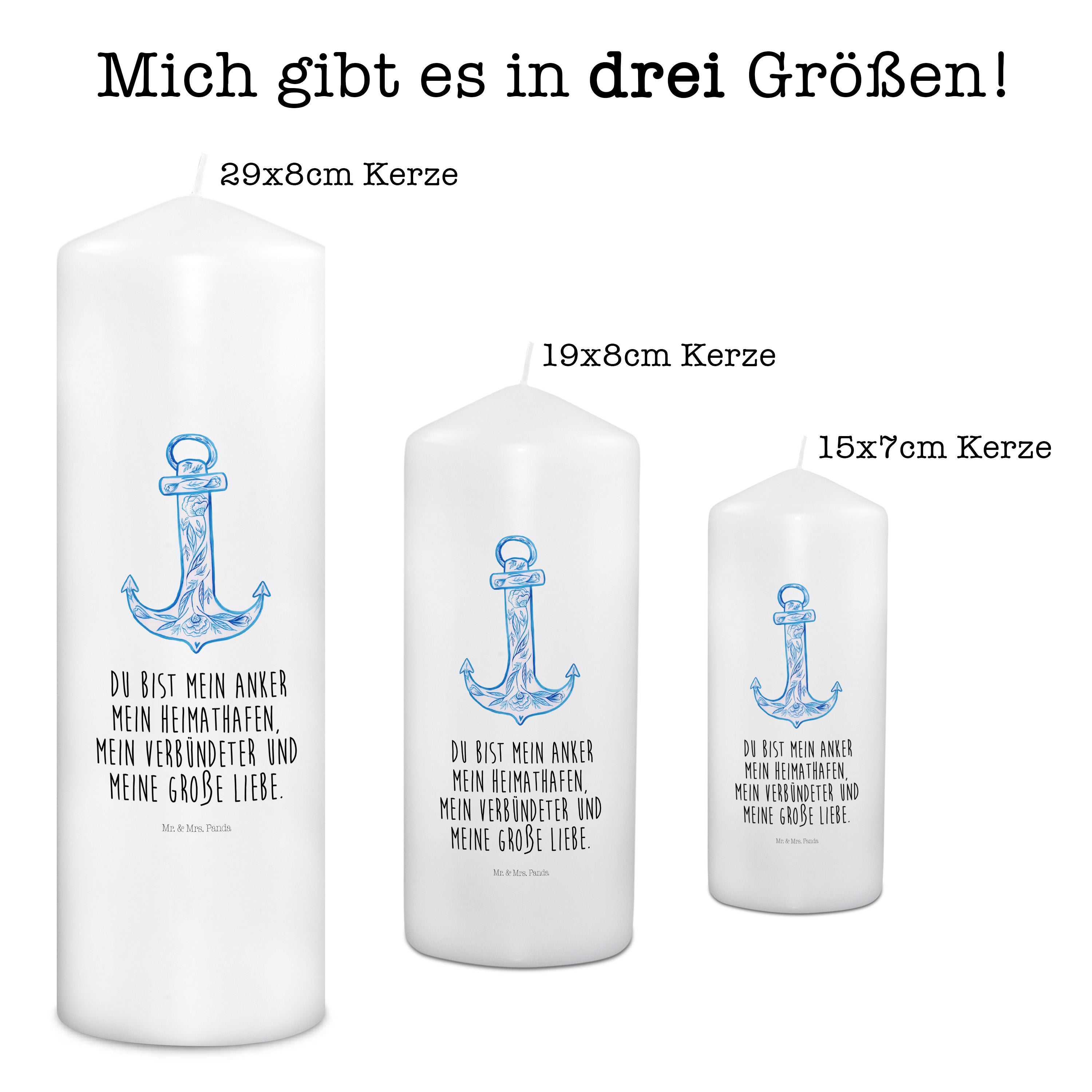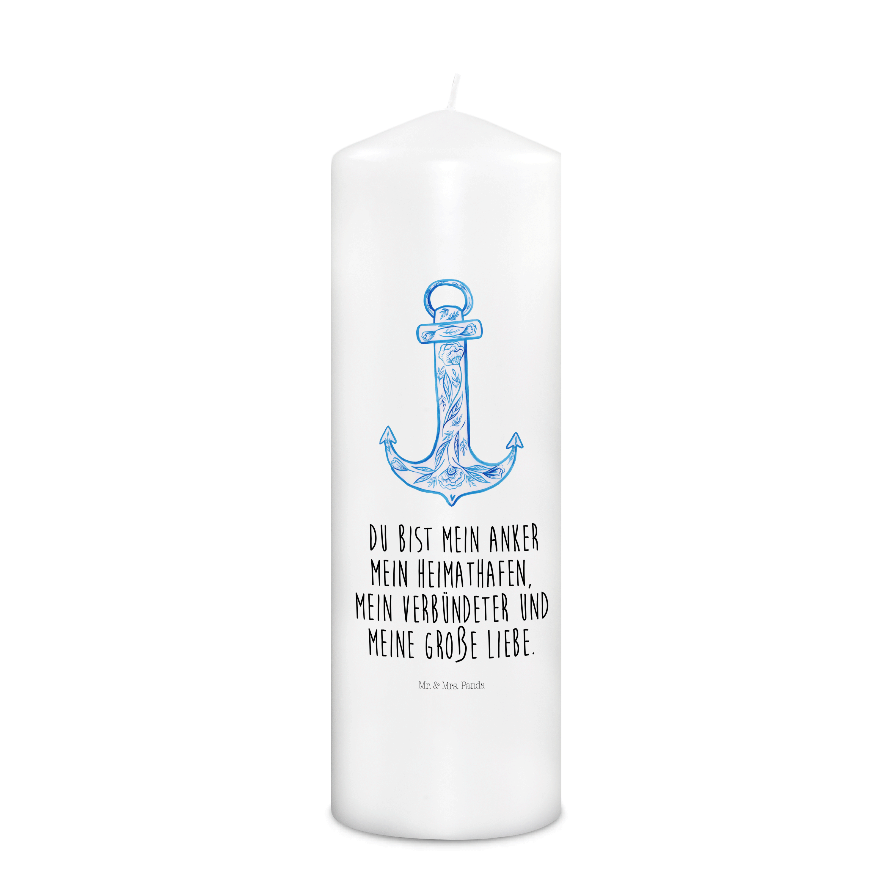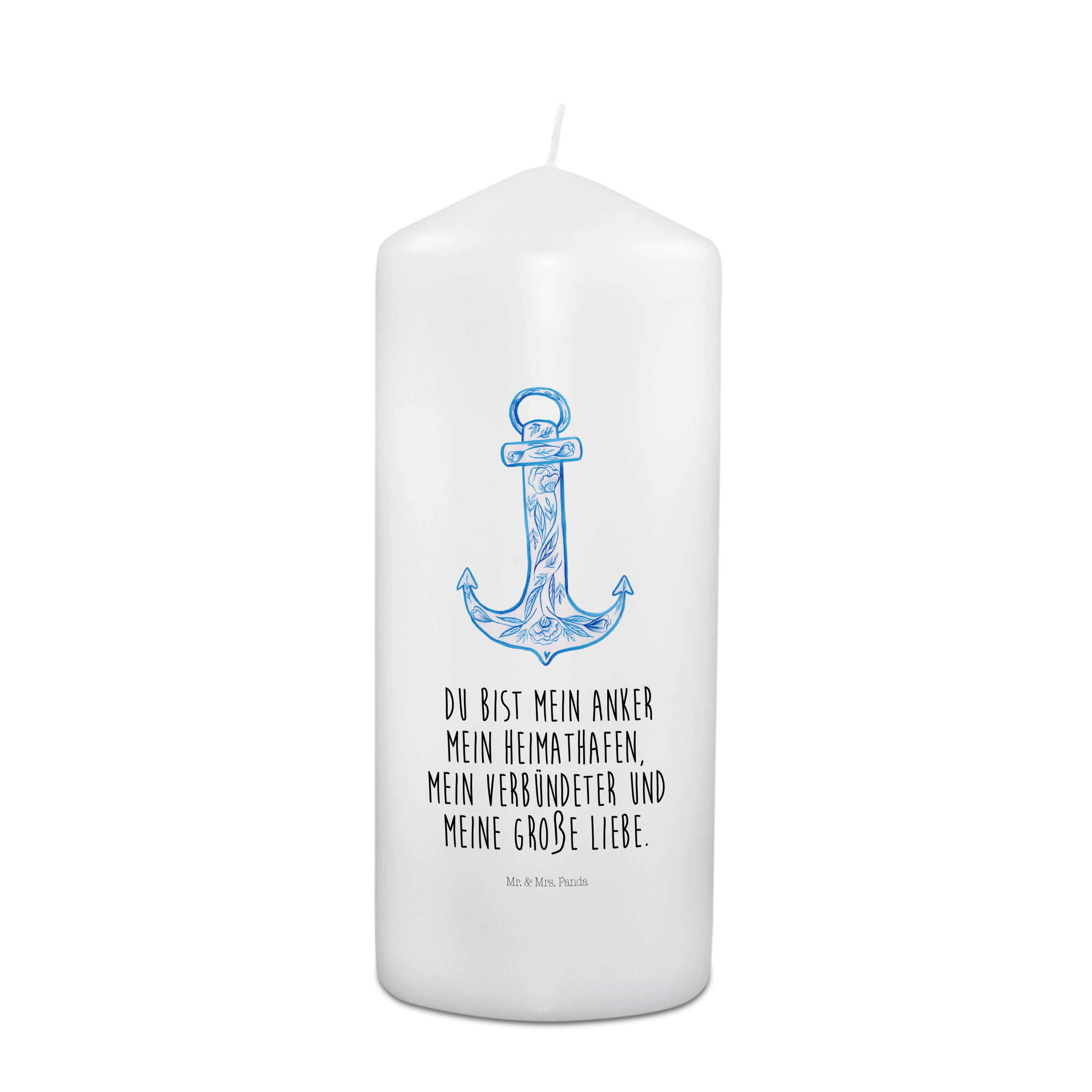 Kerze Anker Blau - 19 x 8 cm - mit Spruch