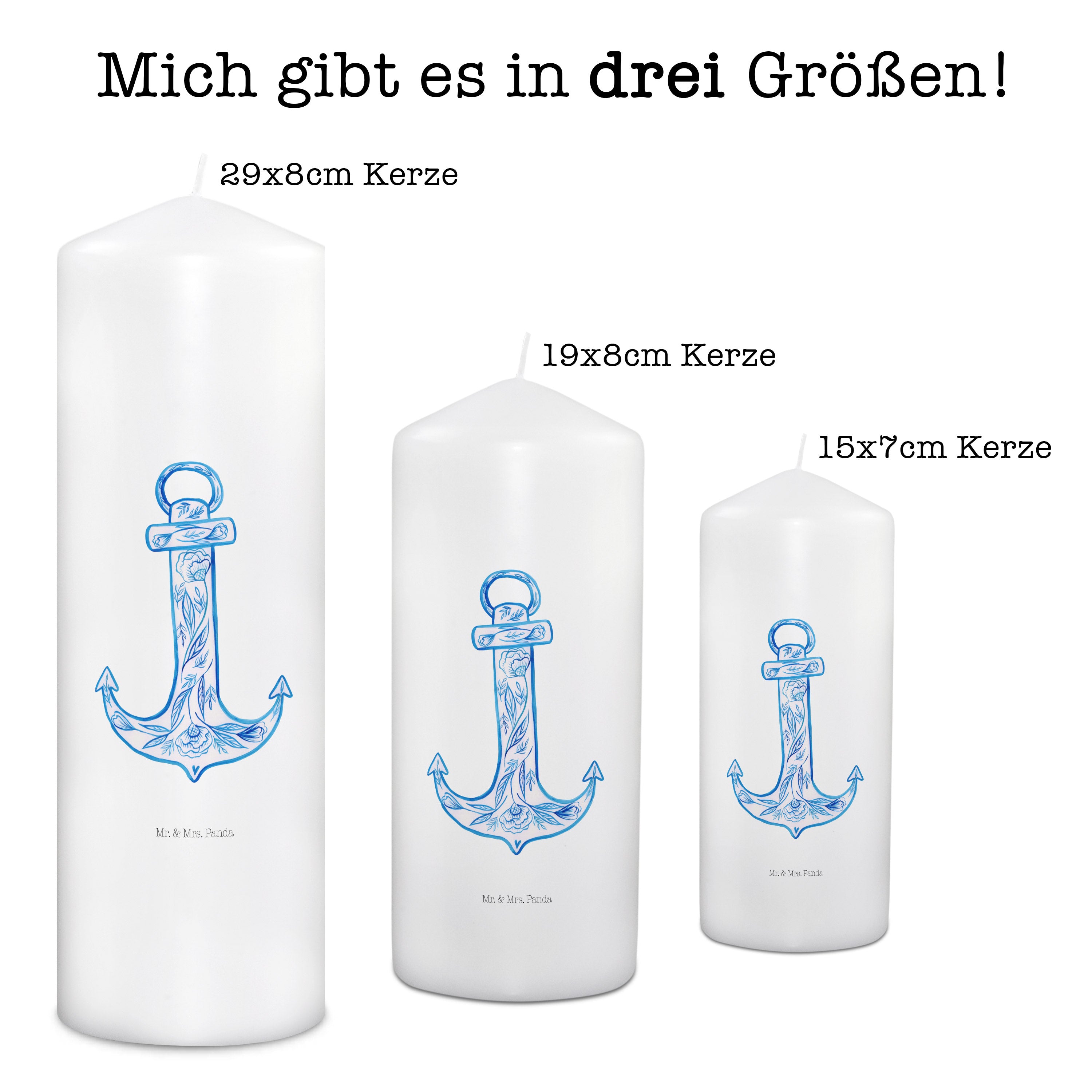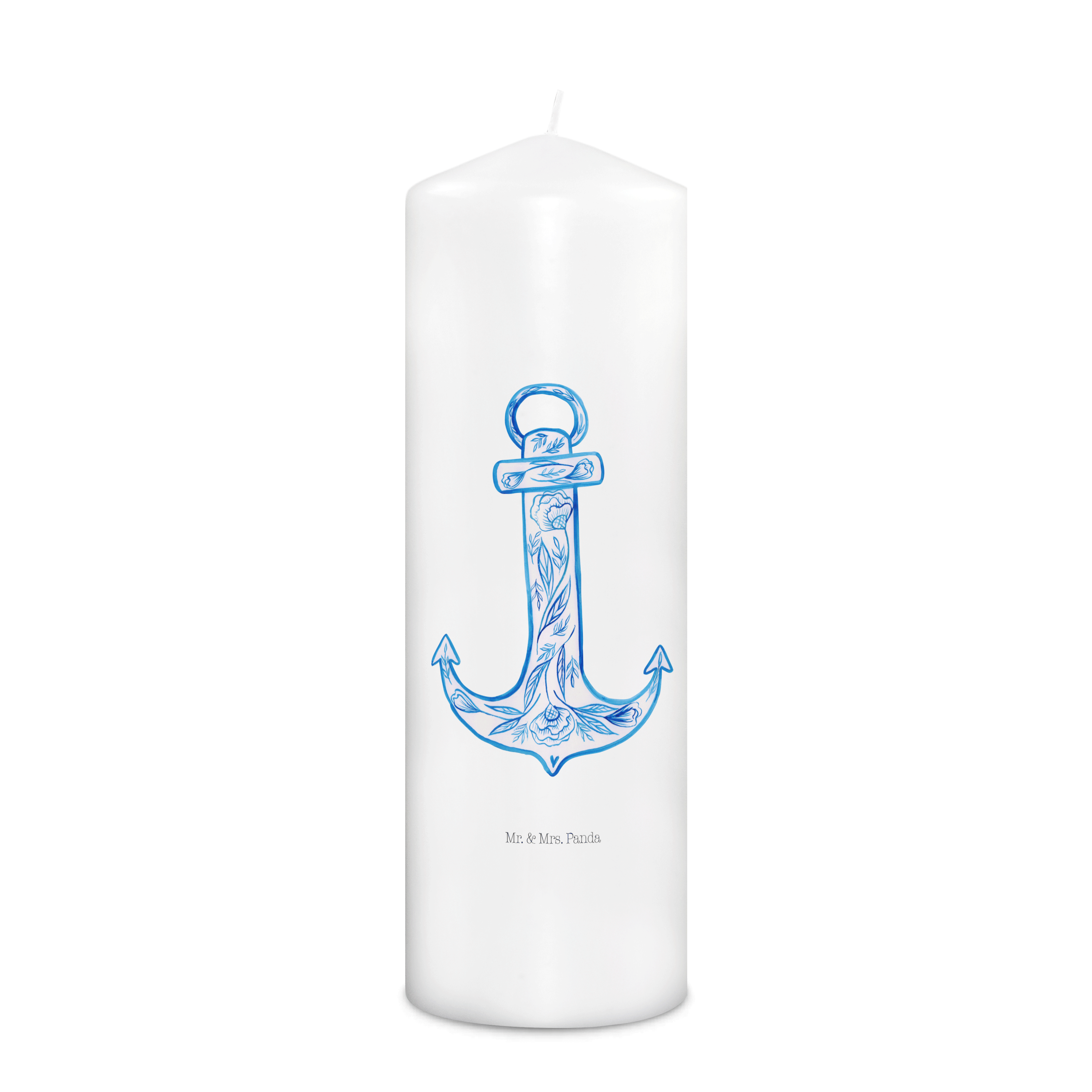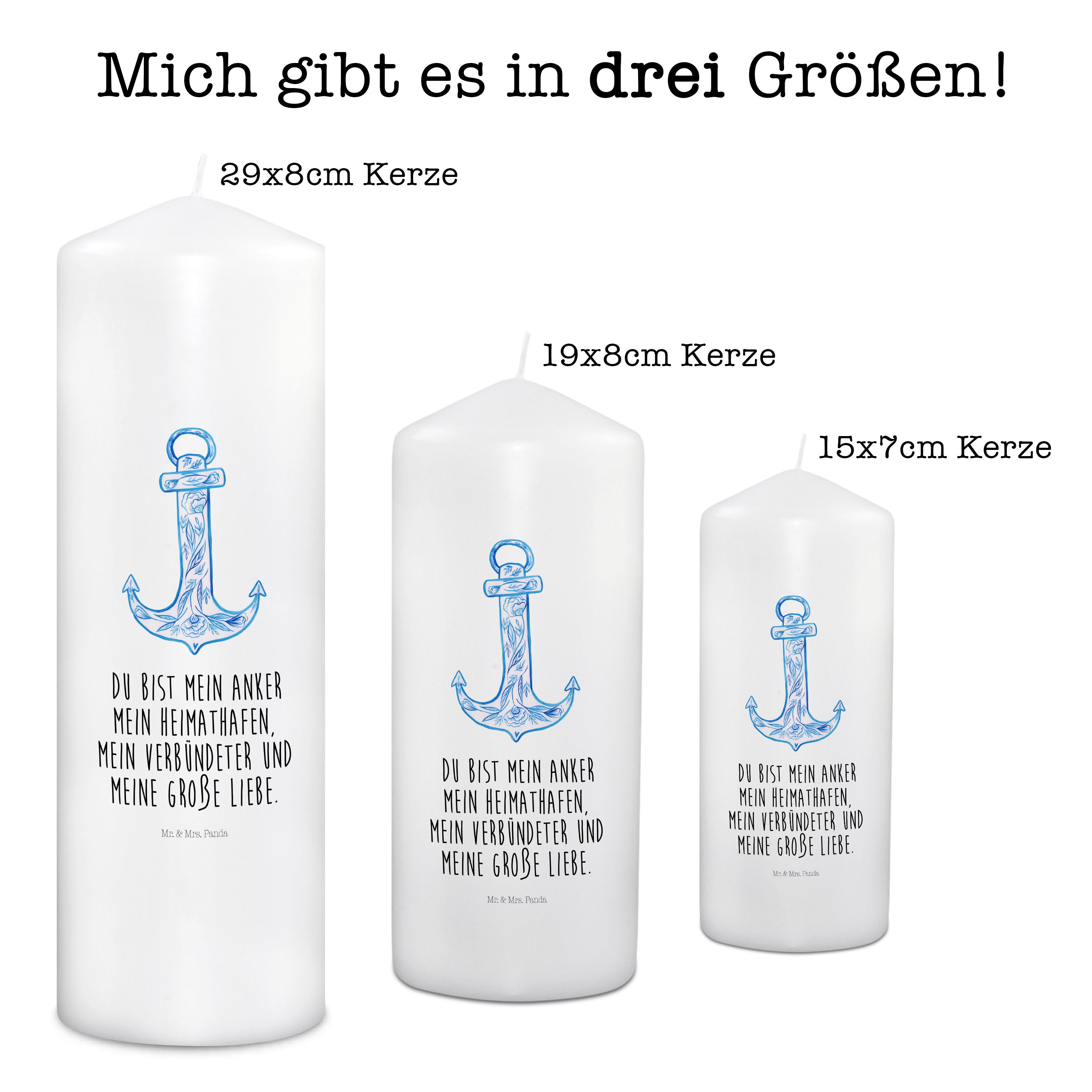 Kerze Anker Blau - 19 x 8 cm - mit Spruch