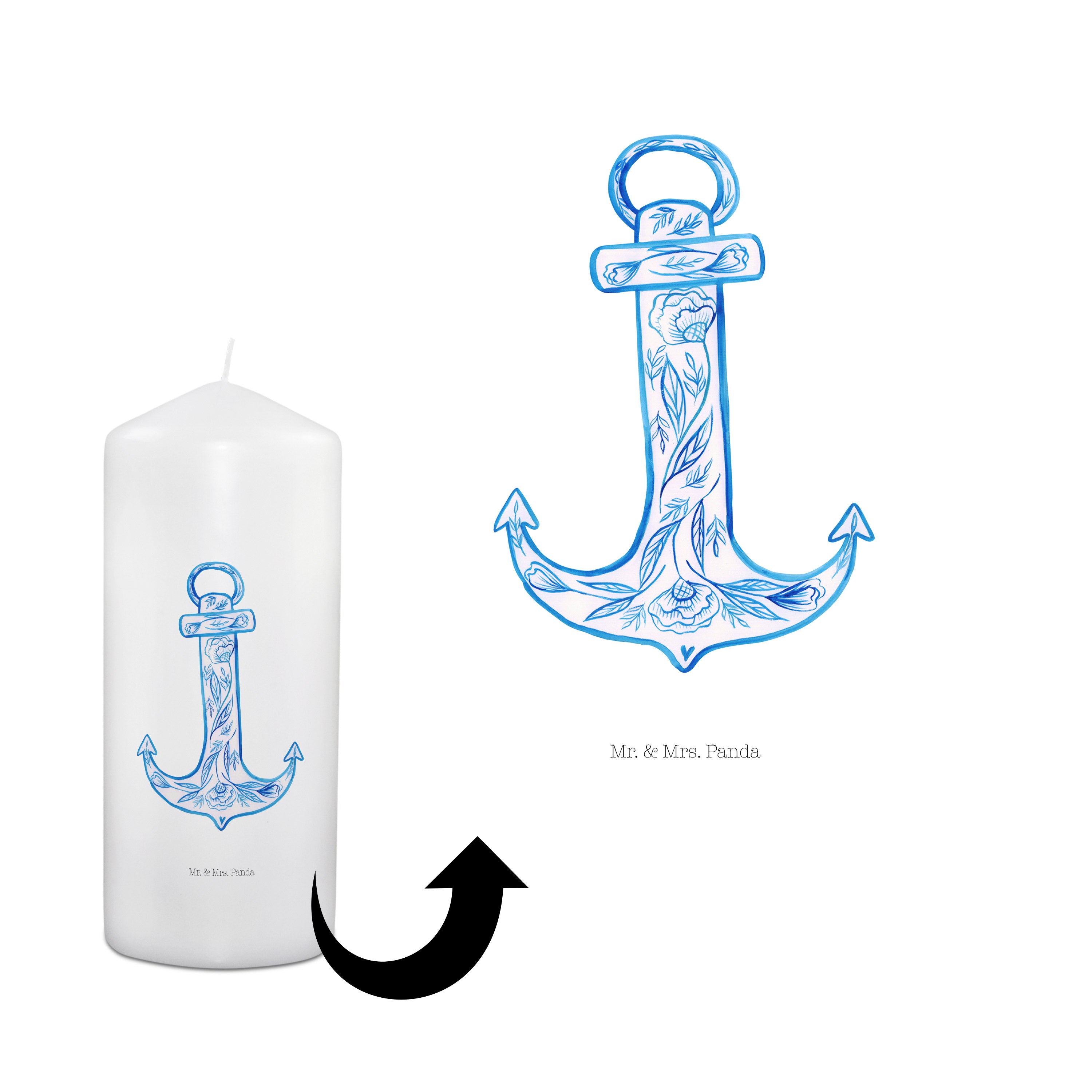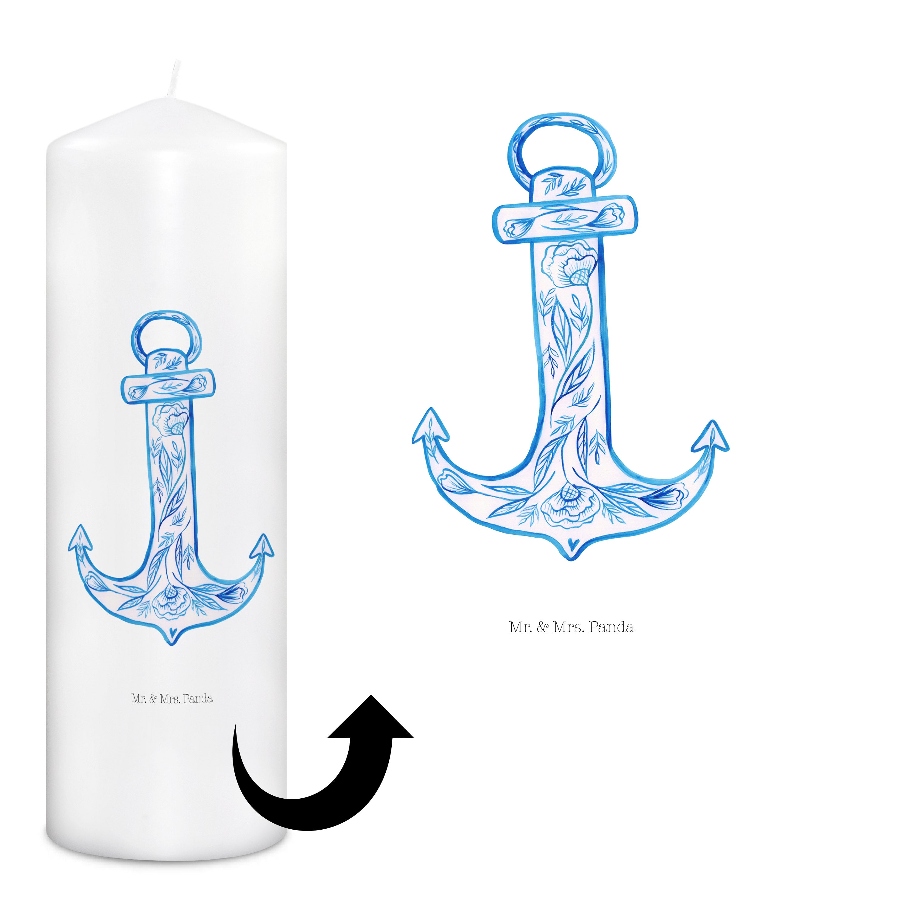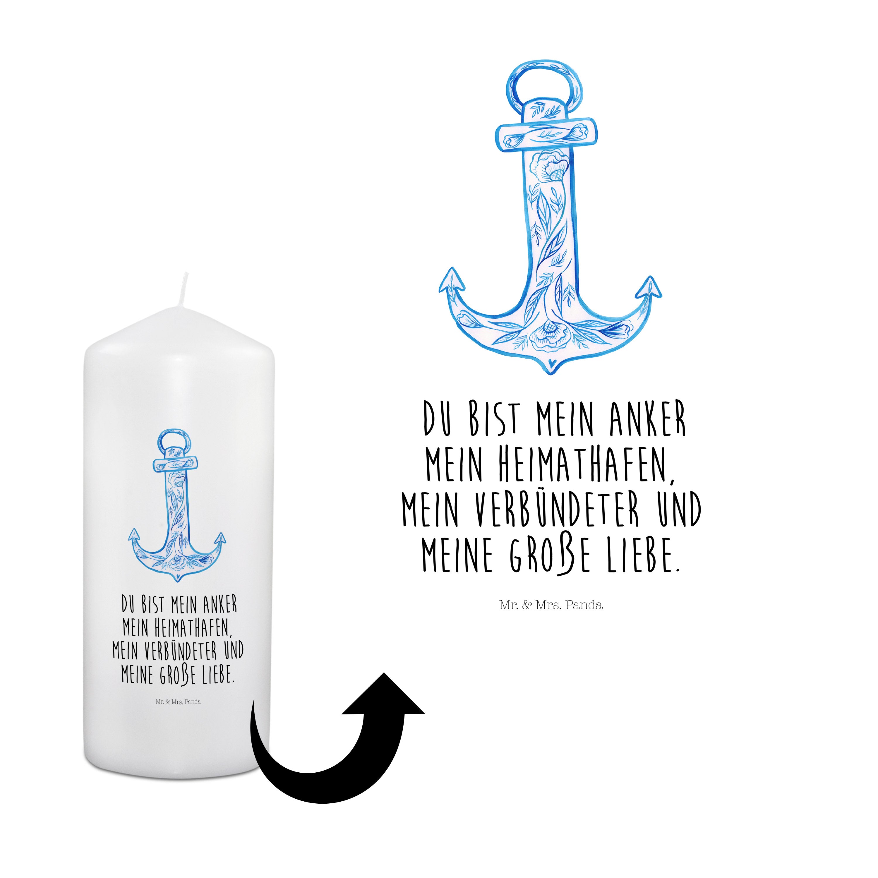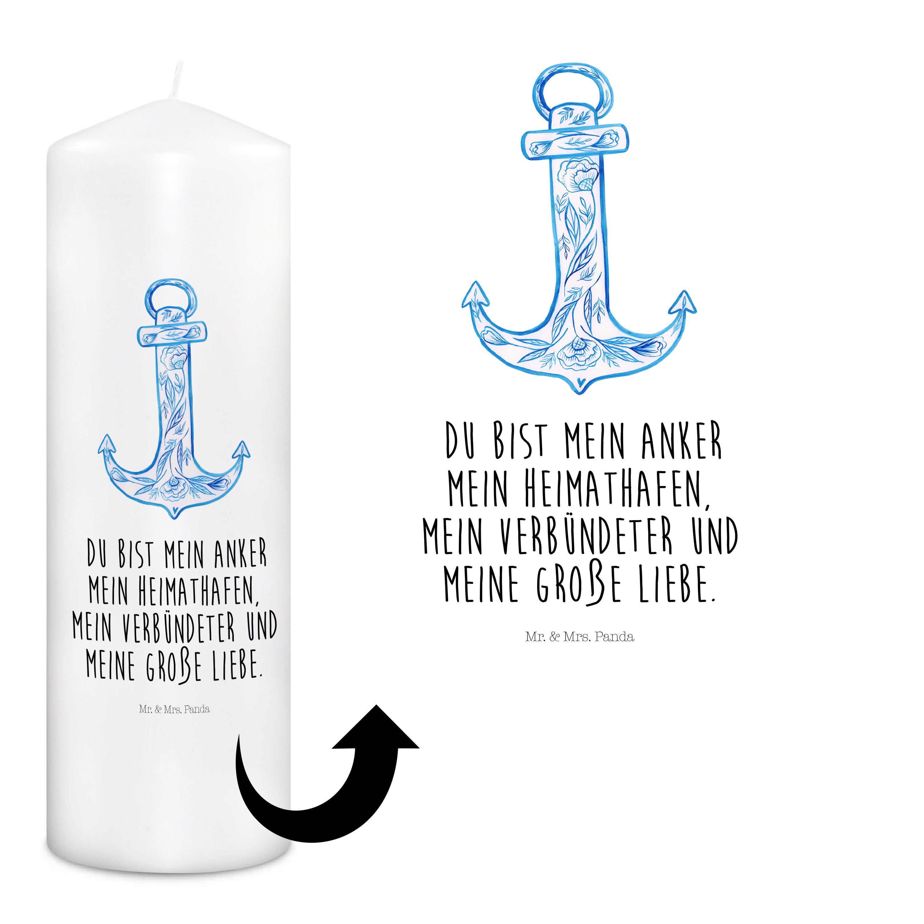 Kerze Anker Blau - 19 x 8 cm - mit Spruch