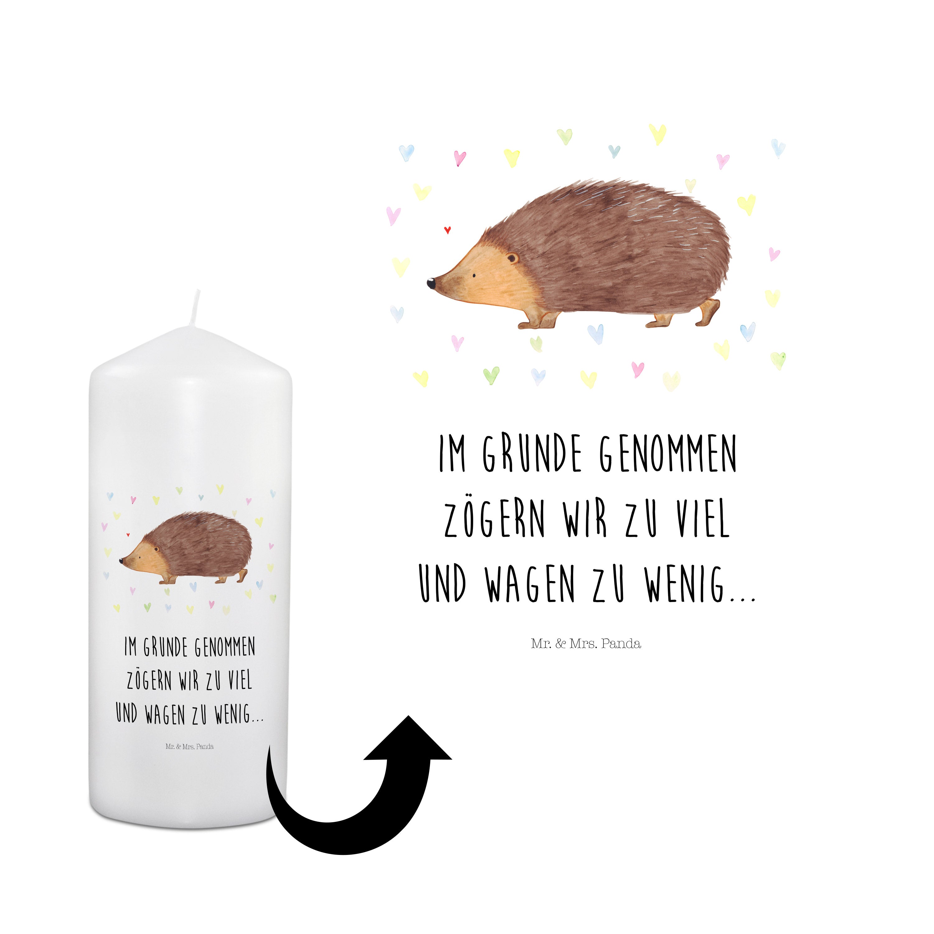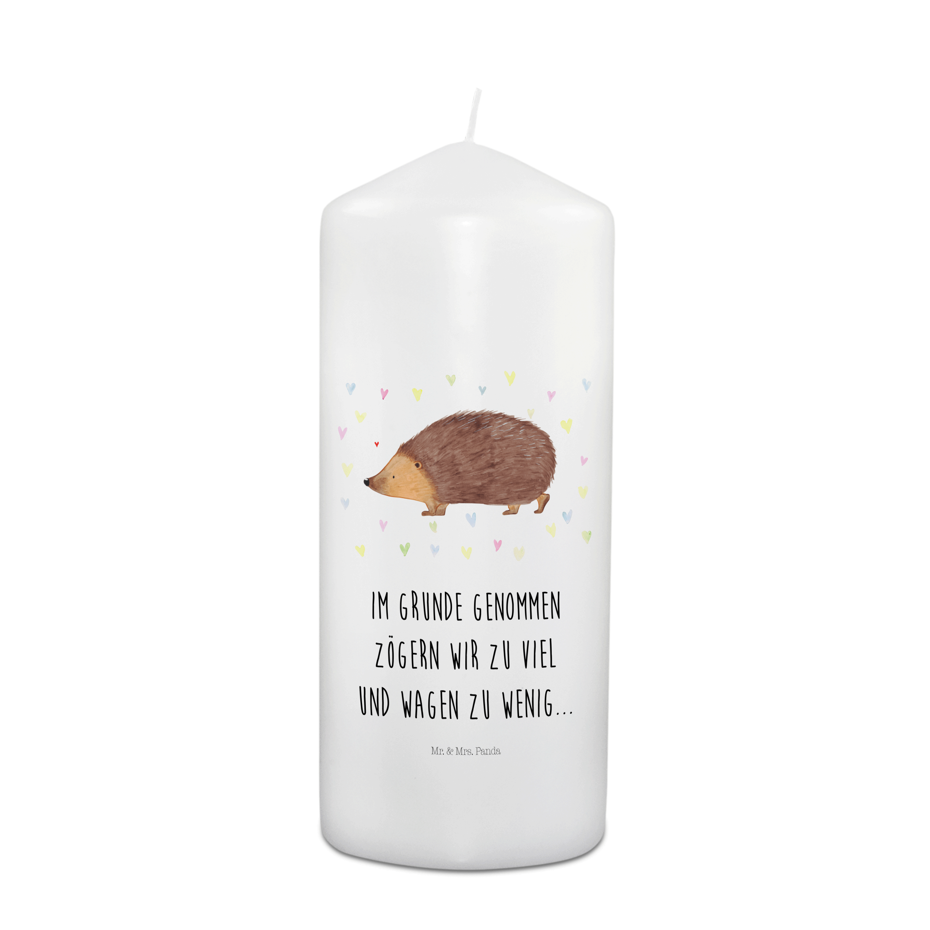 Kerze Igel Herzen - 19 x 8 cm - mit Spruch