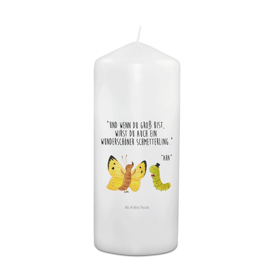 Kerze Raupe & Schmetterling - 19 x 8 cm - mit Spruch