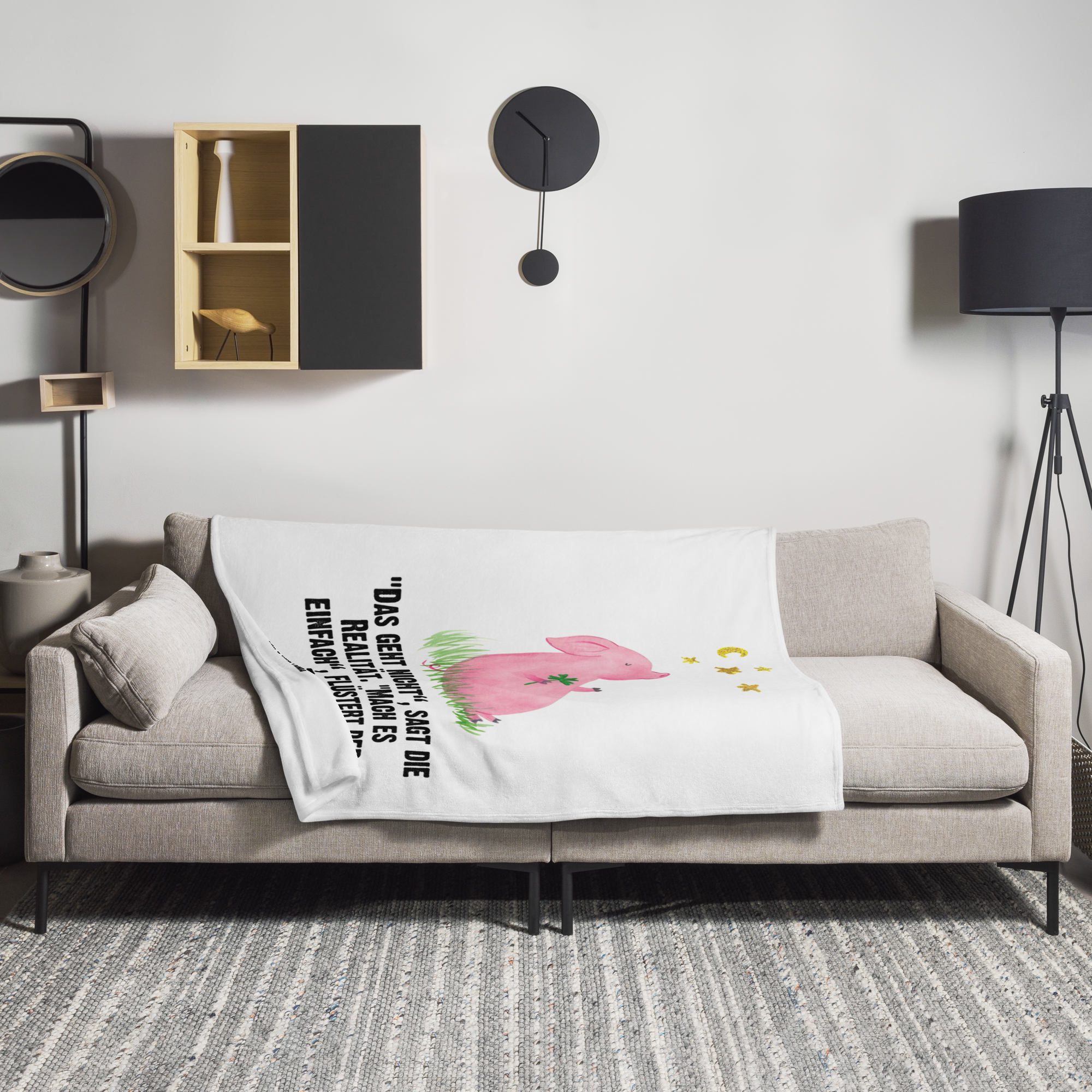 Kuscheldecke Glücksschwein - mit Spruch