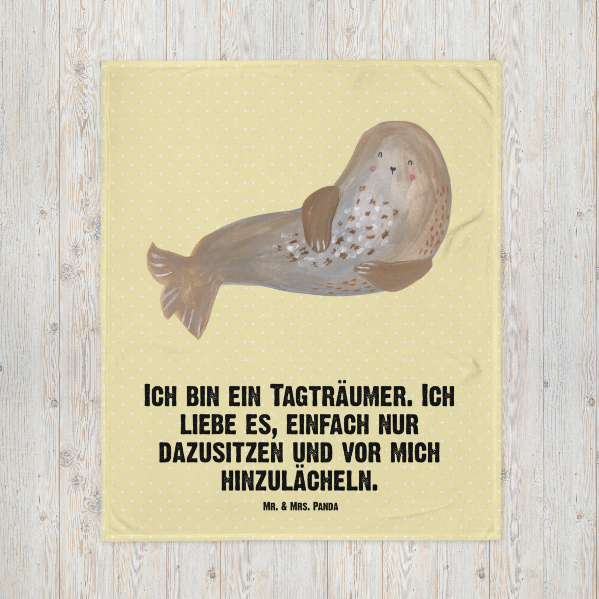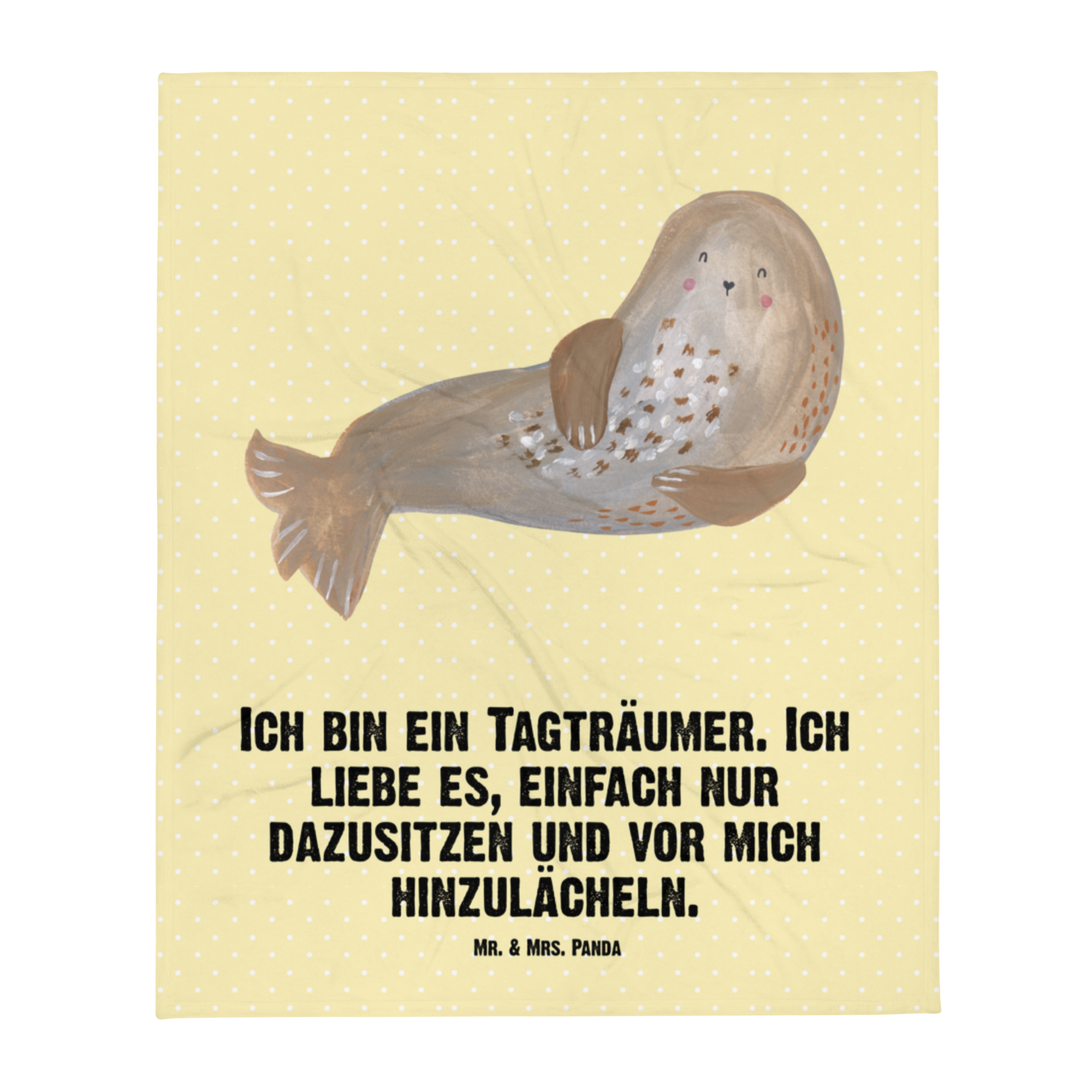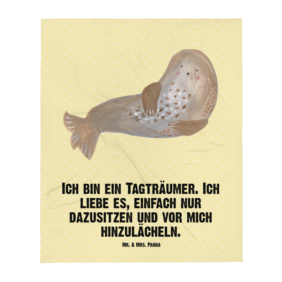 Kuscheldecke Robbe lachend Decke, Wohndecke, Tagesdecke, Wolldecke, Sofadecke, Tiermotive, Gute Laune, lustige Sprüche, Tiere, Robbe, Robben, Seehund, Strand, Meerestier, Ostsee, Nordsee