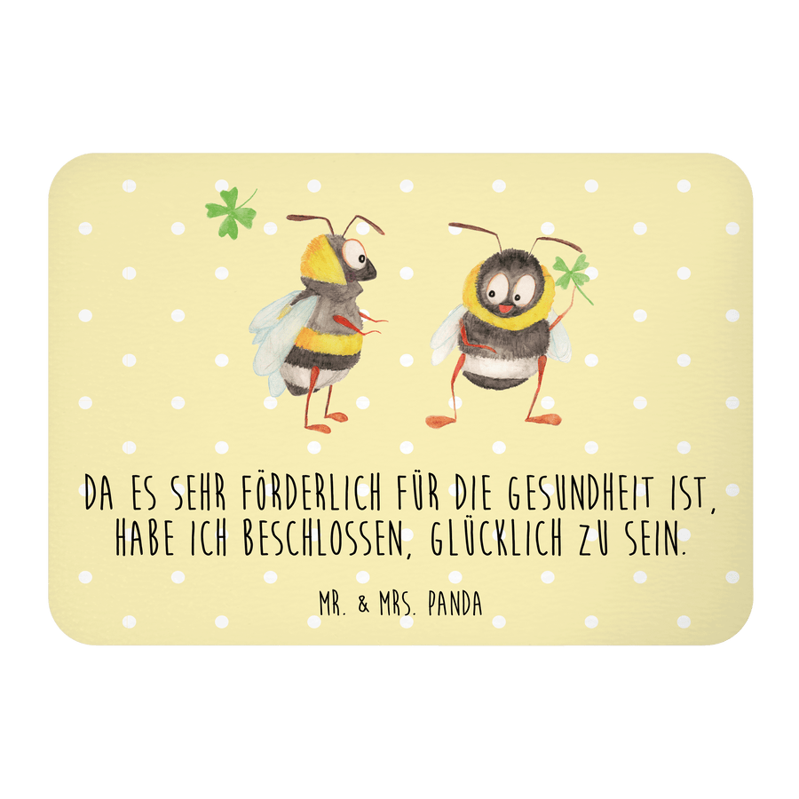 Magnet Hummeln mit Kleeblatt - mit Spruch - Gelb Pastell
