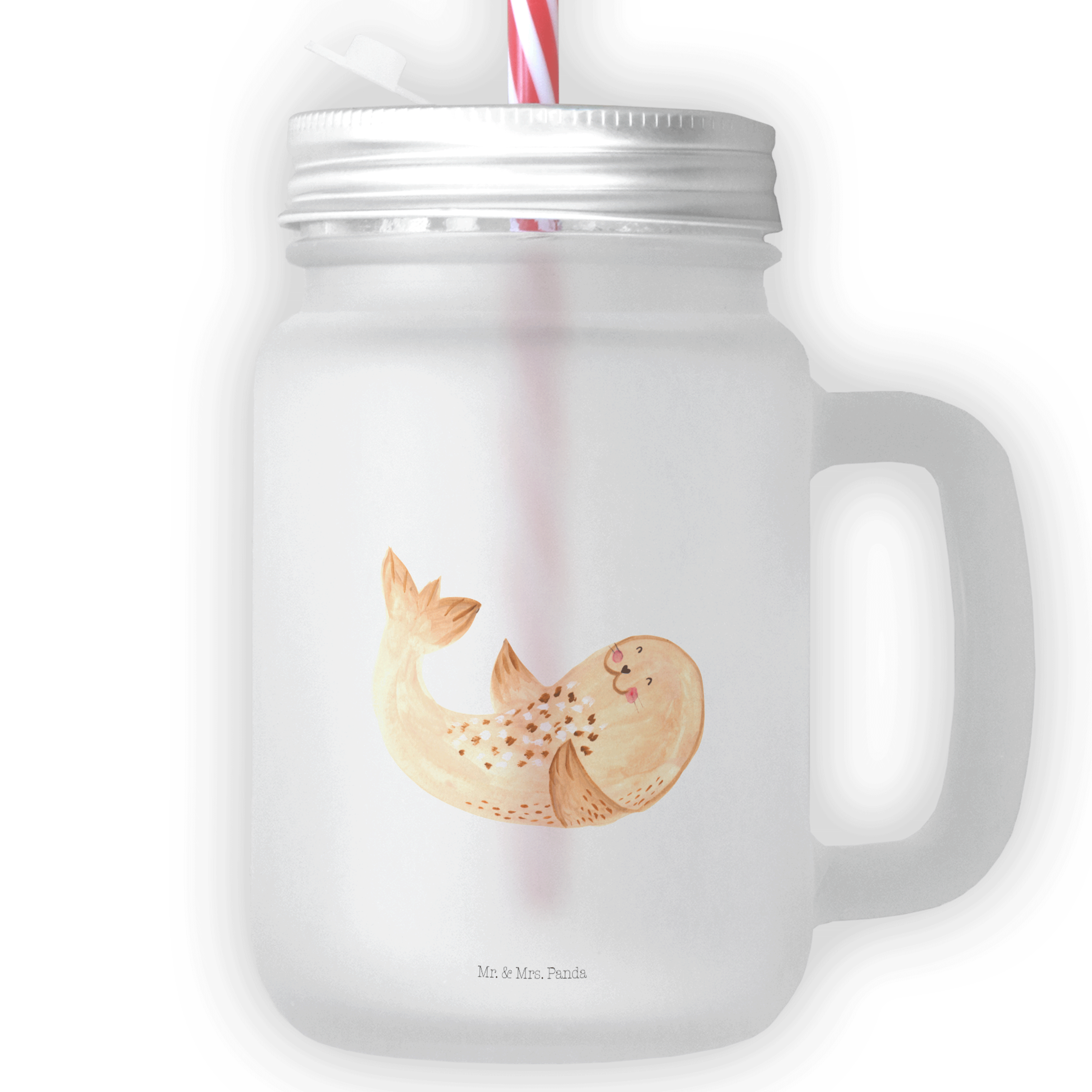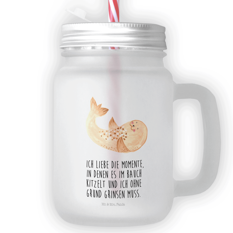 Trinkglas Mason Jar Robbe liegend - mit Spruch