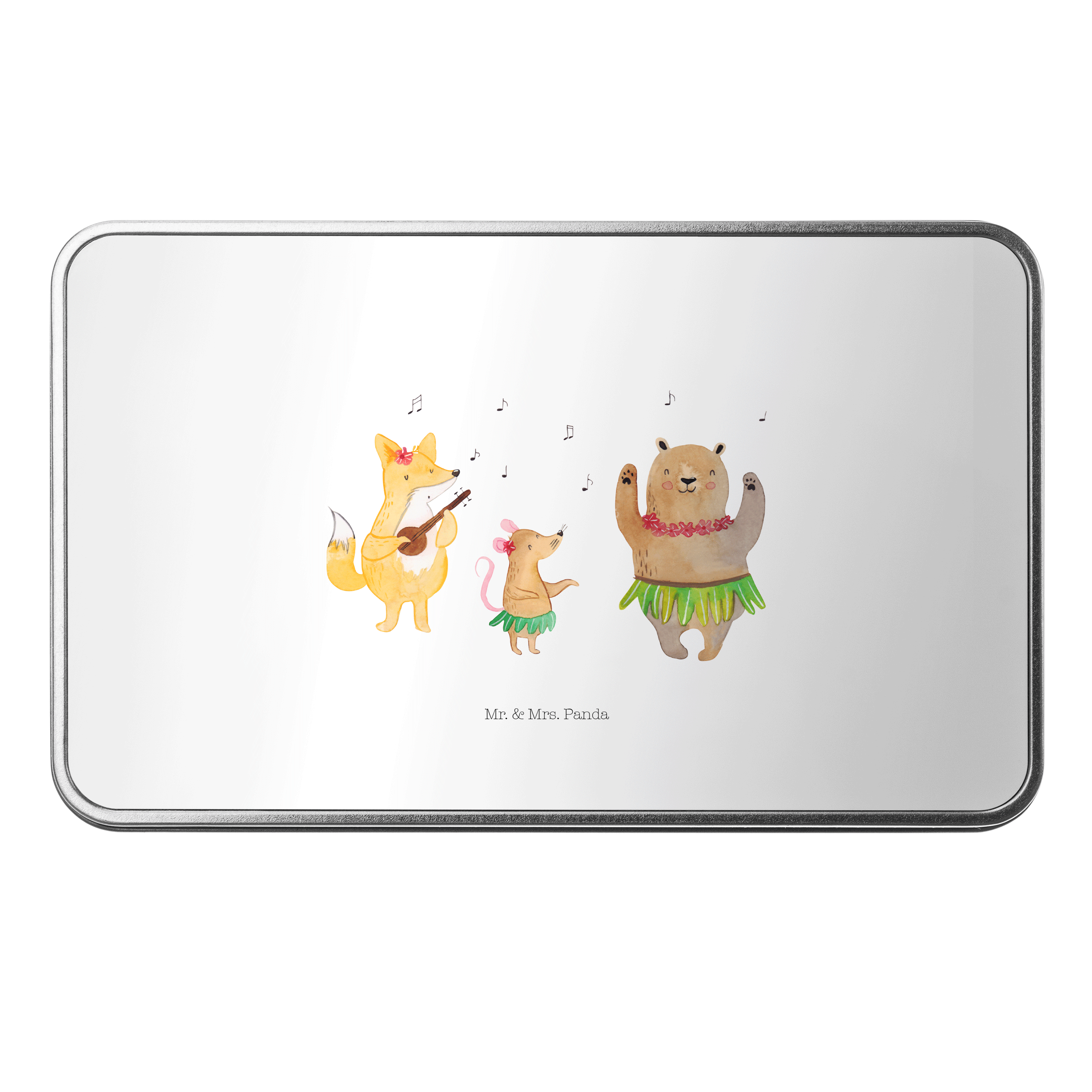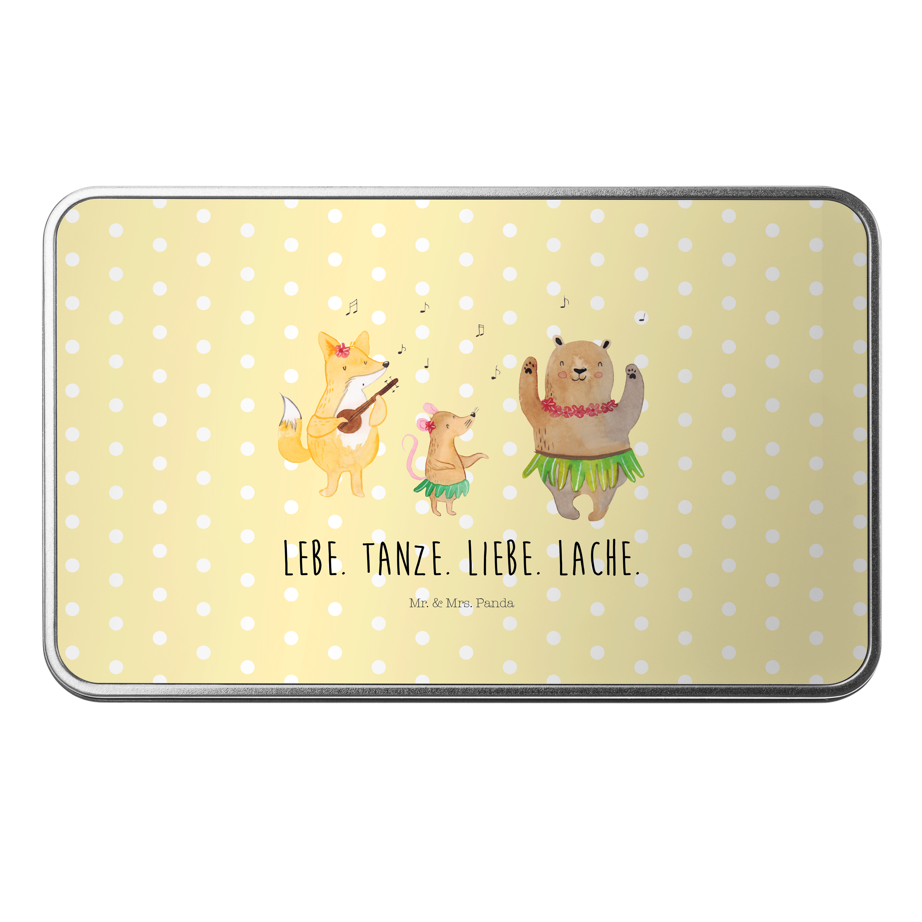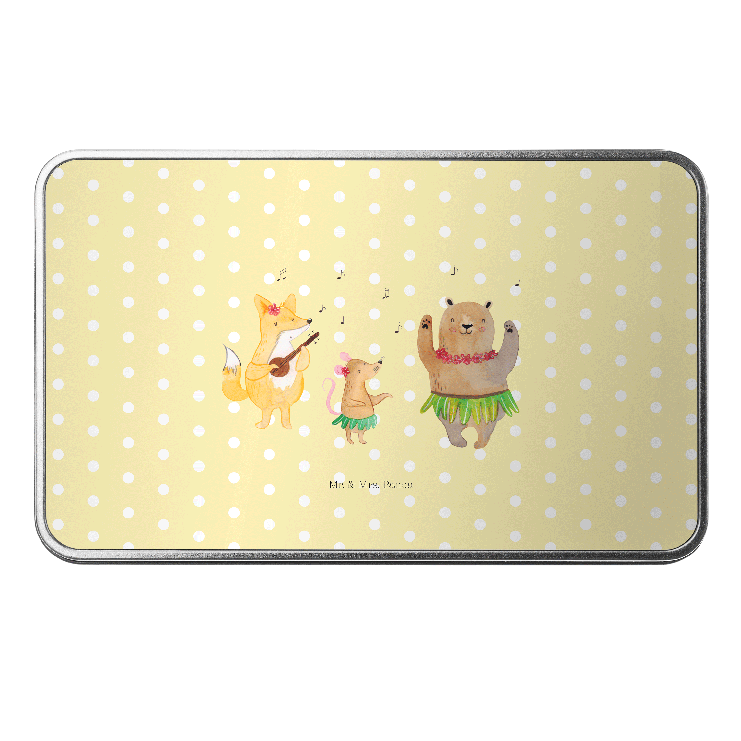 Metalldose rechteckig Waldtiere Aloha - mit Spruch - Gelb Pastell