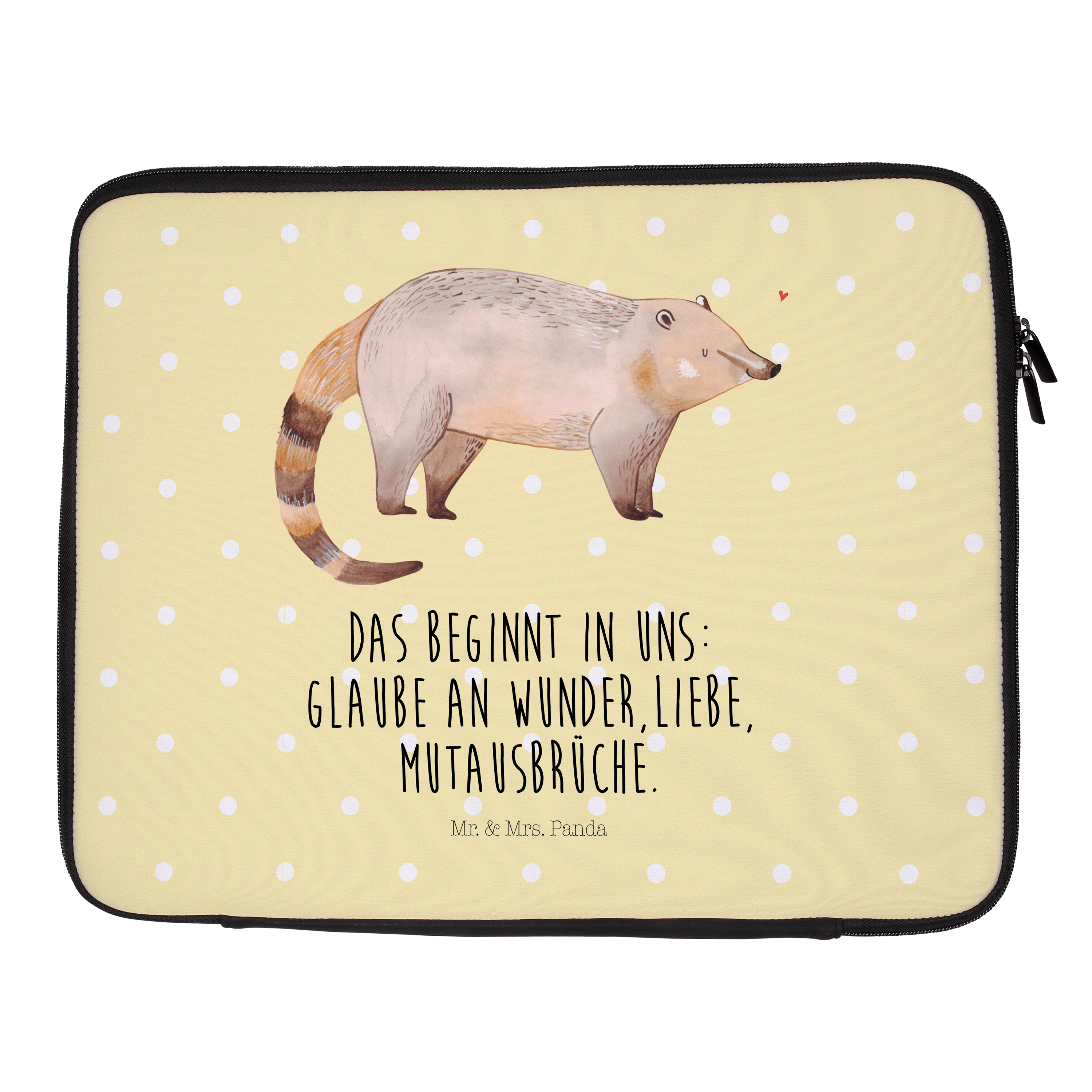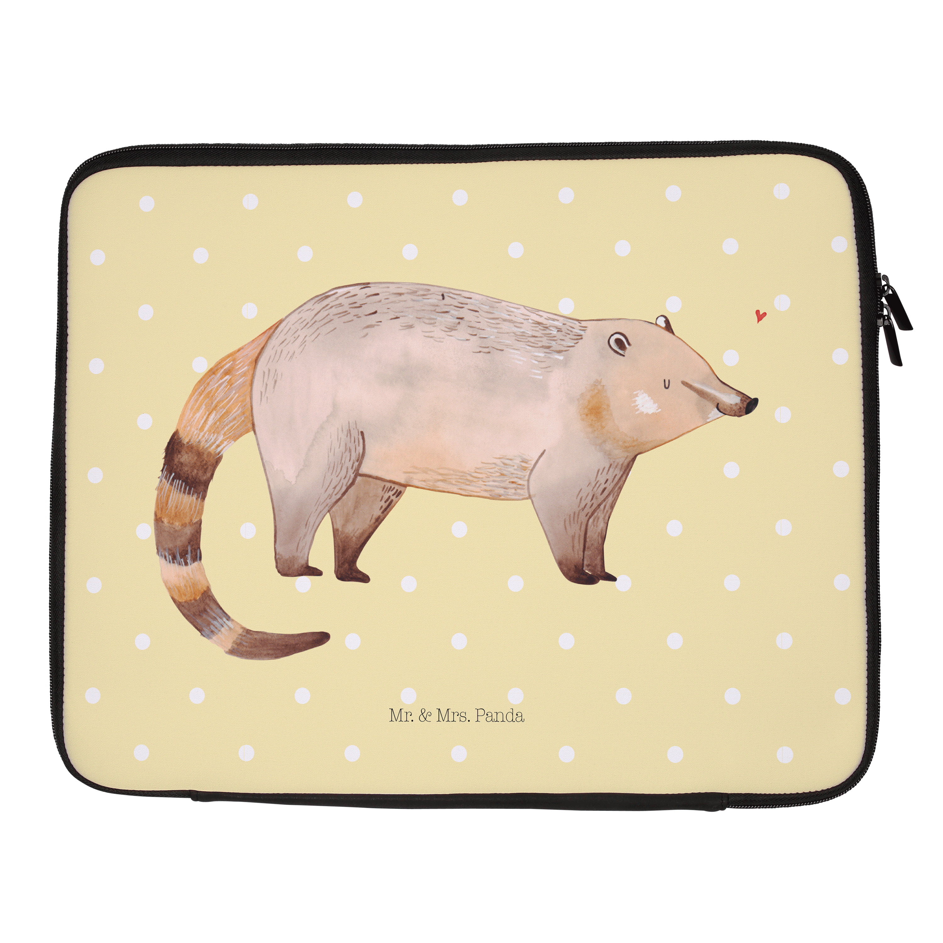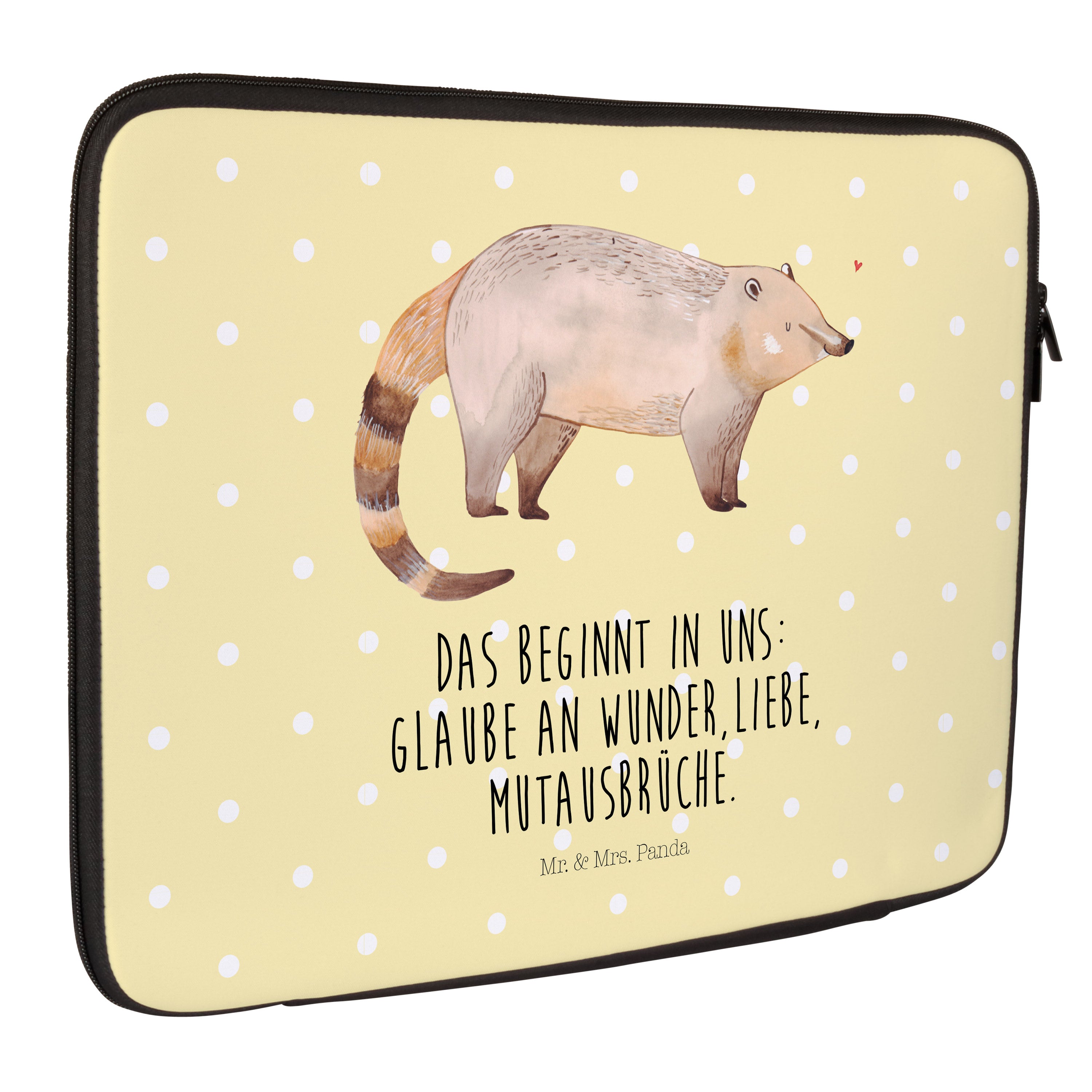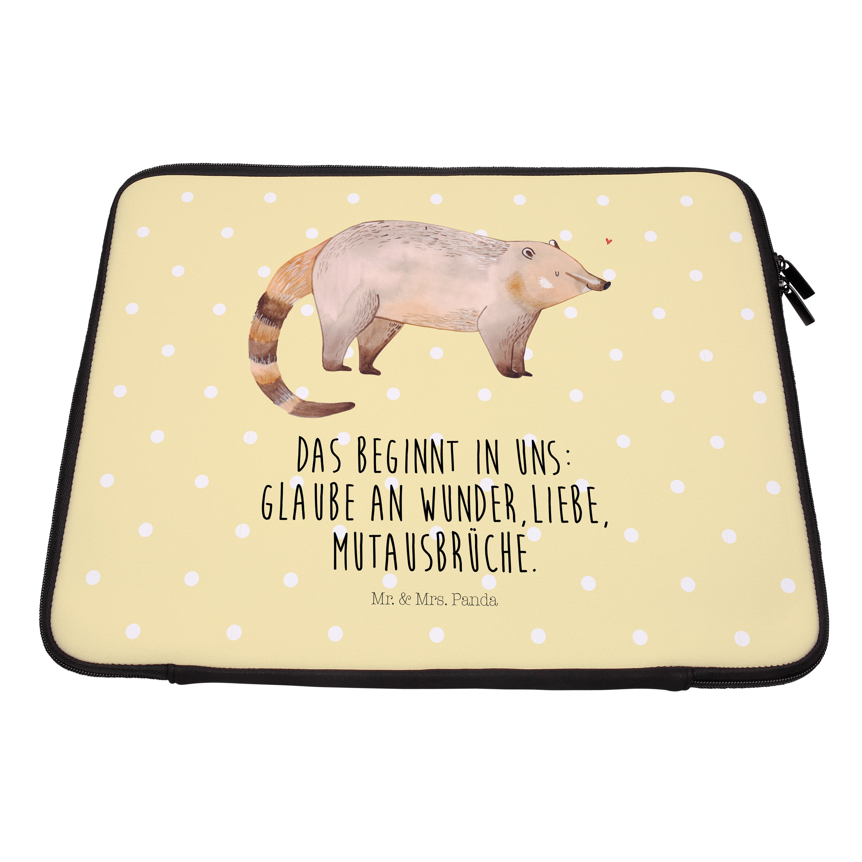 33 x 42 Notebook Tasche Nasenbär - mit Spruch - Gelb Pastell