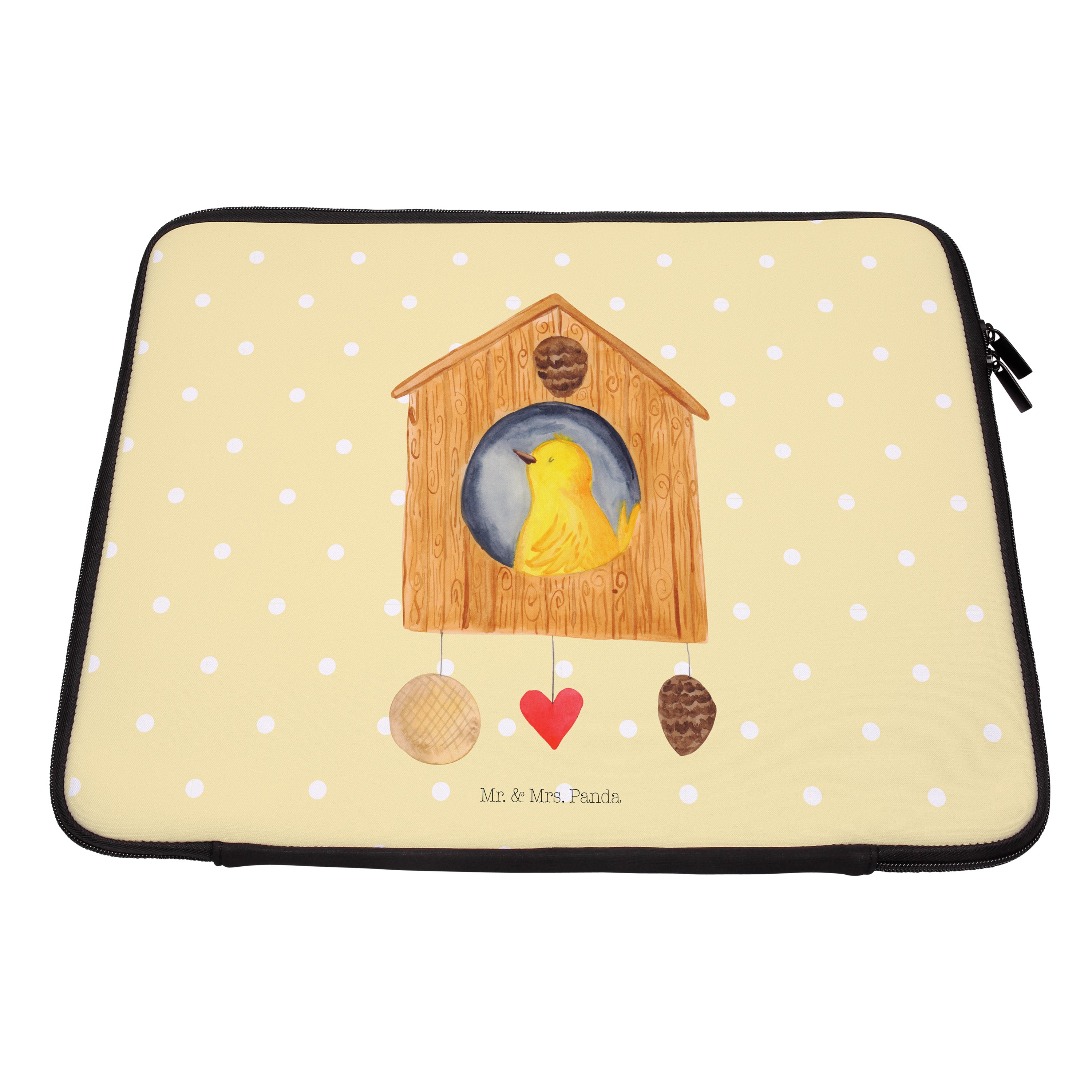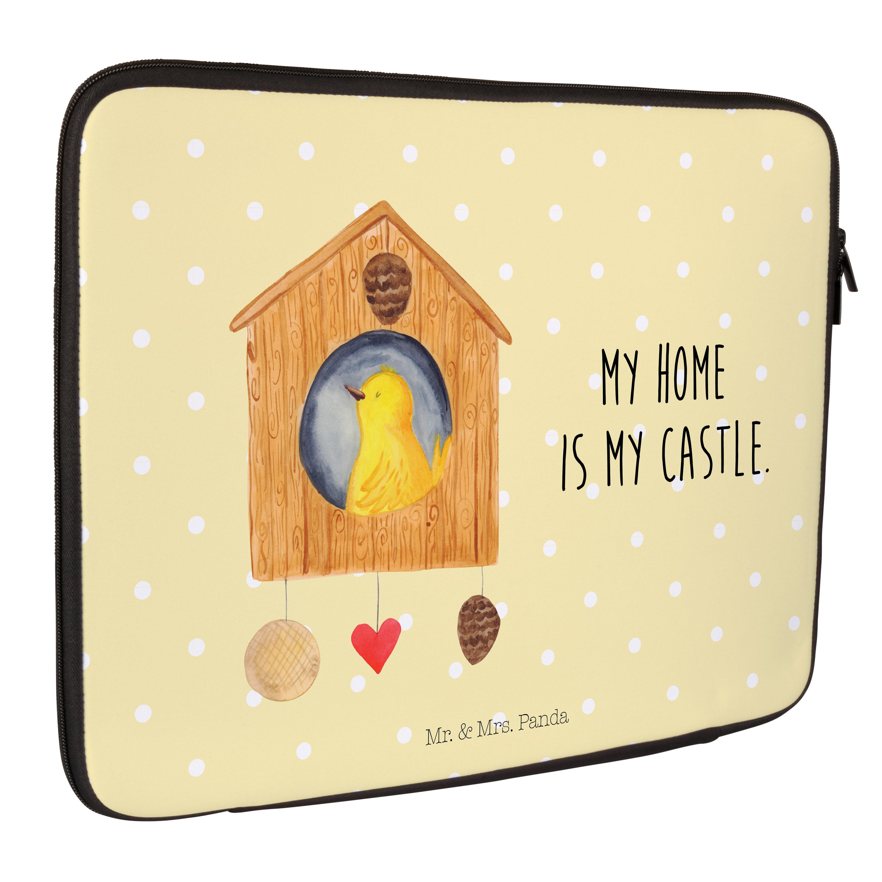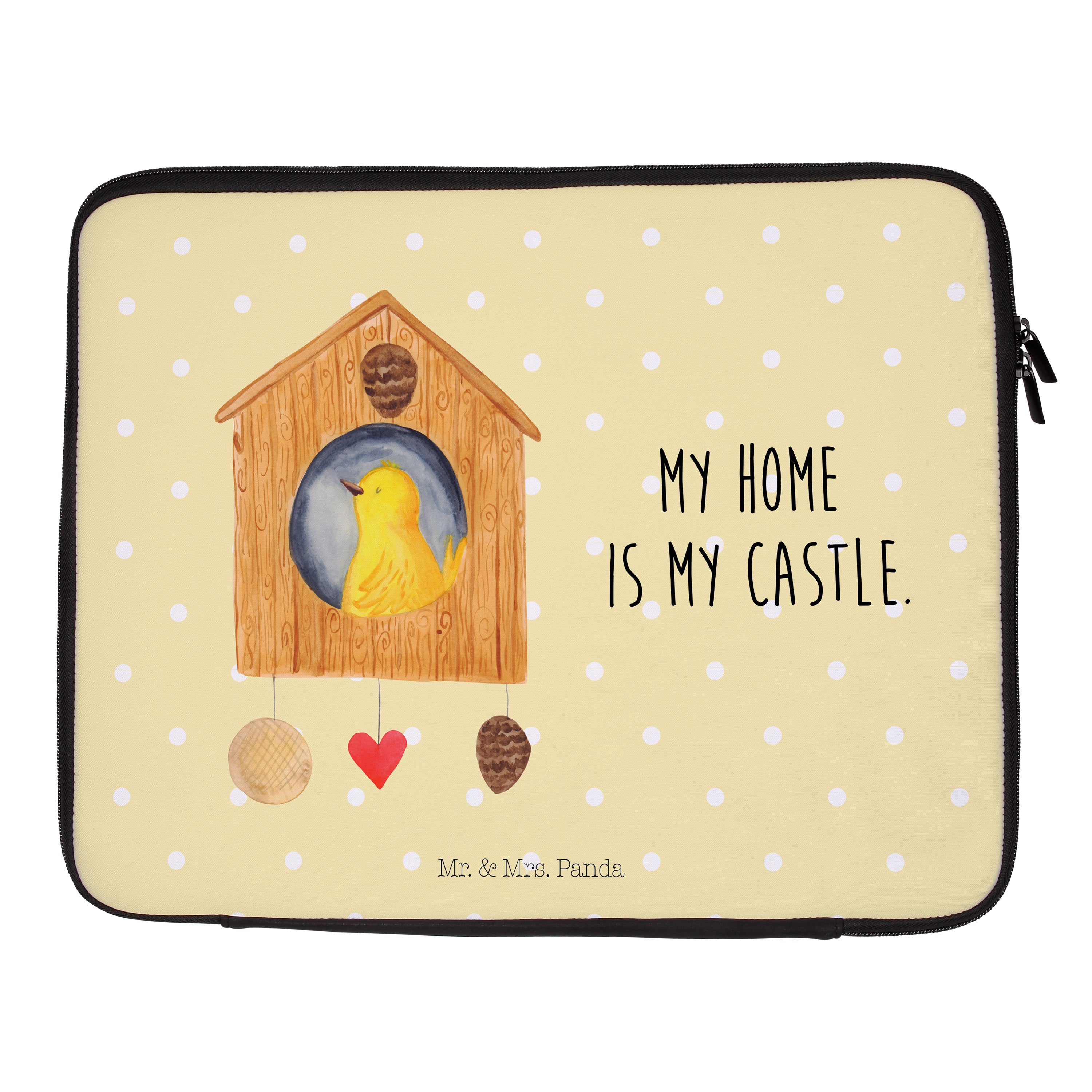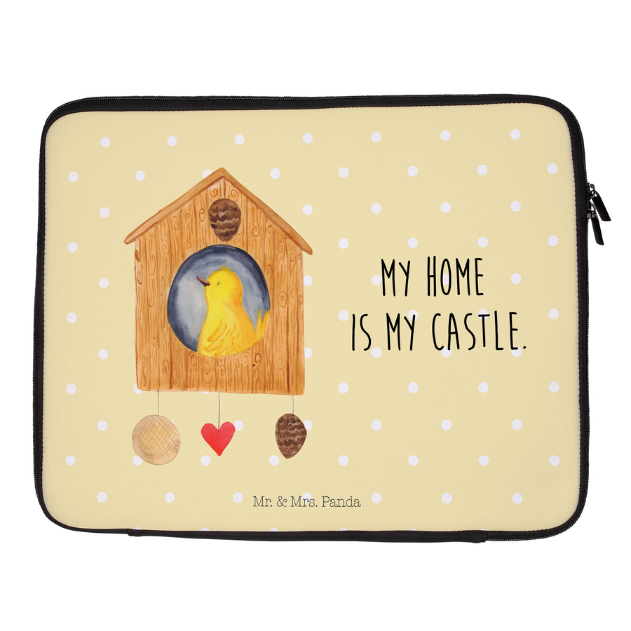 20 x 28 Notebook Tasche Vogelhaus - mit Spruch - Gelb Pastell