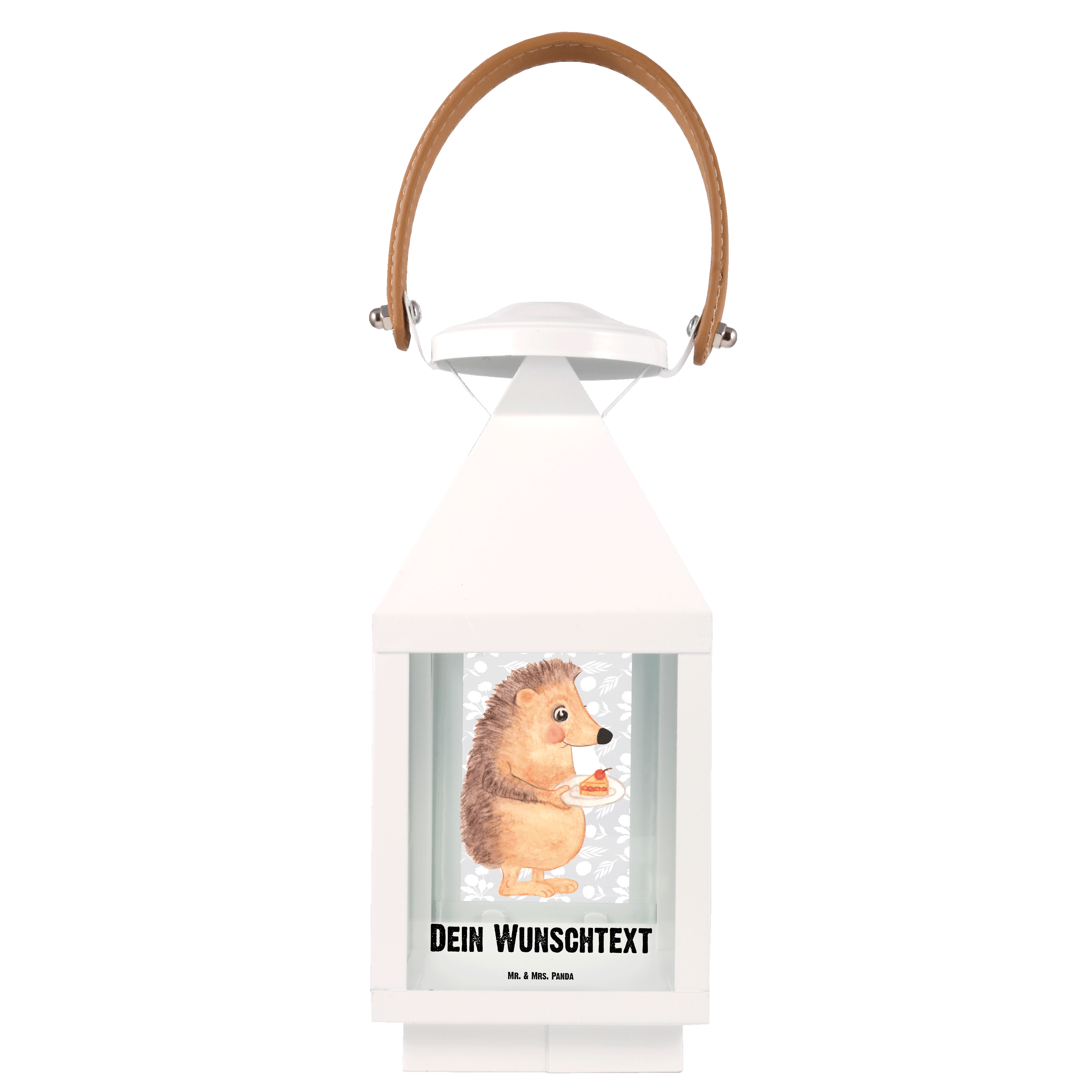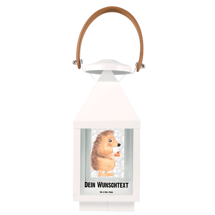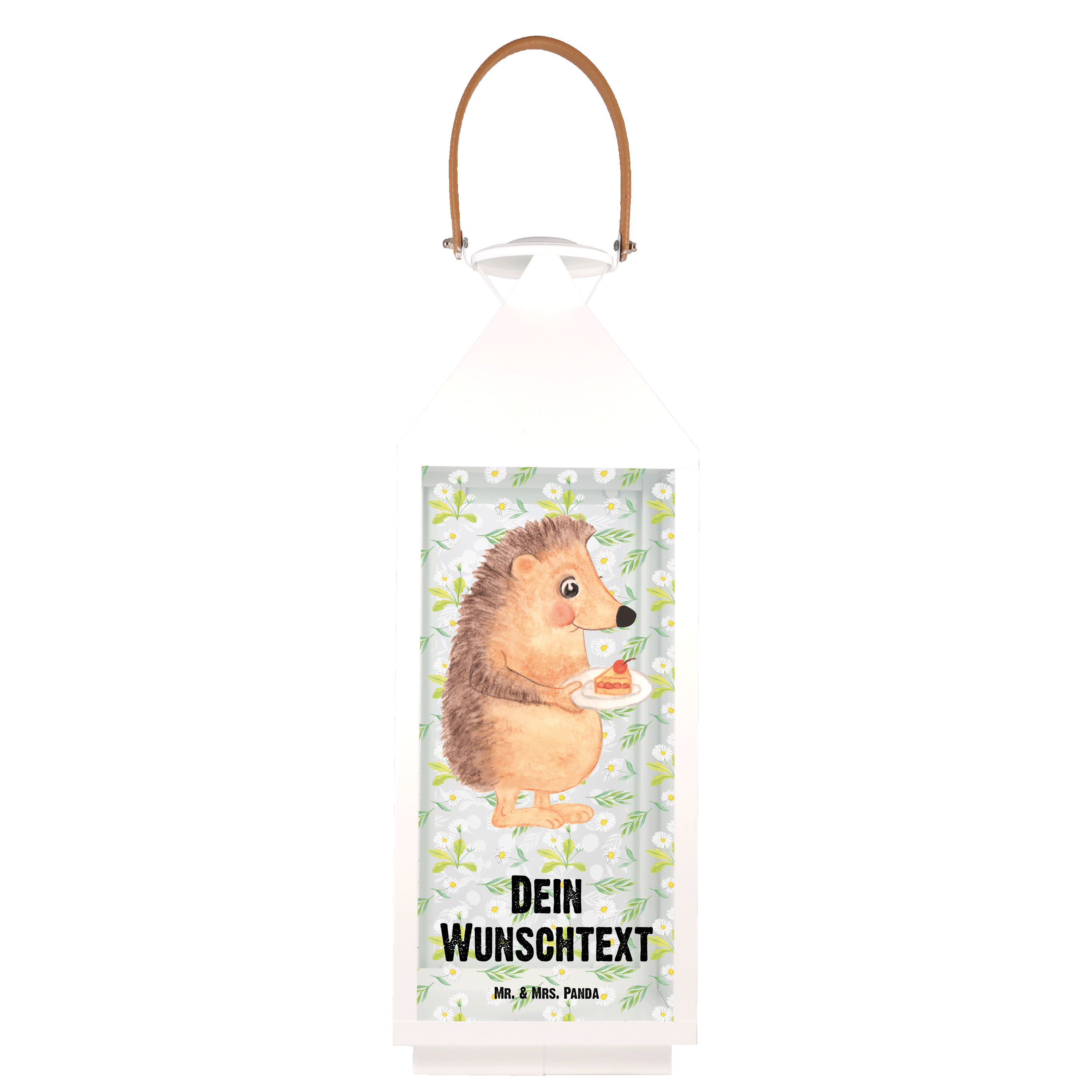 Personalisierte Deko Laterne Igel mit Kuchenstück - S
