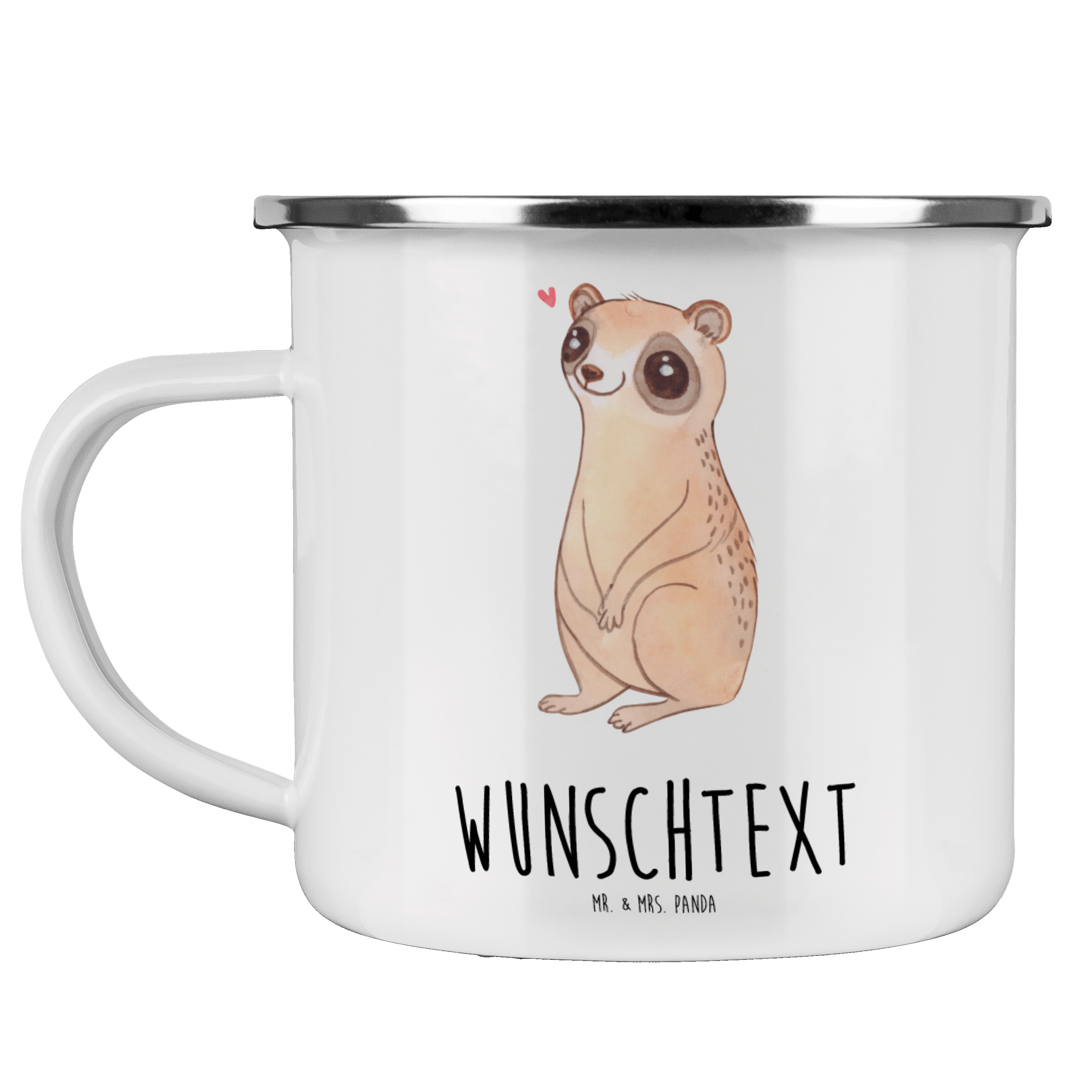 Personalisierte Emaille Tasse Plumplori Glücklich