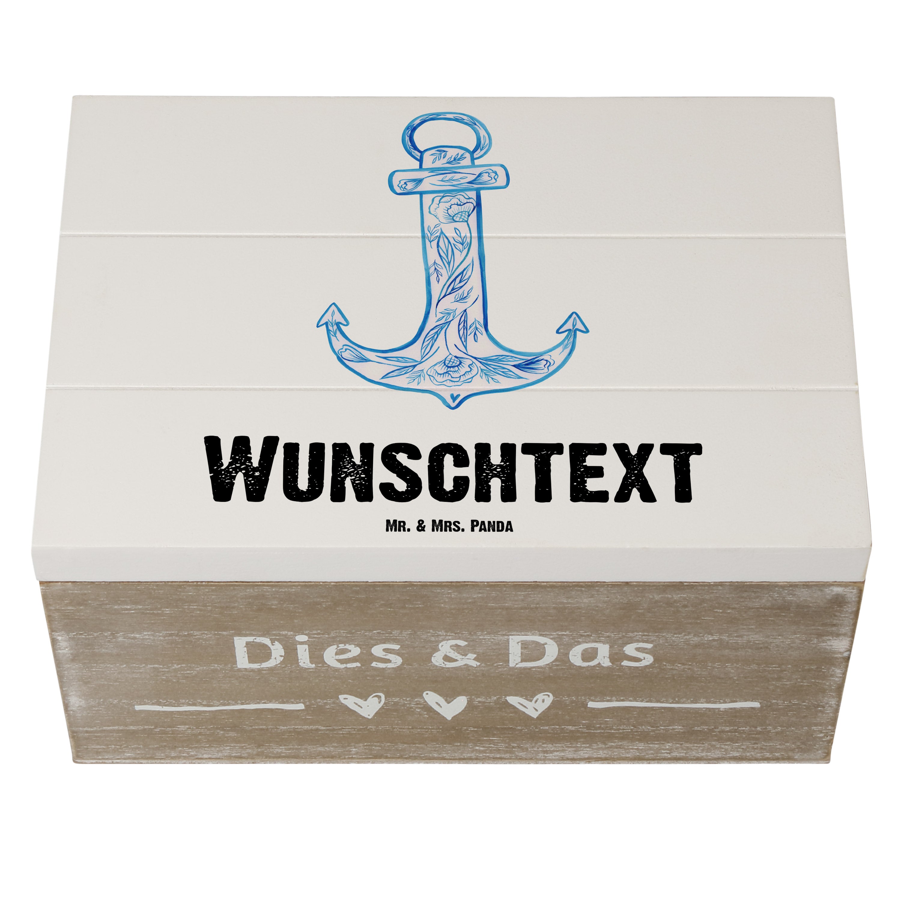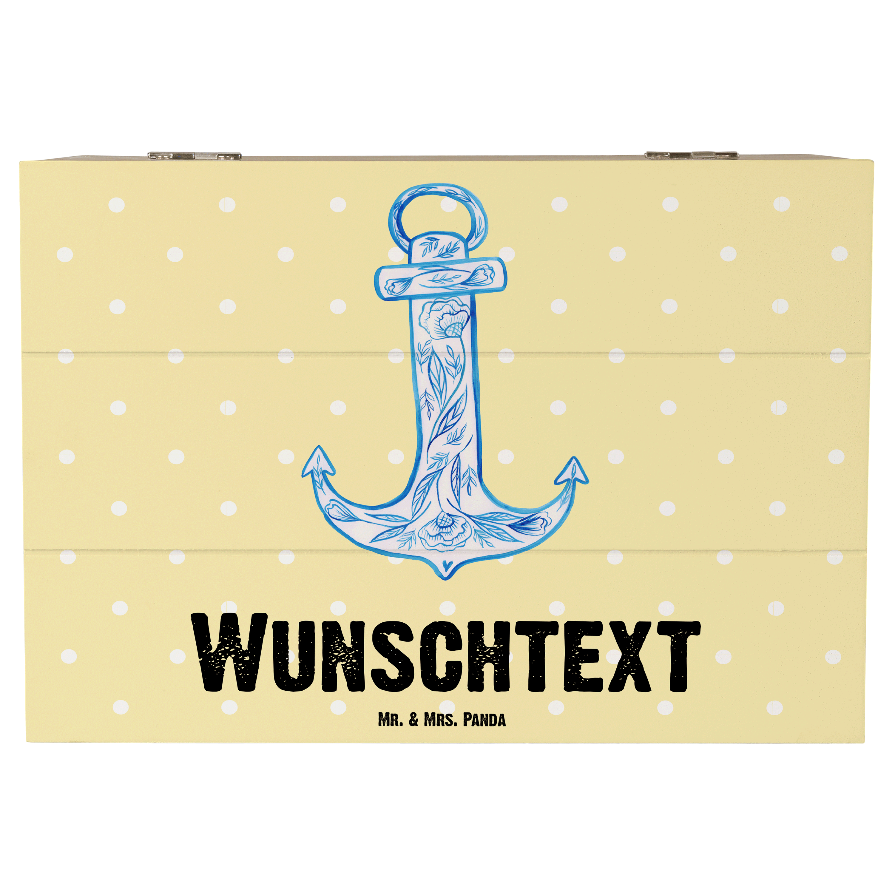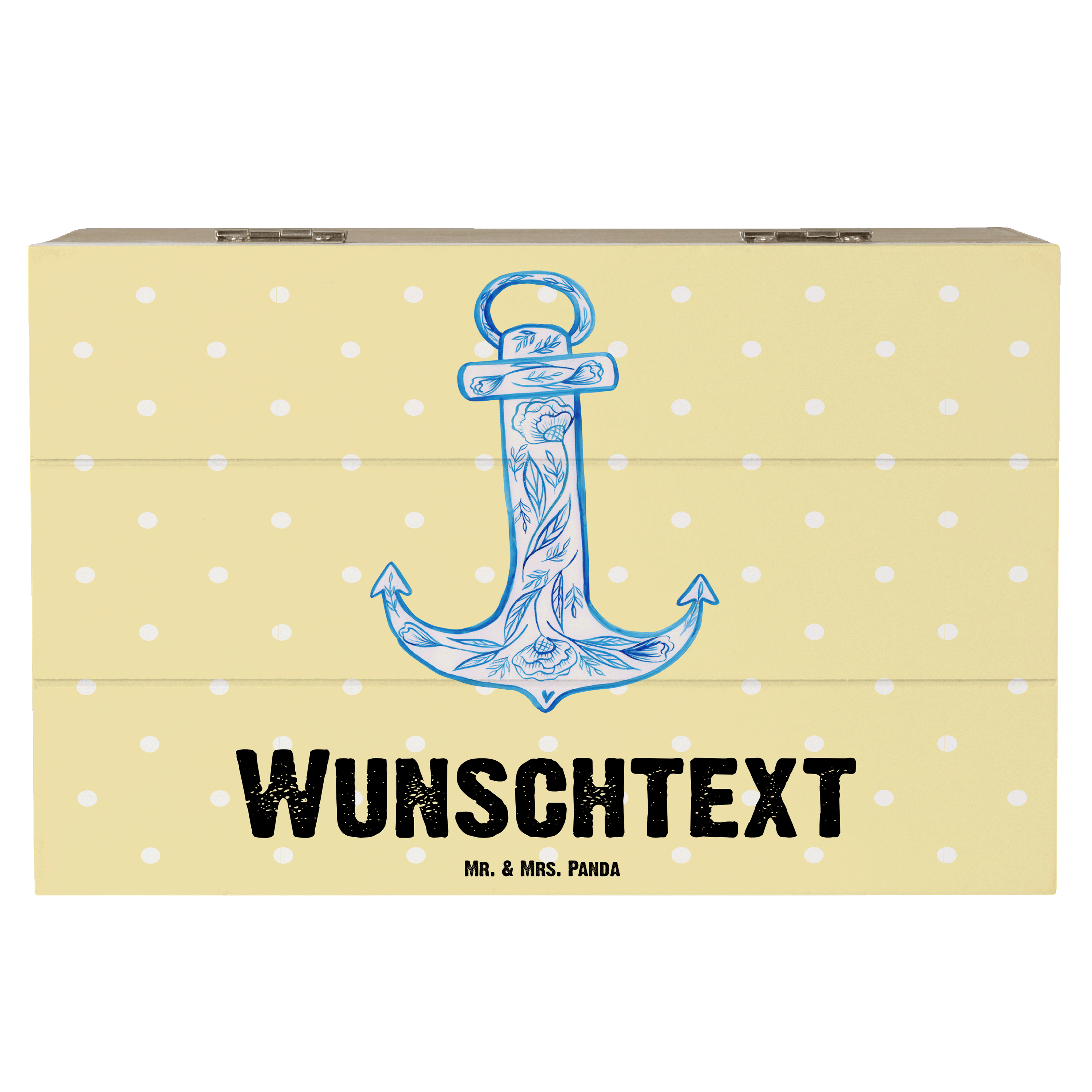 Personalisierte Holzkiste Anker Blau - Gelb Pastell - 19 x 12 cm