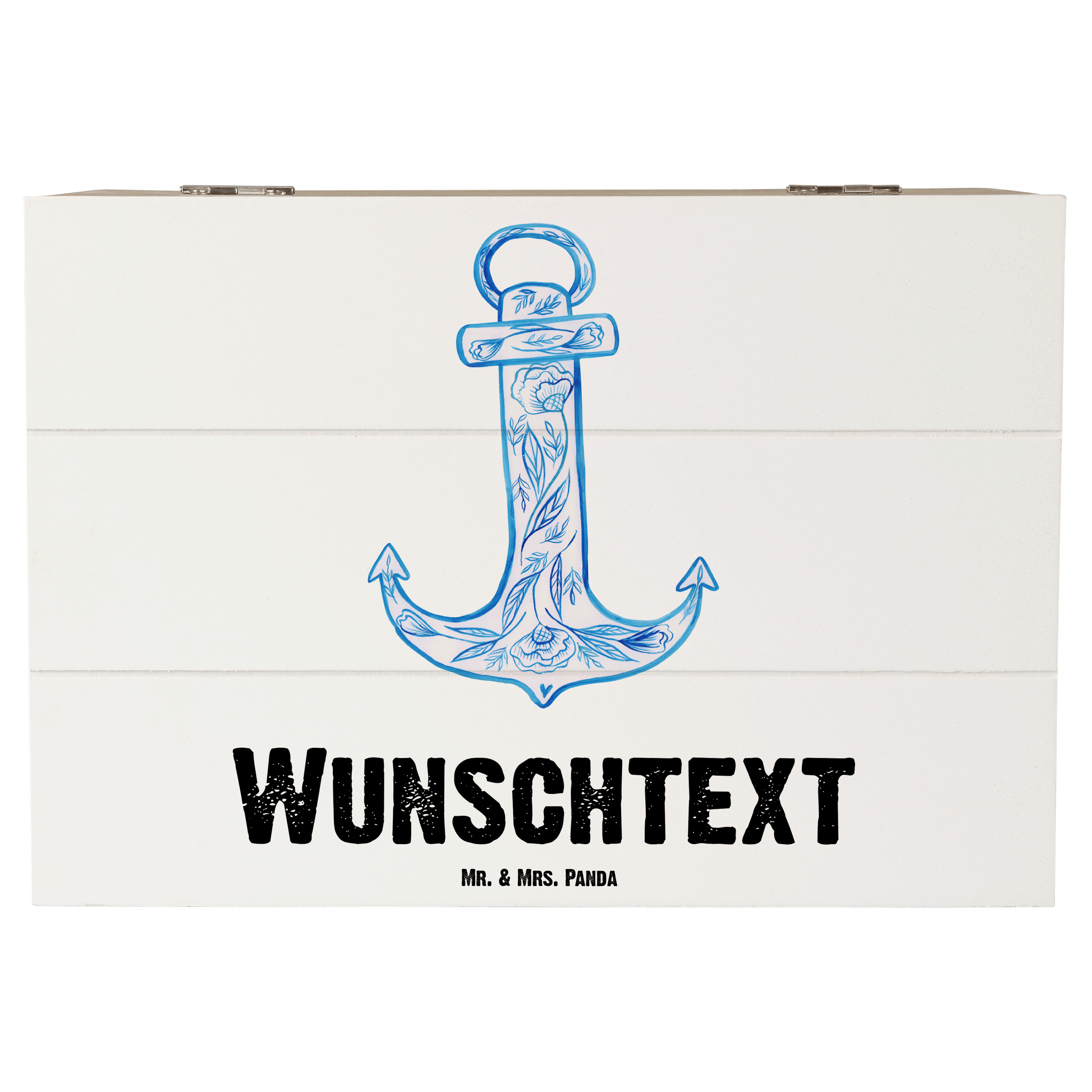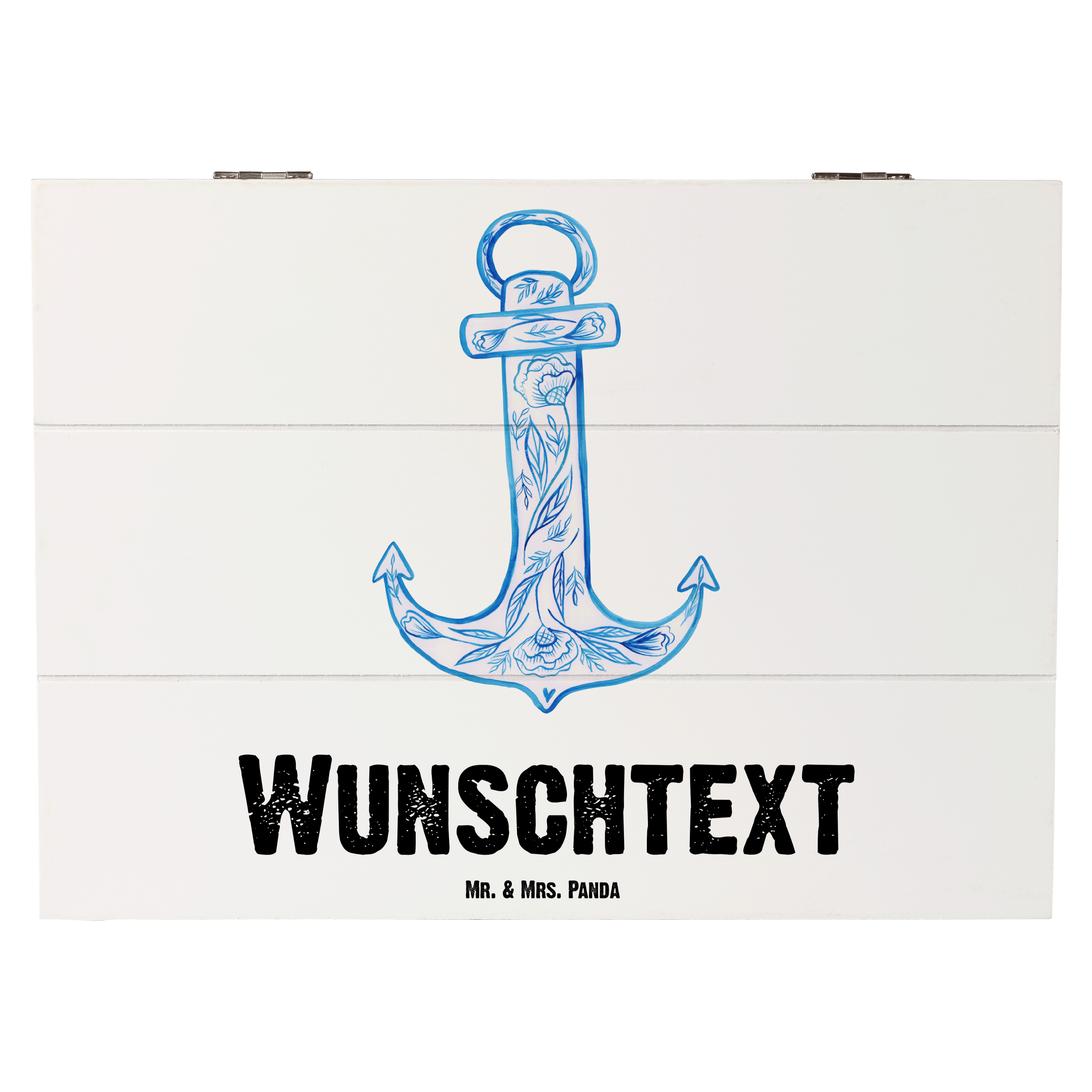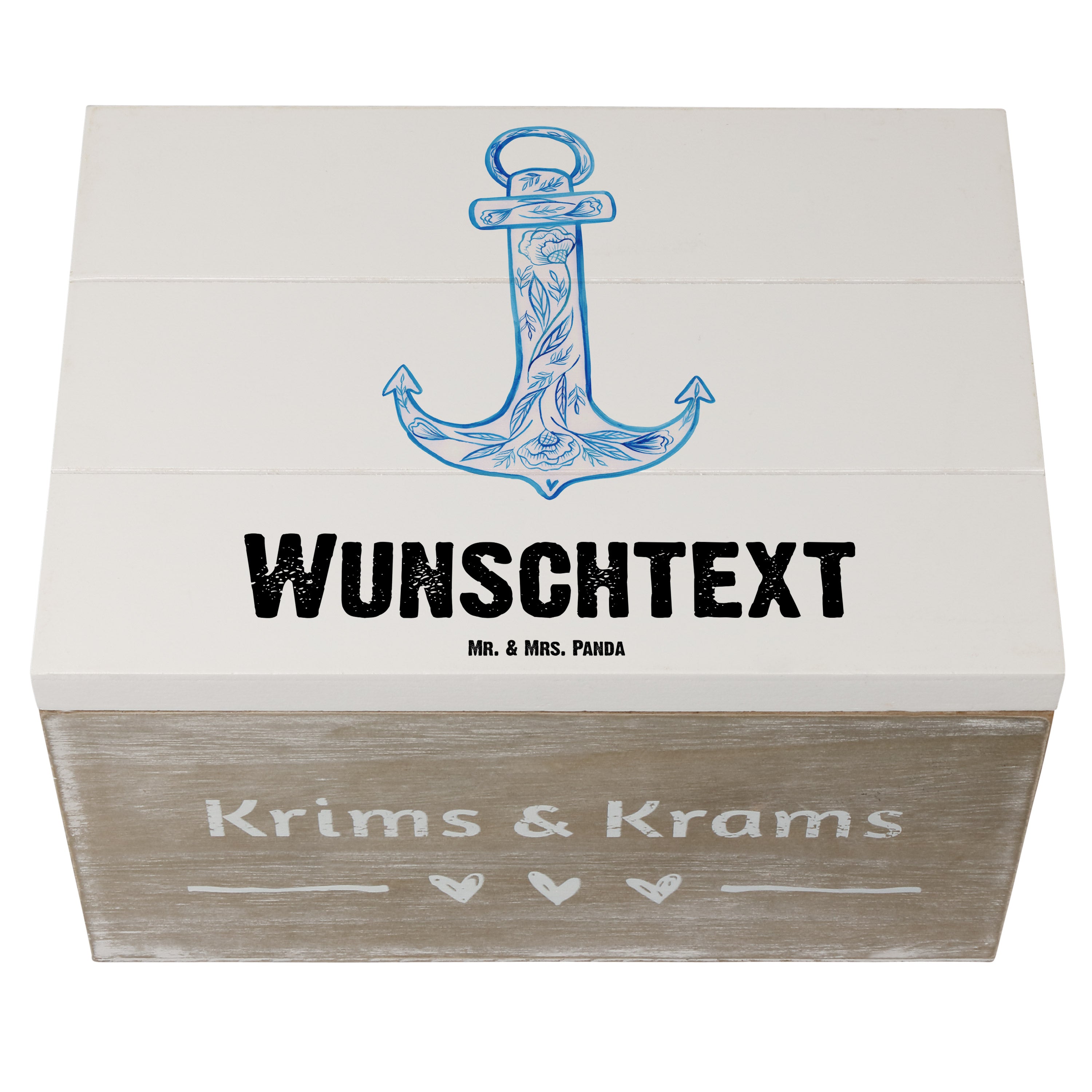 Personalisierte Holzkiste Anker Blau - Gelb Pastell - 19 x 12 cm
