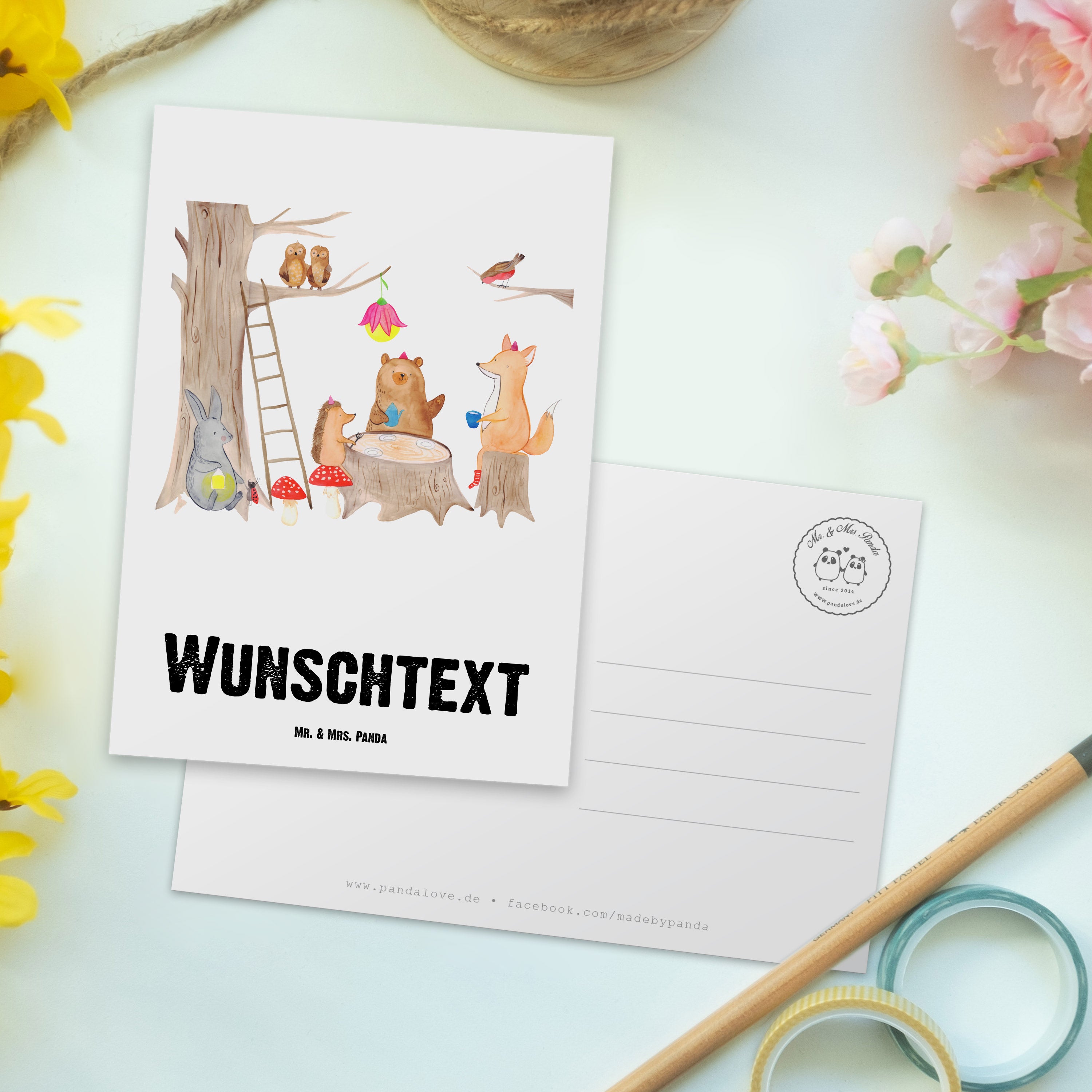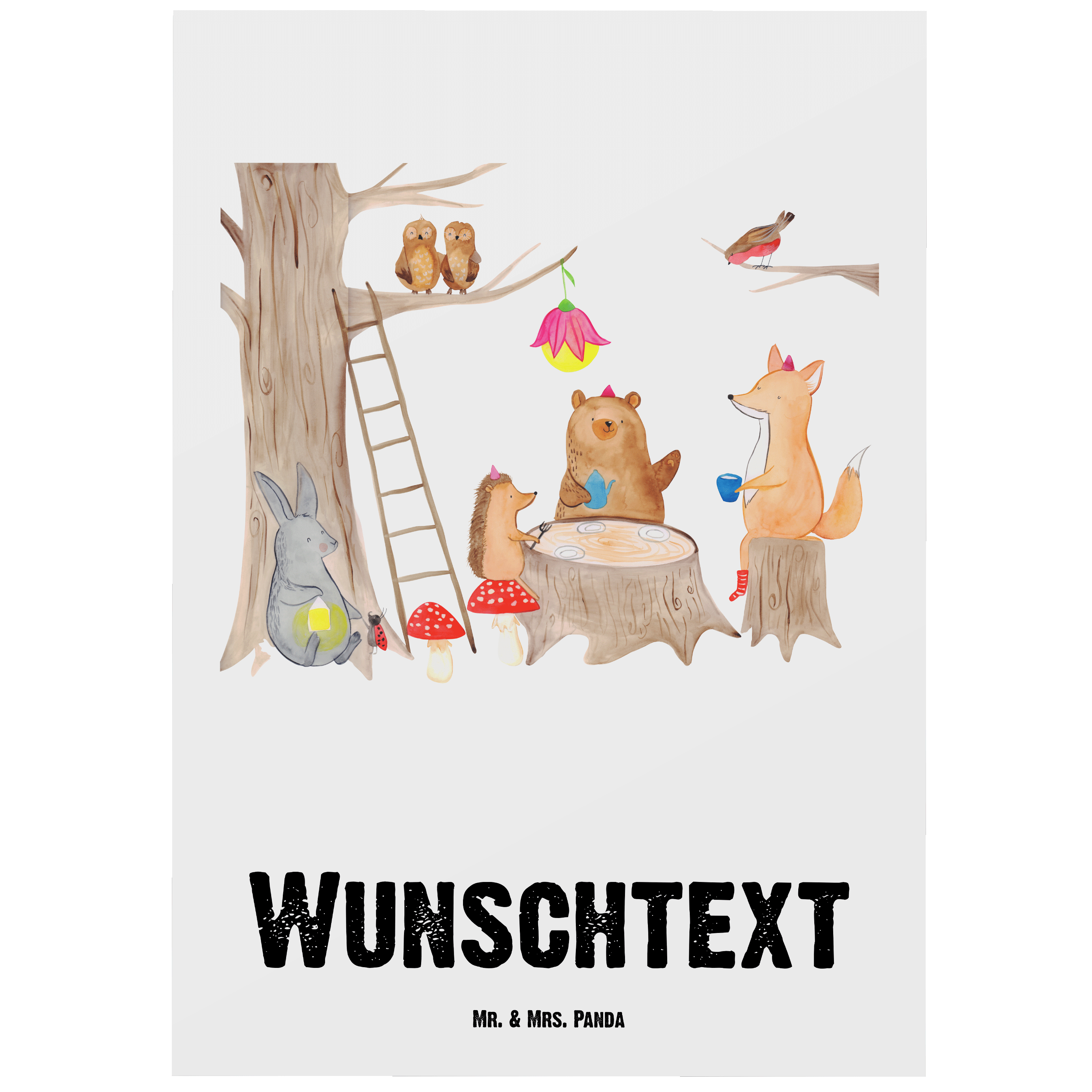 Personalisierte Postkarte Waldtiere Picknick
