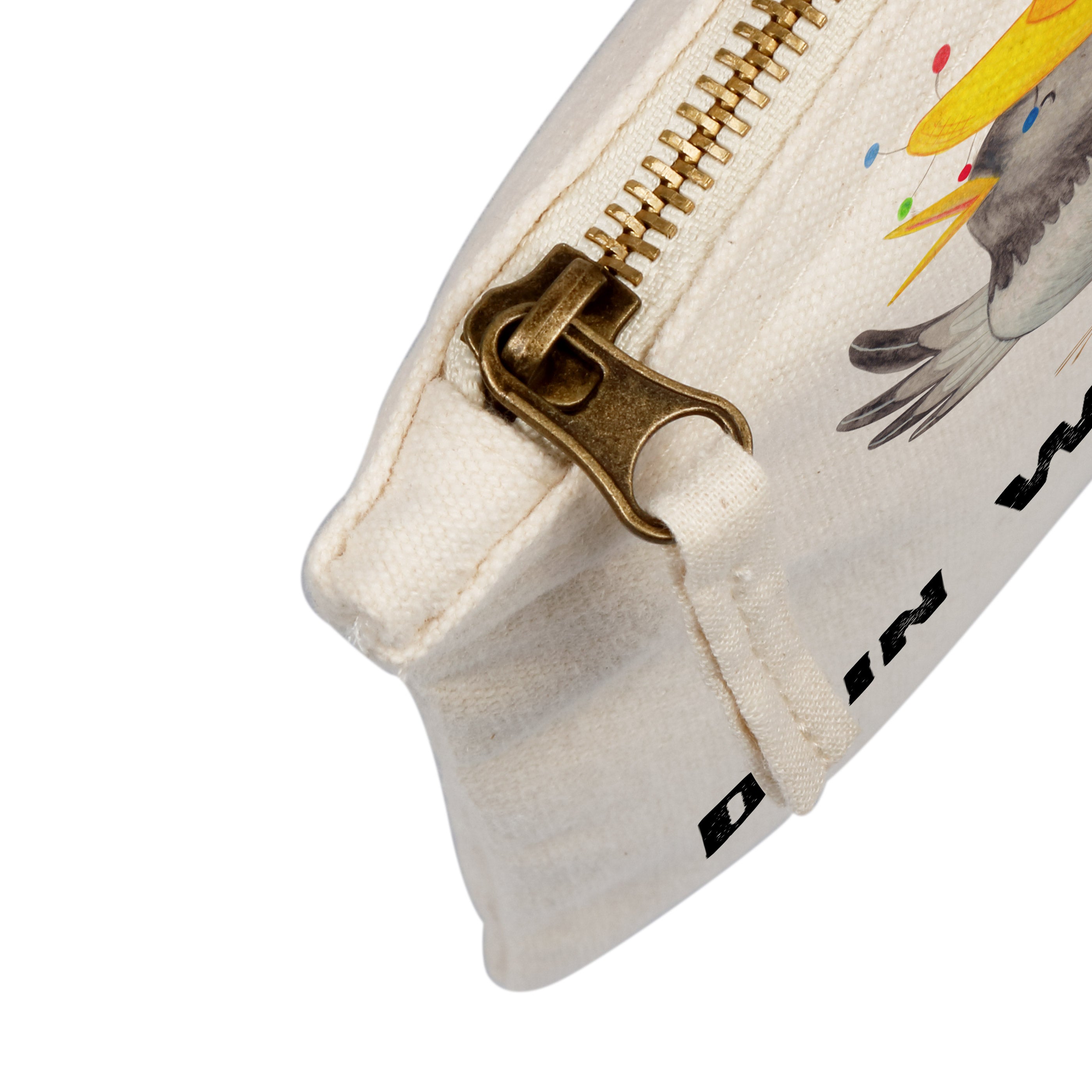 Eine wunderschöne Schminktasche von Mr. & Mrs. Panda mit Reißverschlussfach. Diese Kosmetiktasche oder Kosmetikbeutel ist aus 100% Baumwolle und bedruckt mit unseren wunderschönen handgezeichneten Motiven. Hol dir dieses einzigartige Etui direkt nach Hause - du kannst die Tasche auch perfekt als Stiftemäppchen, Federmappe, Schlamper oder Etui verwenden.