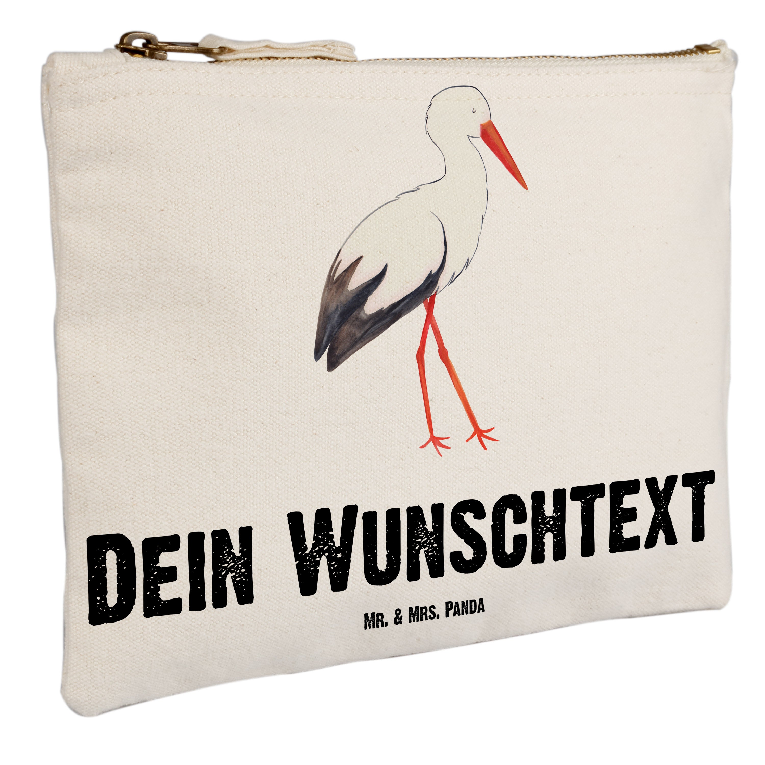 Personalisierte Schminktasche Storch - Größe S Klein