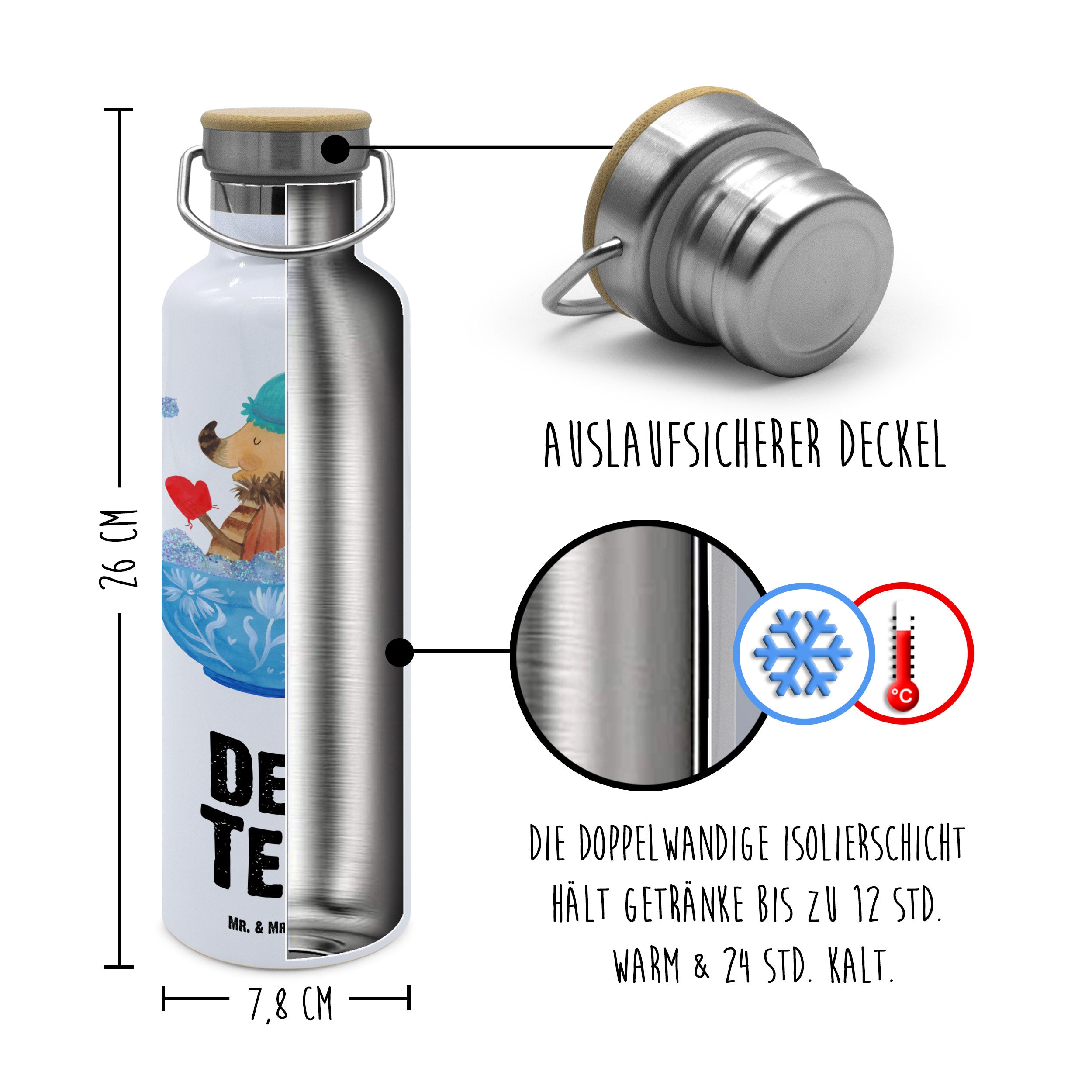 Die Isolierflasche sorgt dank Doppelwand-Isolierung dafür, dass heiße Getränke nicht an Wärme verlieren und kalte Getränke eiskalt bleiben.