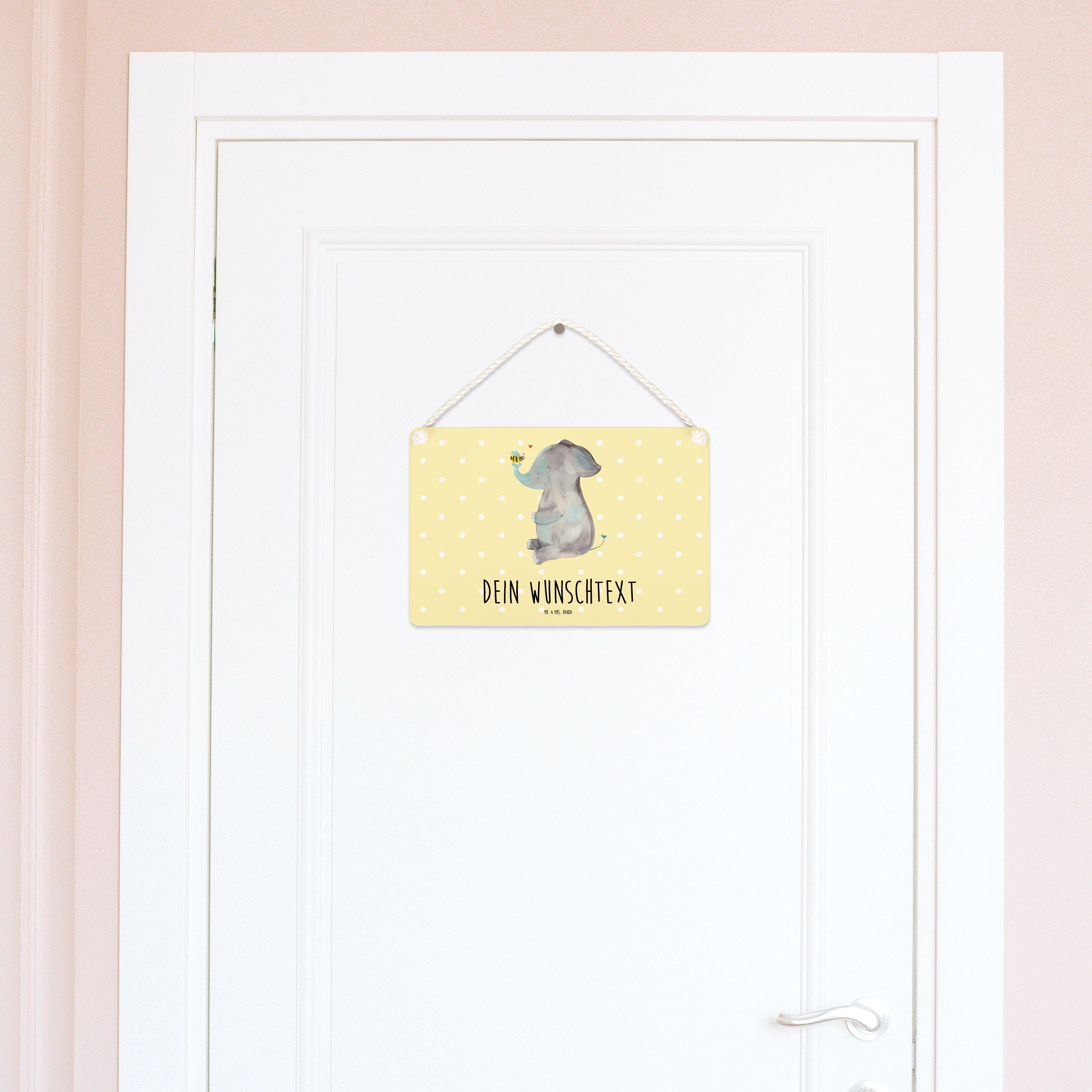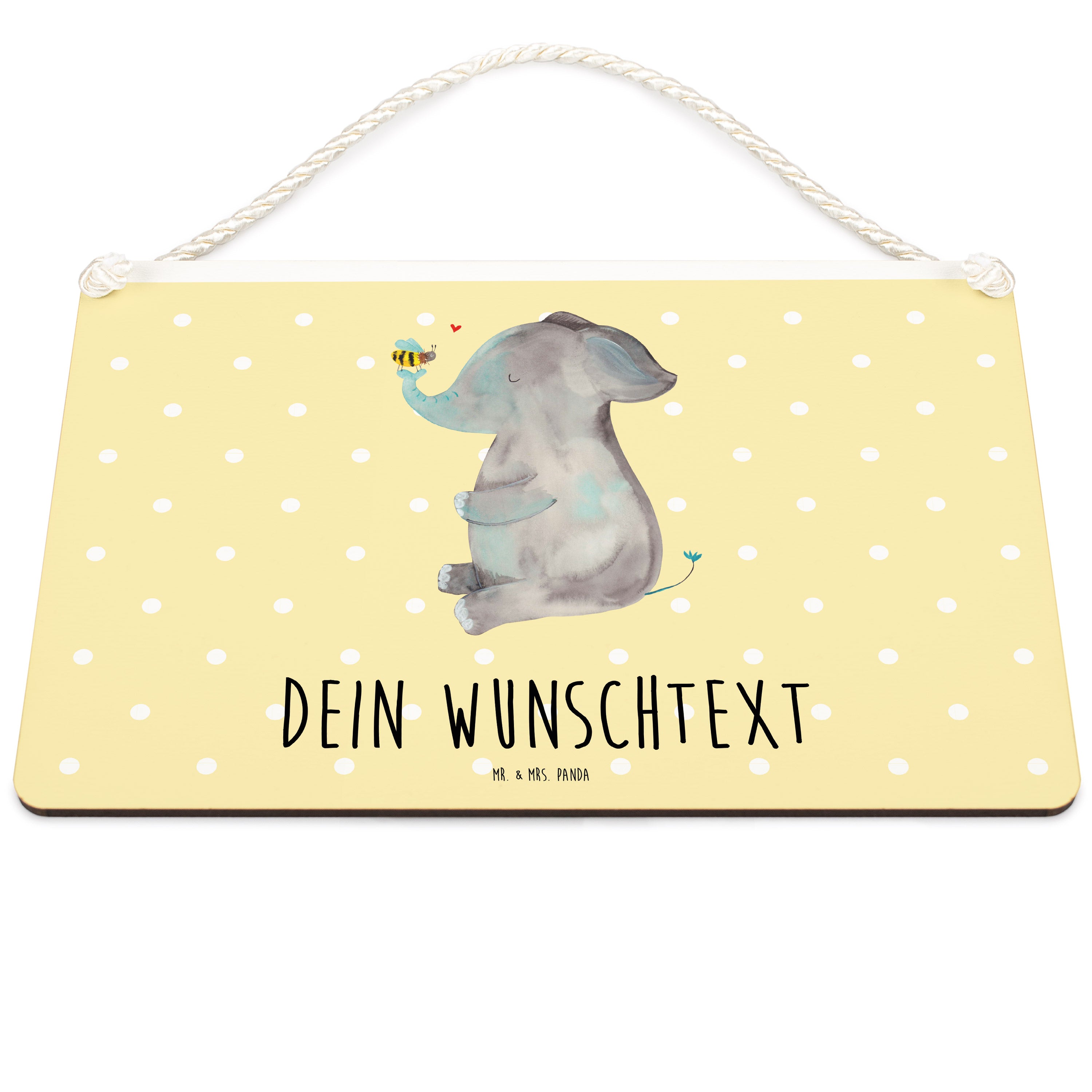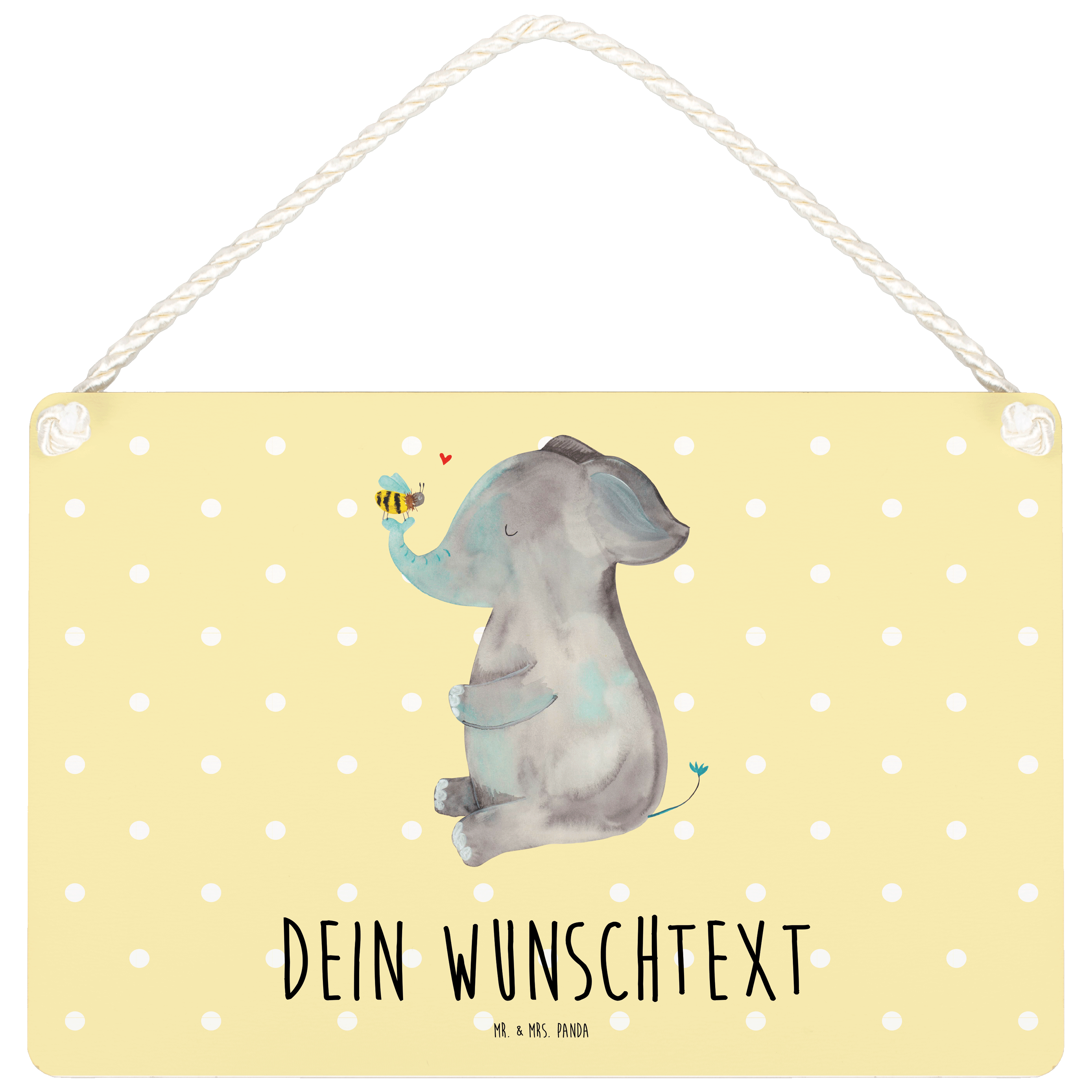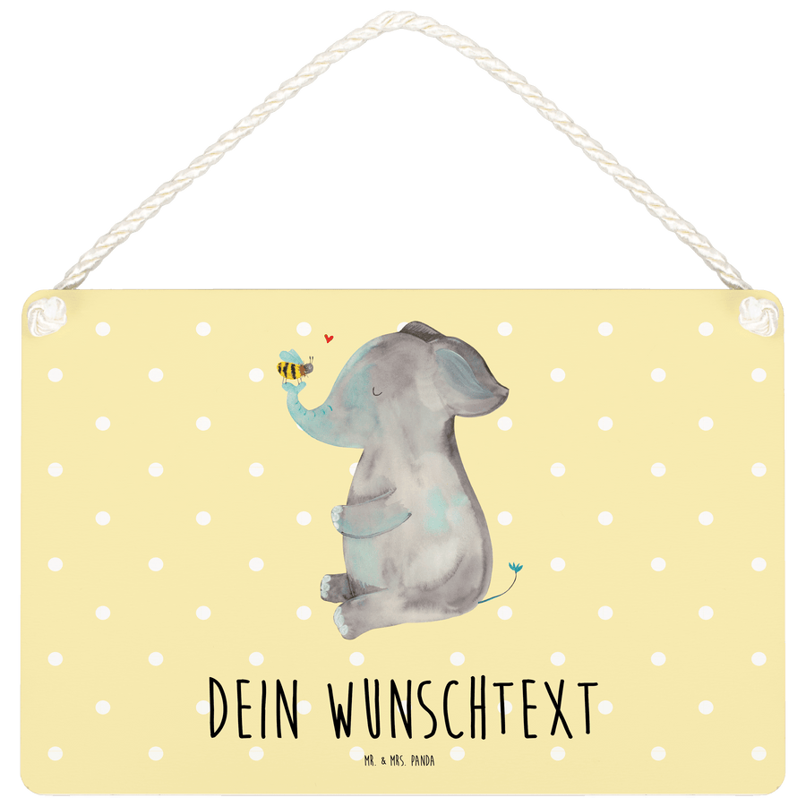 Personalisiertes Deko Schild Elefant & Biene - Gelb Pastell - DIN A6