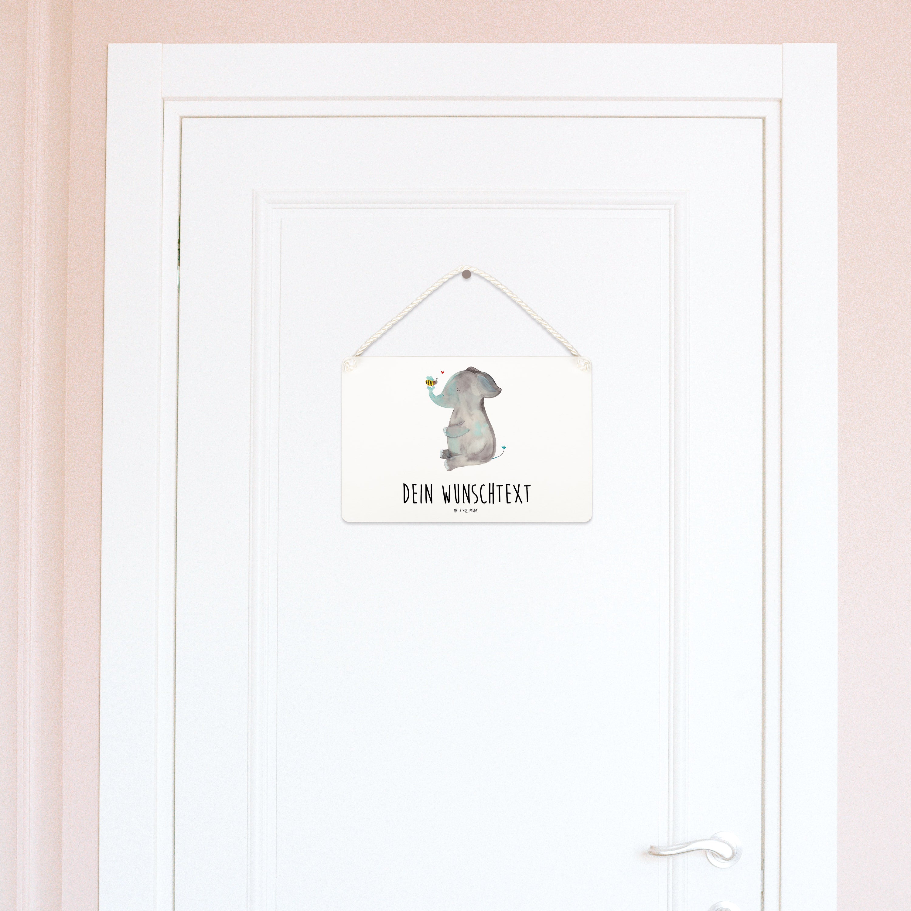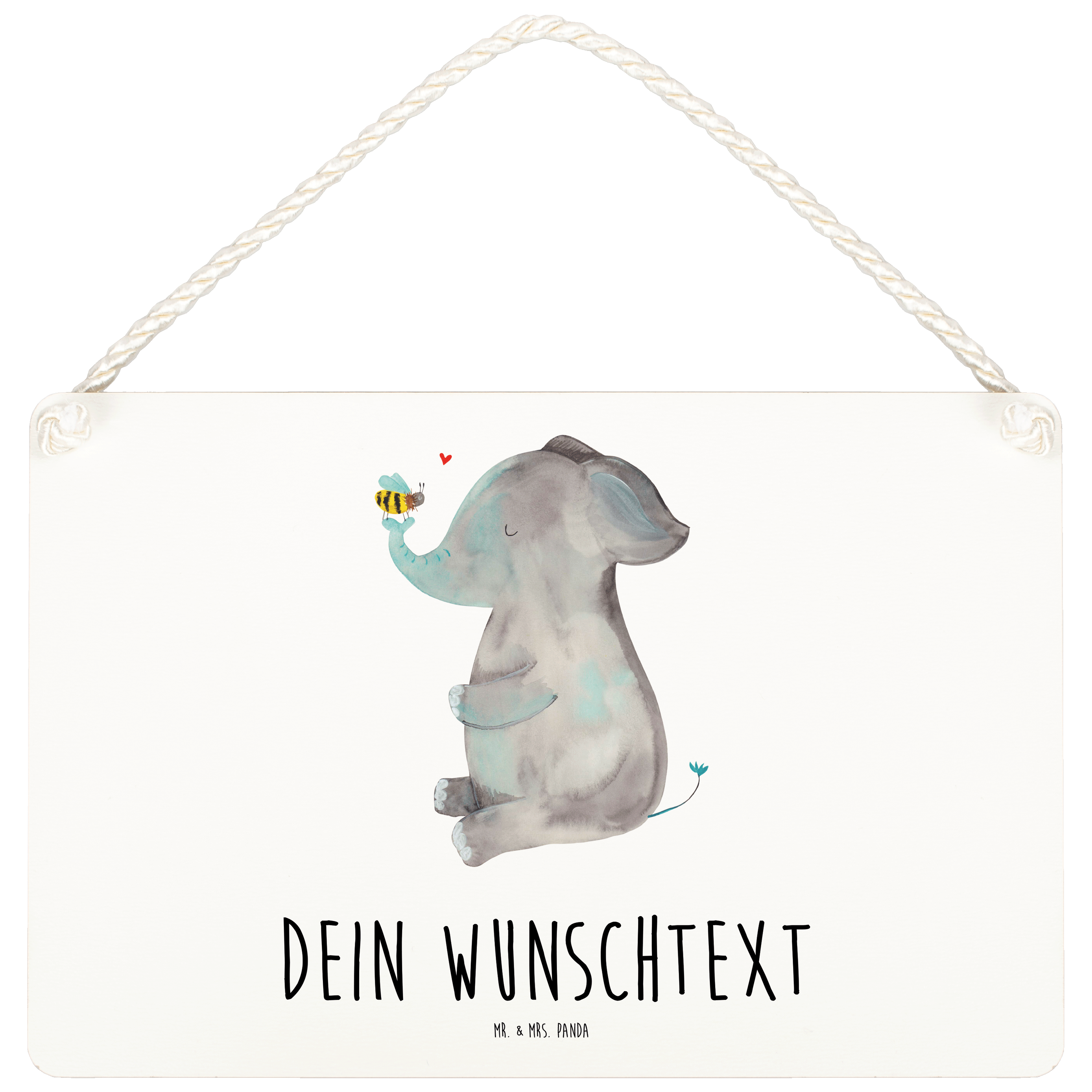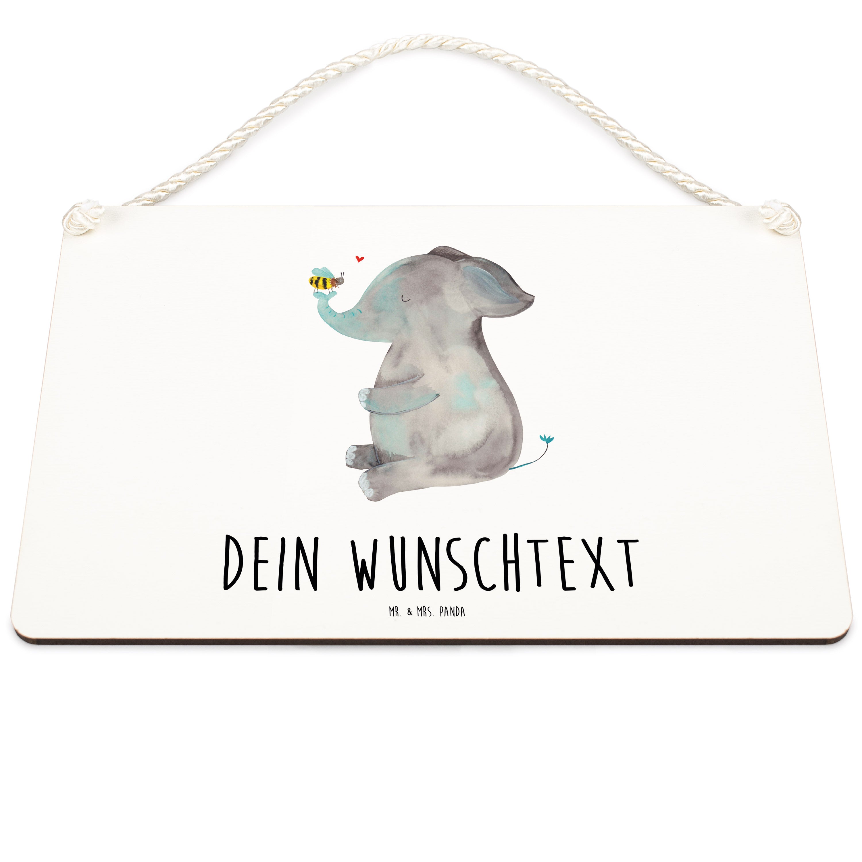 Personalisiertes Deko Schild Elefant & Biene - Gelb Pastell - DIN A6