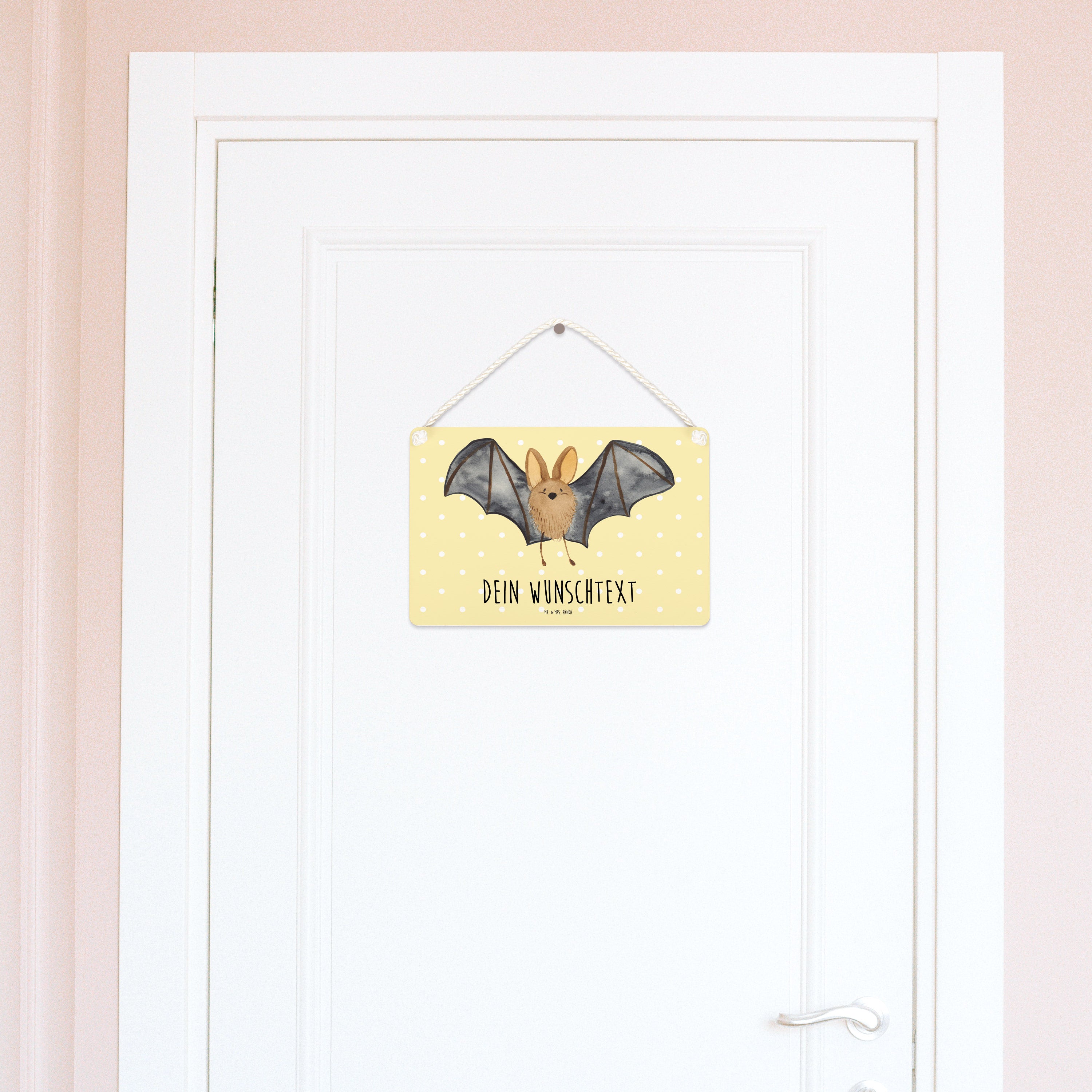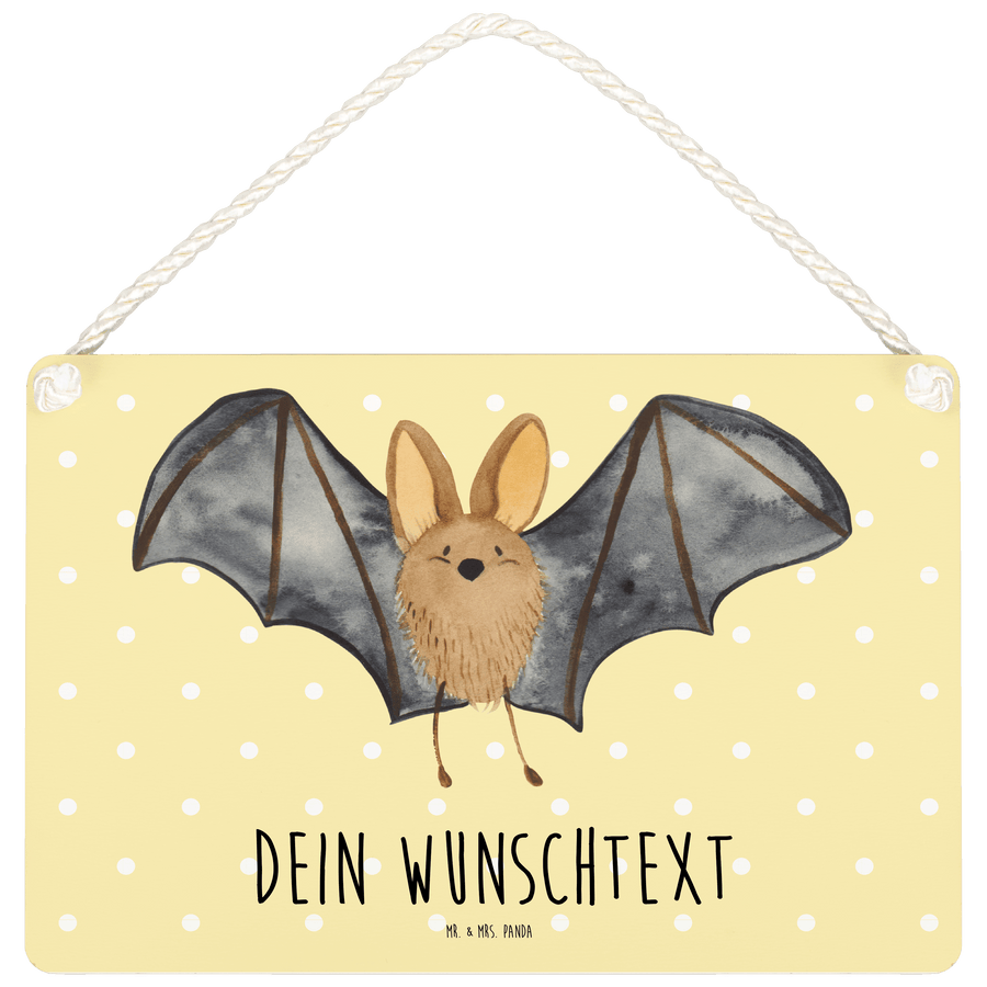 Personalisiertes Deko Schild Fledermaus Flügel - Gelb Pastell - DIN A4
