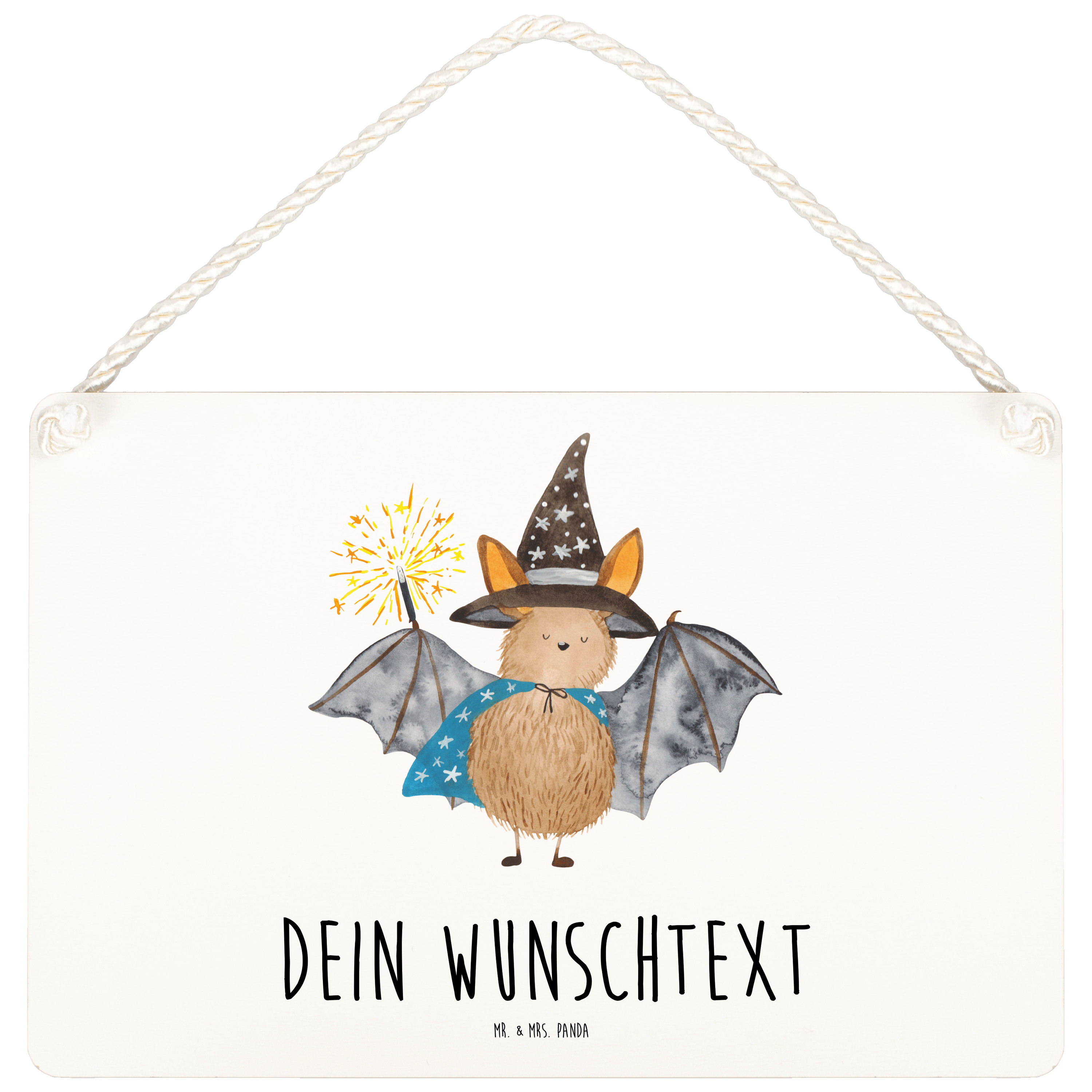 Personalisiertes Deko Schild Fledermaus Zauberer - Weiß - DIN A6