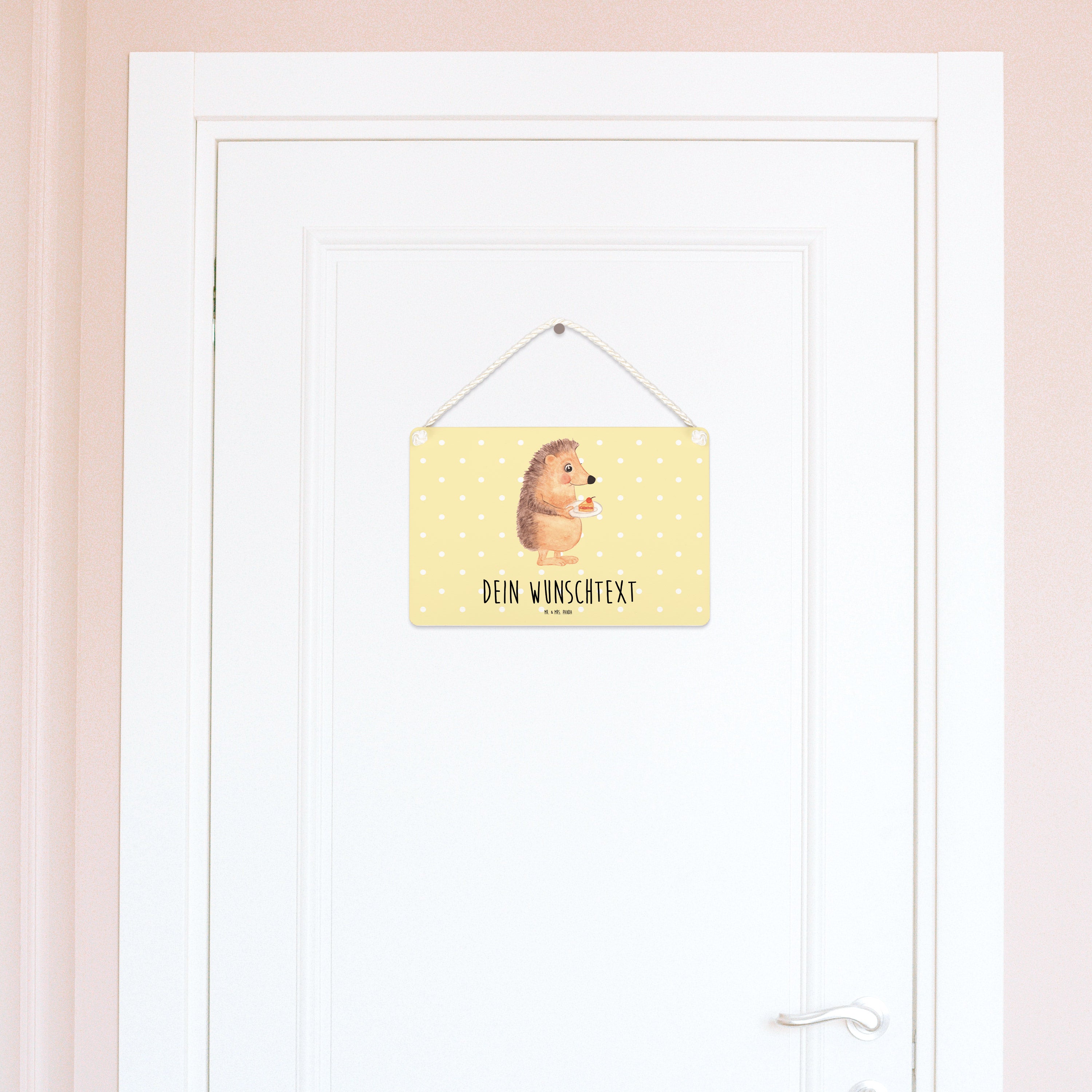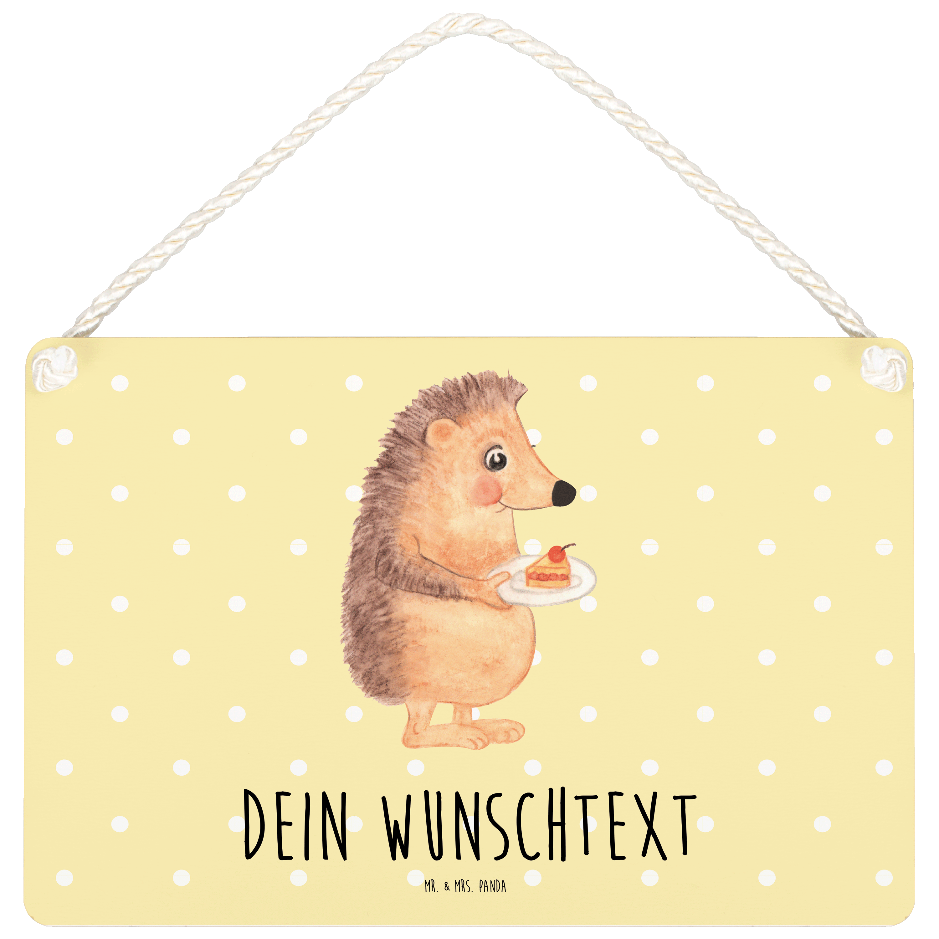 Personalisiertes Deko Schild Igel mit Kuchenstück - Gelb Pastell - DIN A5