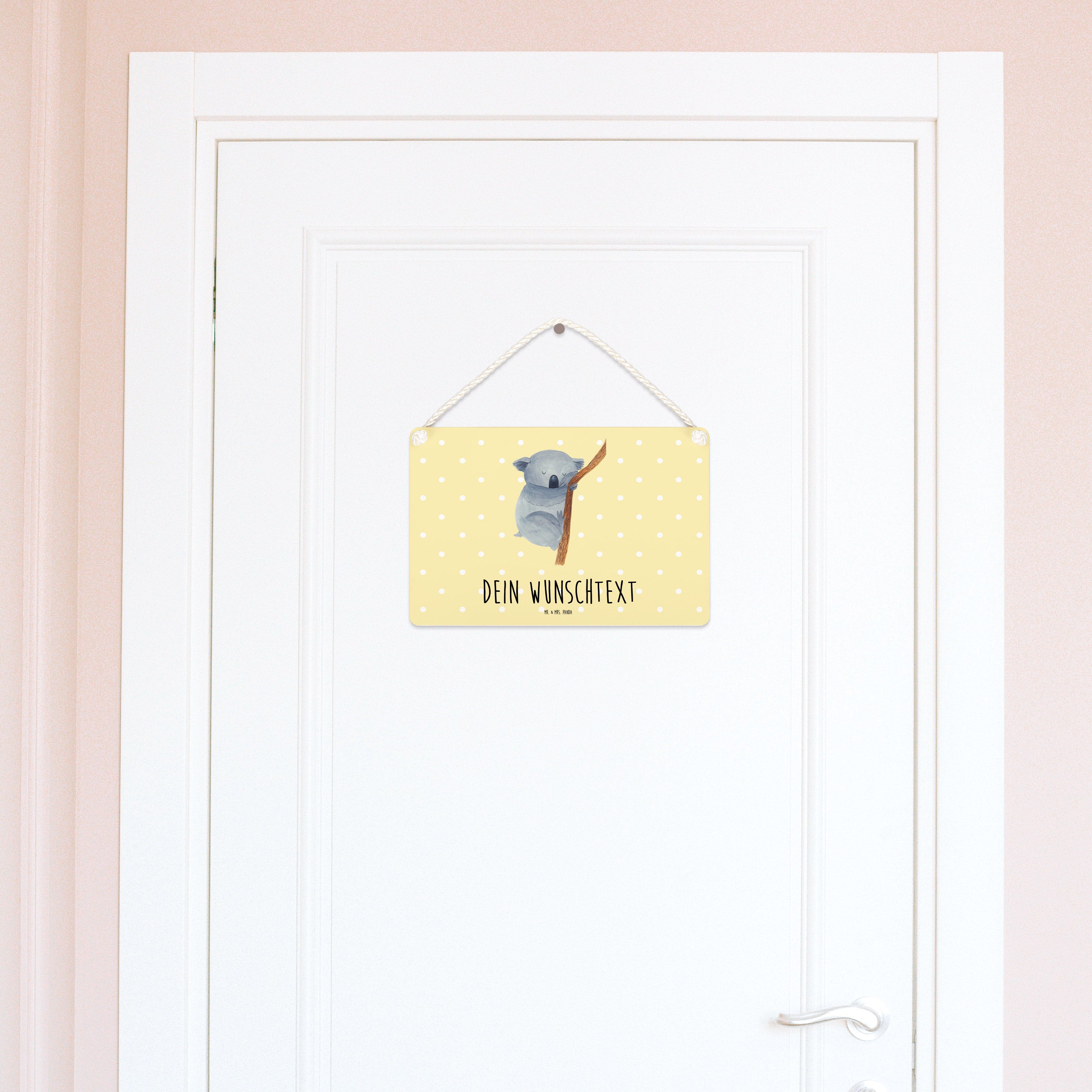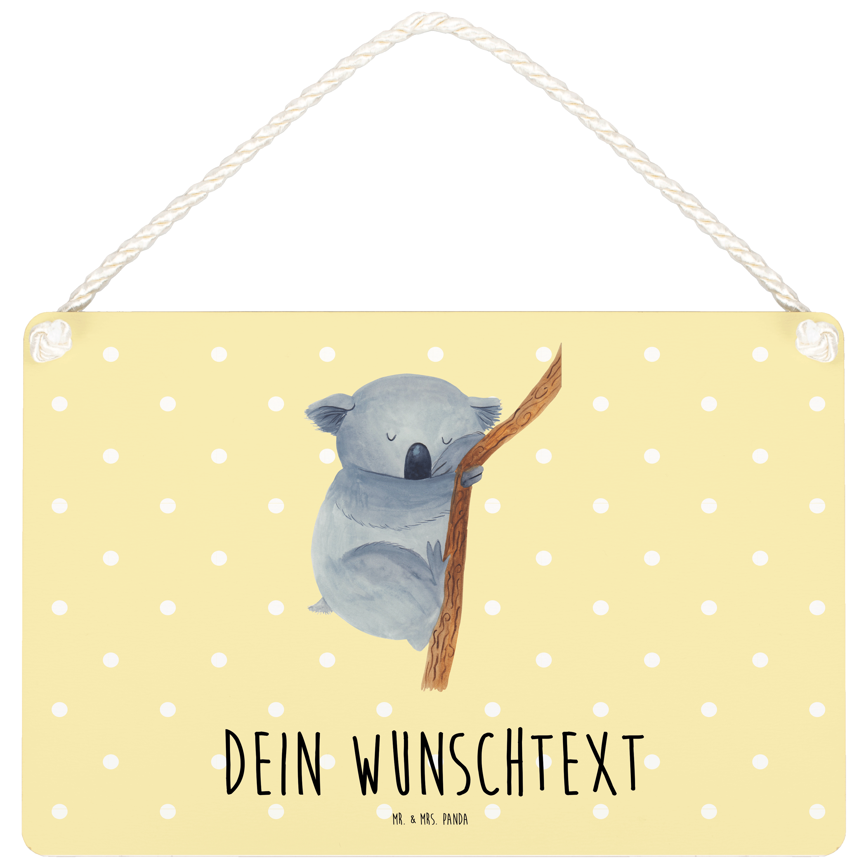 Personalisiertes Deko Schild Koalabär - Gelb Pastell - DIN A6