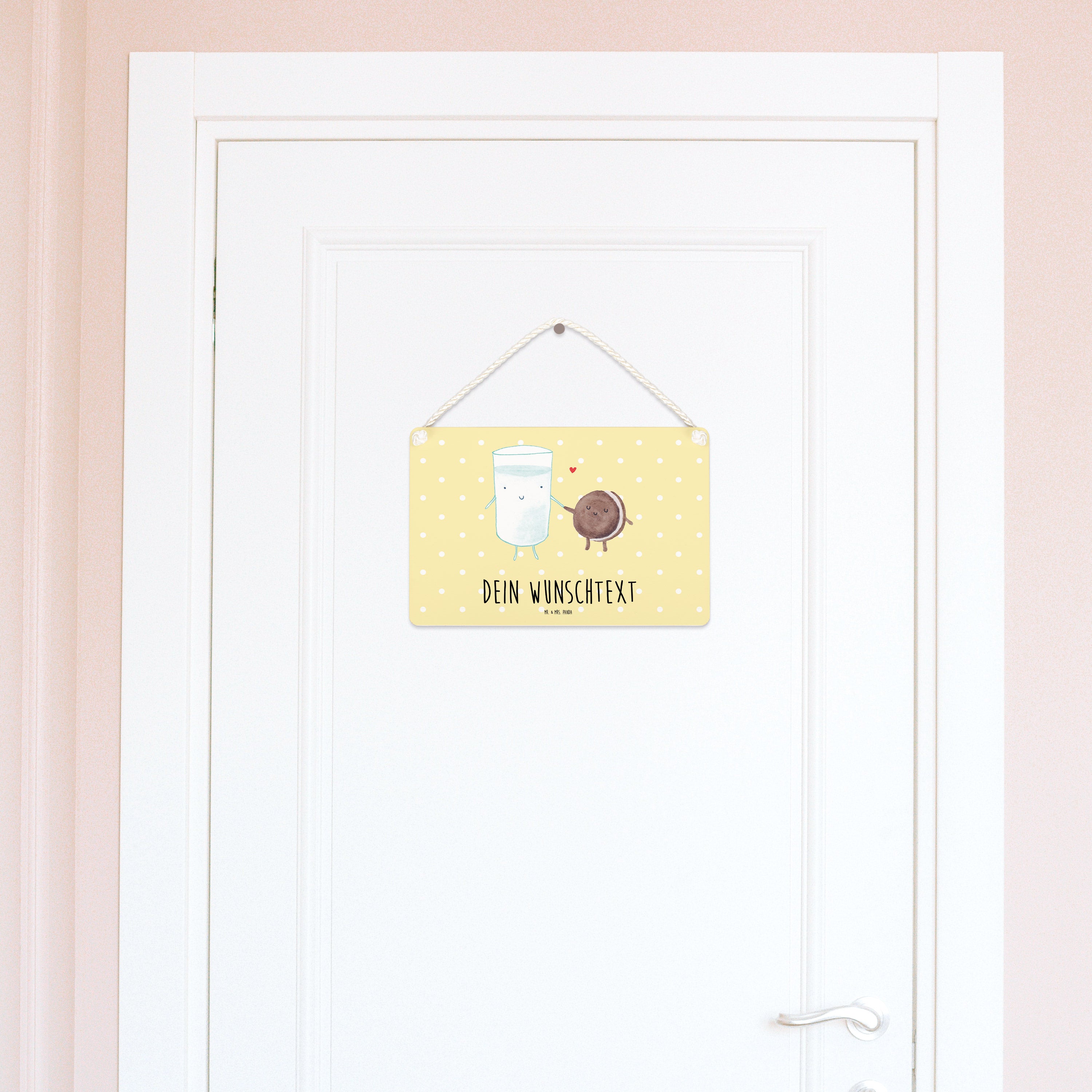 Personalisiertes Deko Schild Milch & Keks - Gelb Pastell - DIN A6