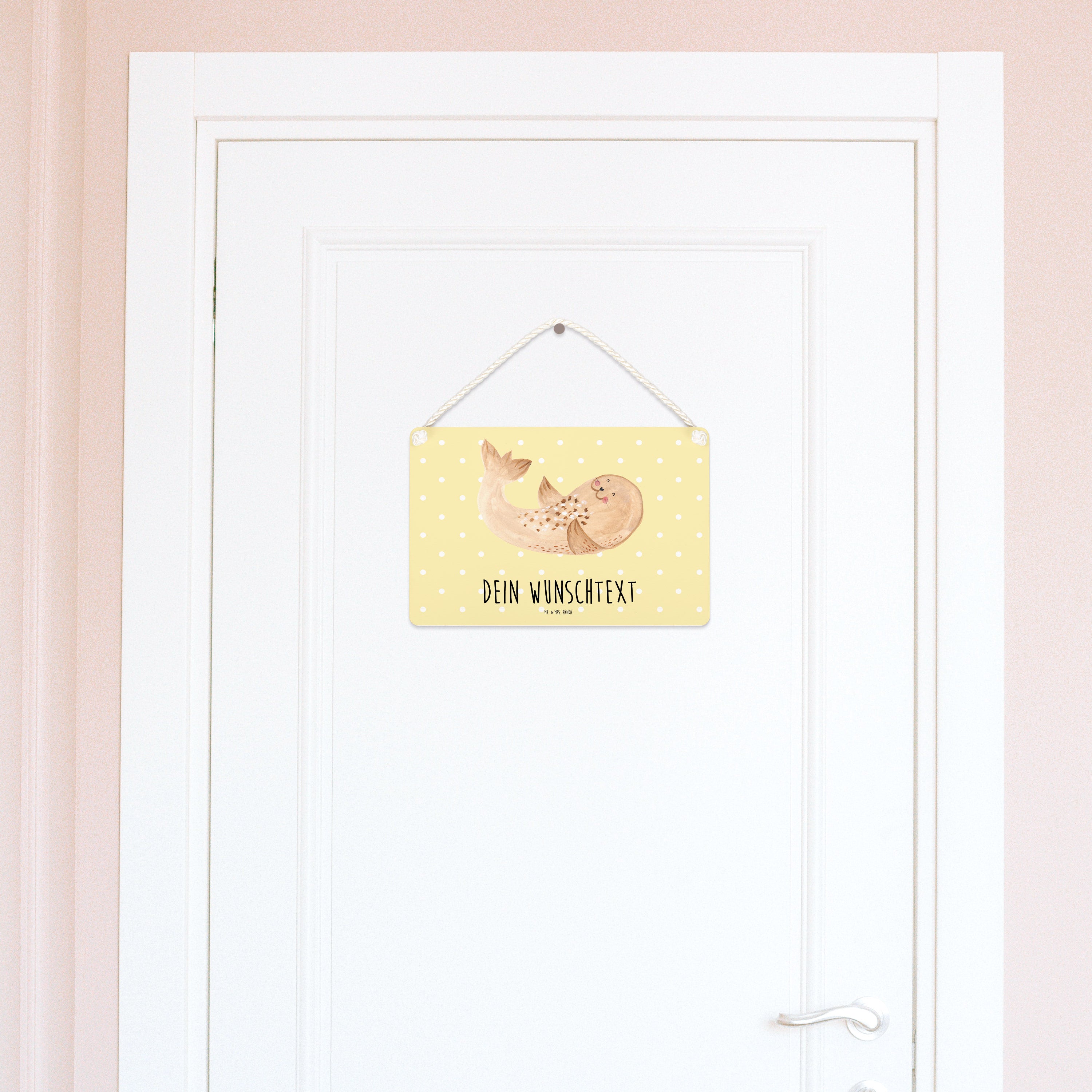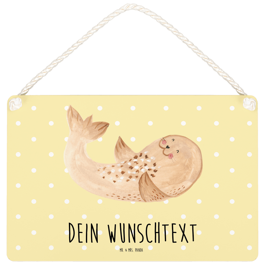 Personalisiertes Deko Schild Robbe liegend - Gelb Pastell - DIN A6