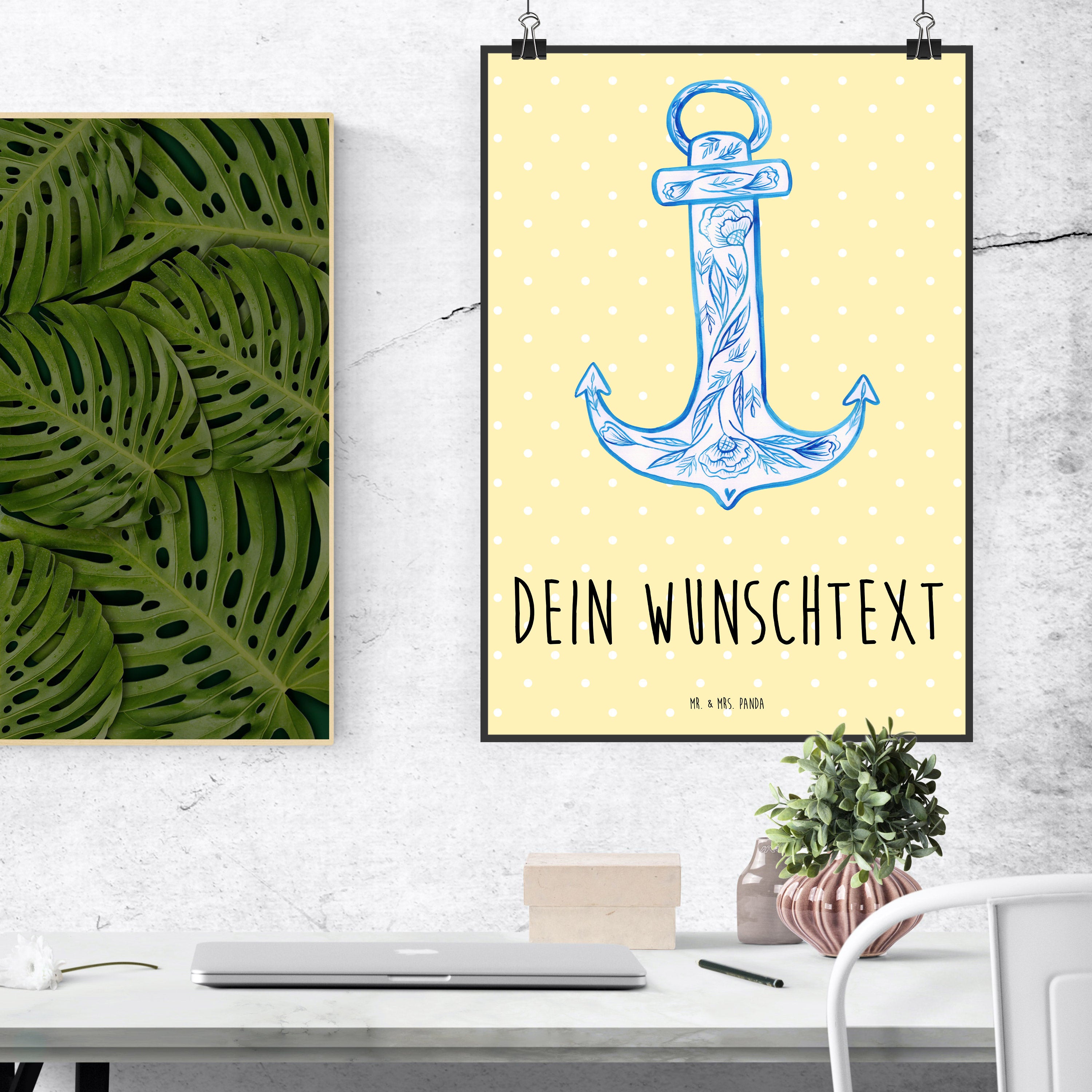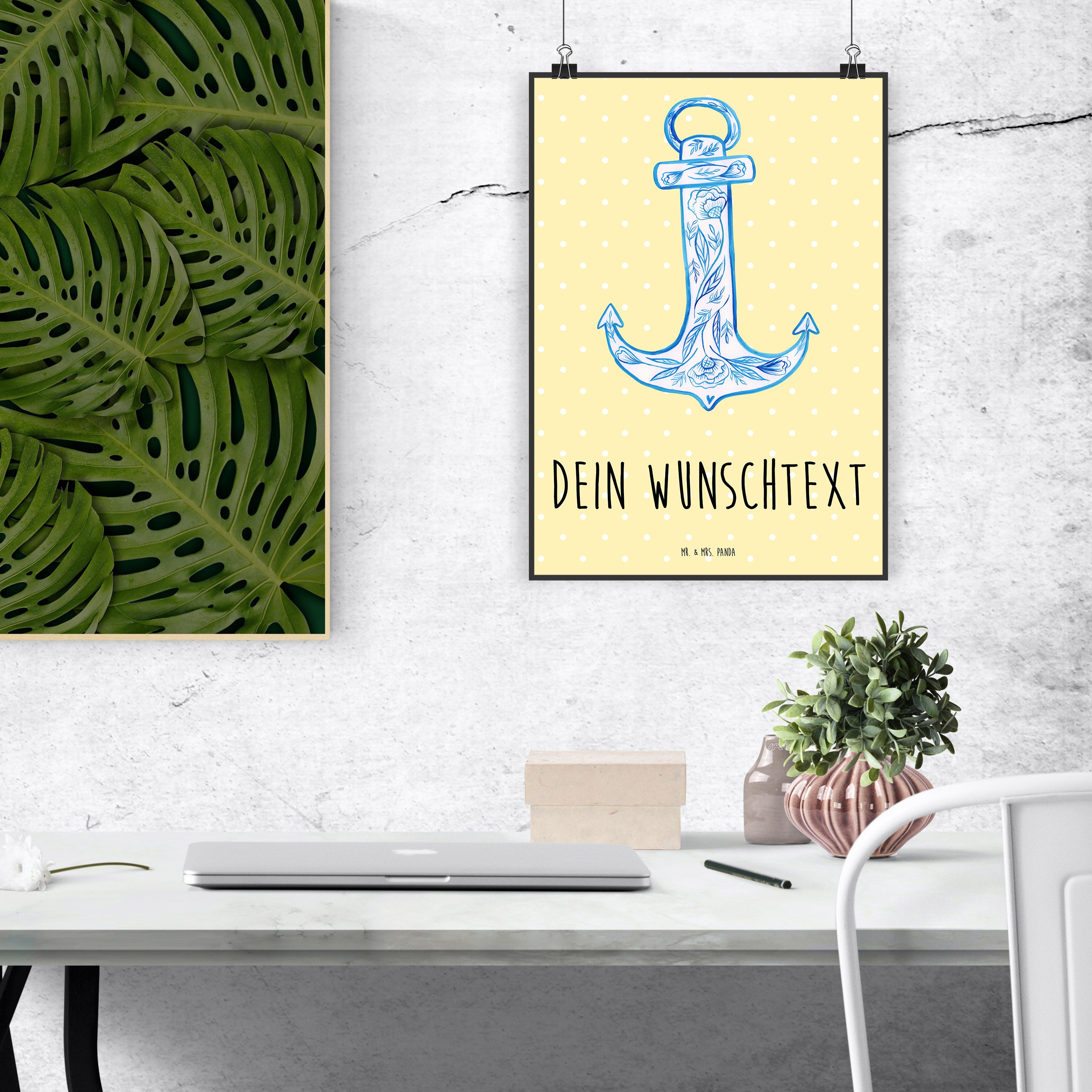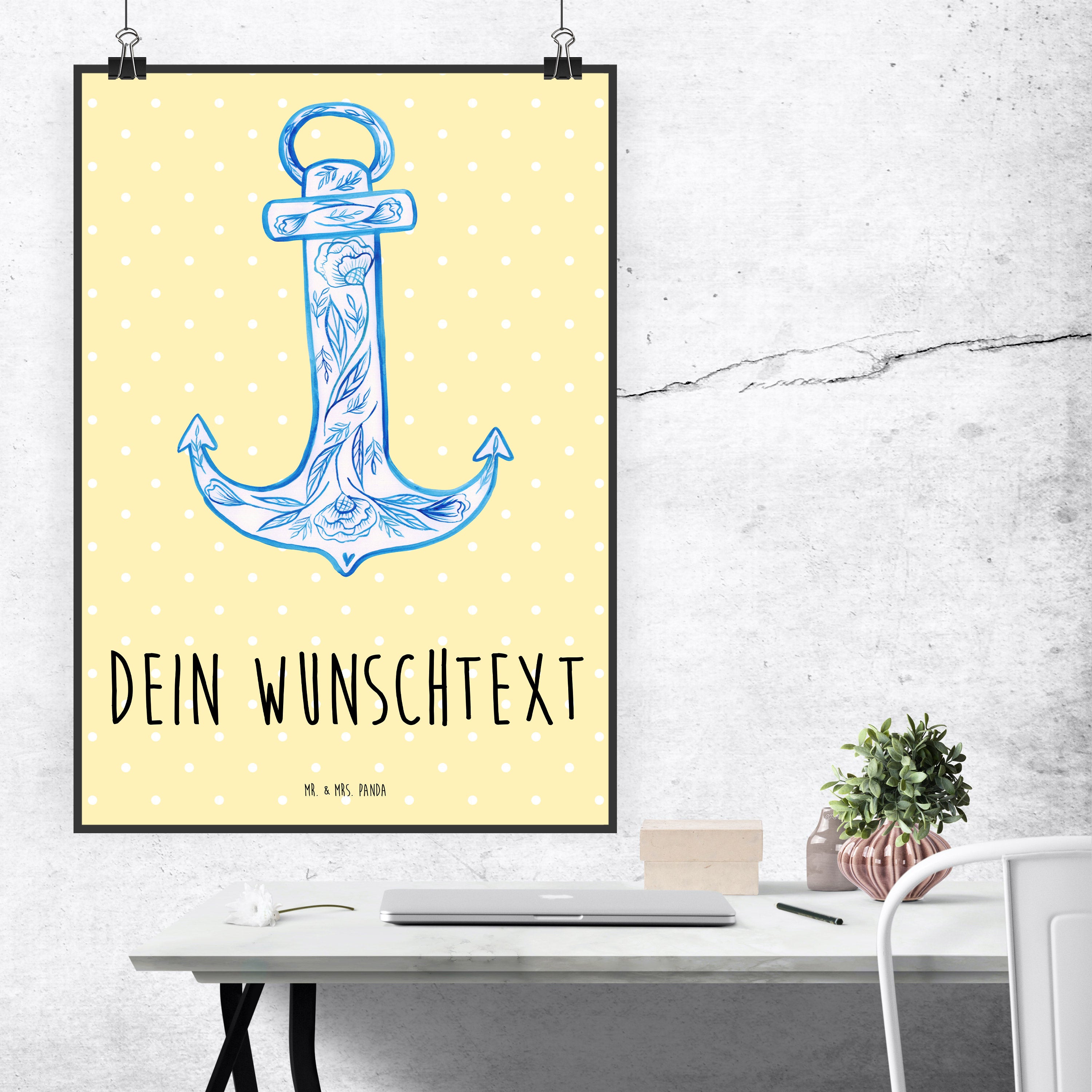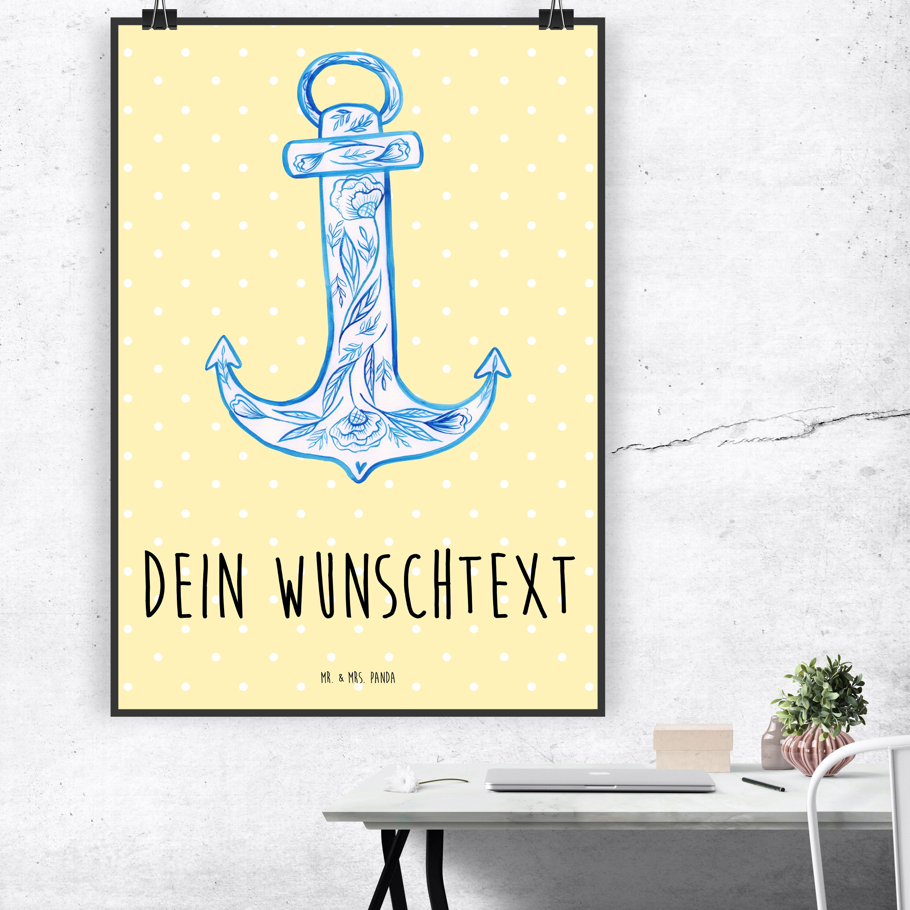 Personalisiertes Poster Anker Blau - Gelb Pastell - DIN A5
