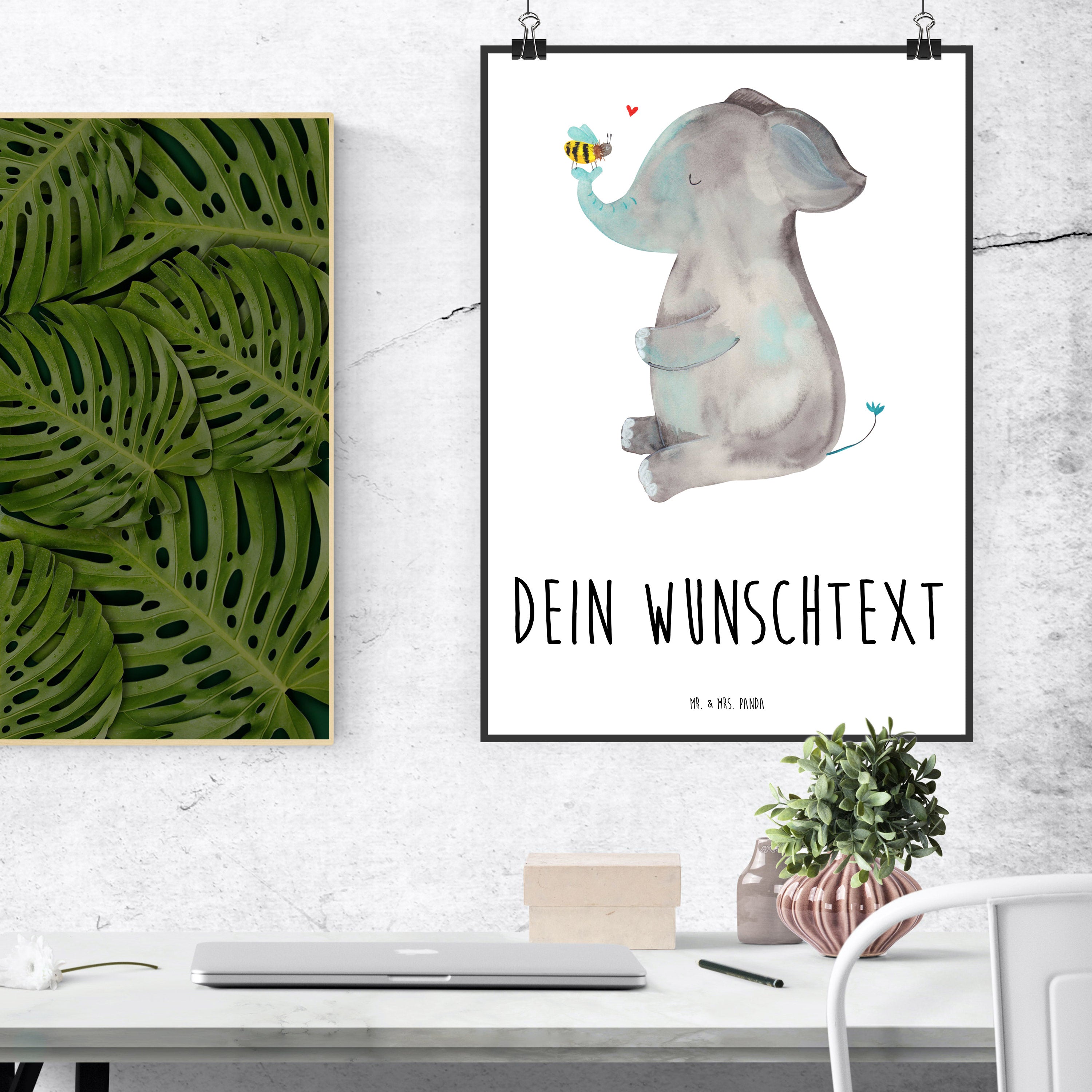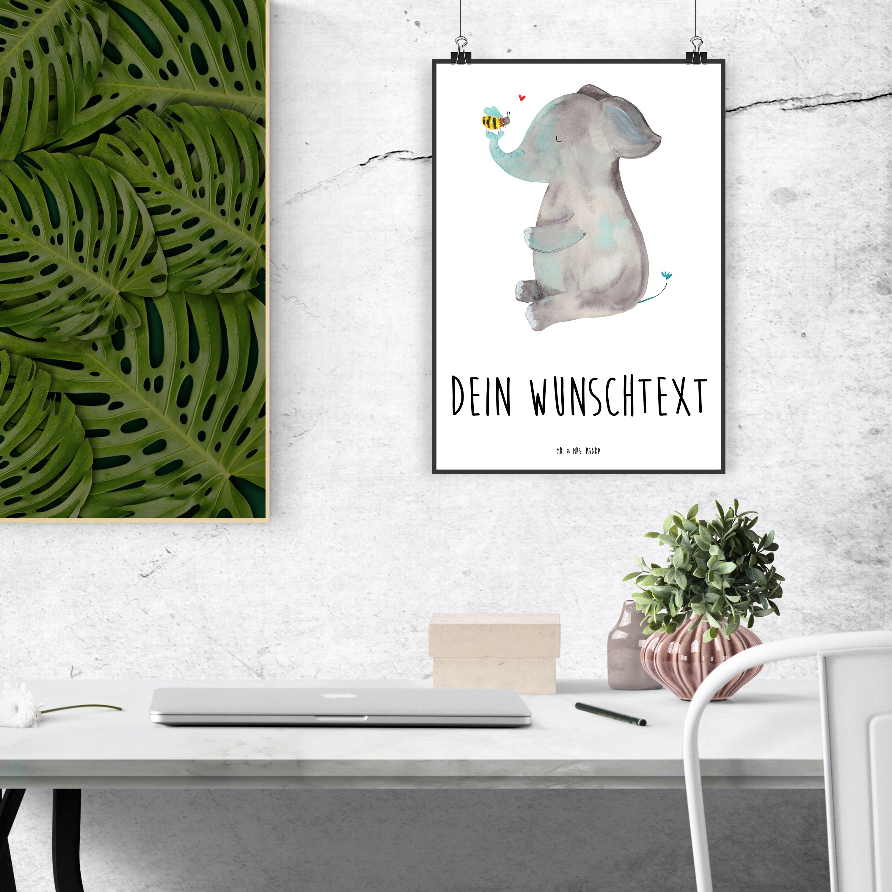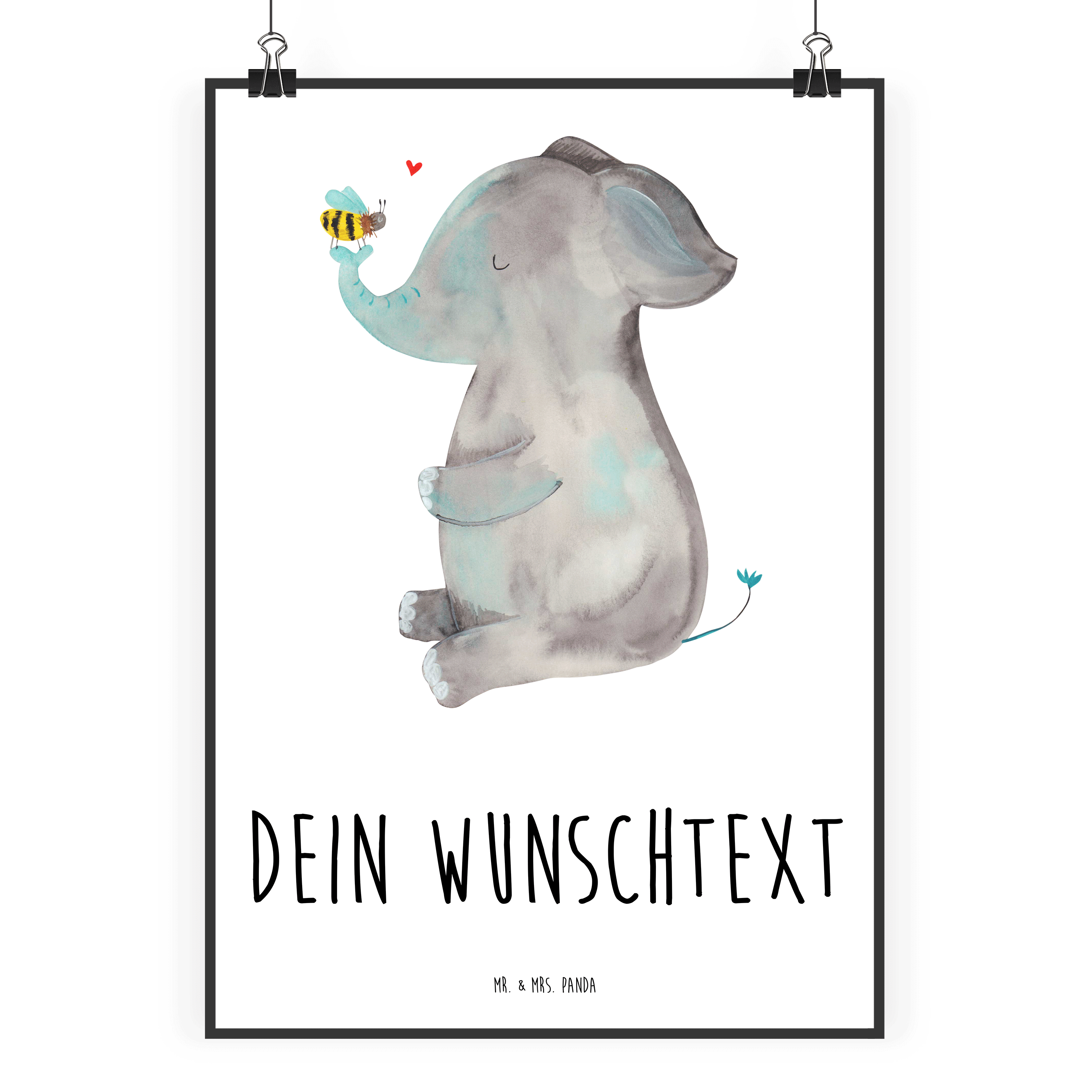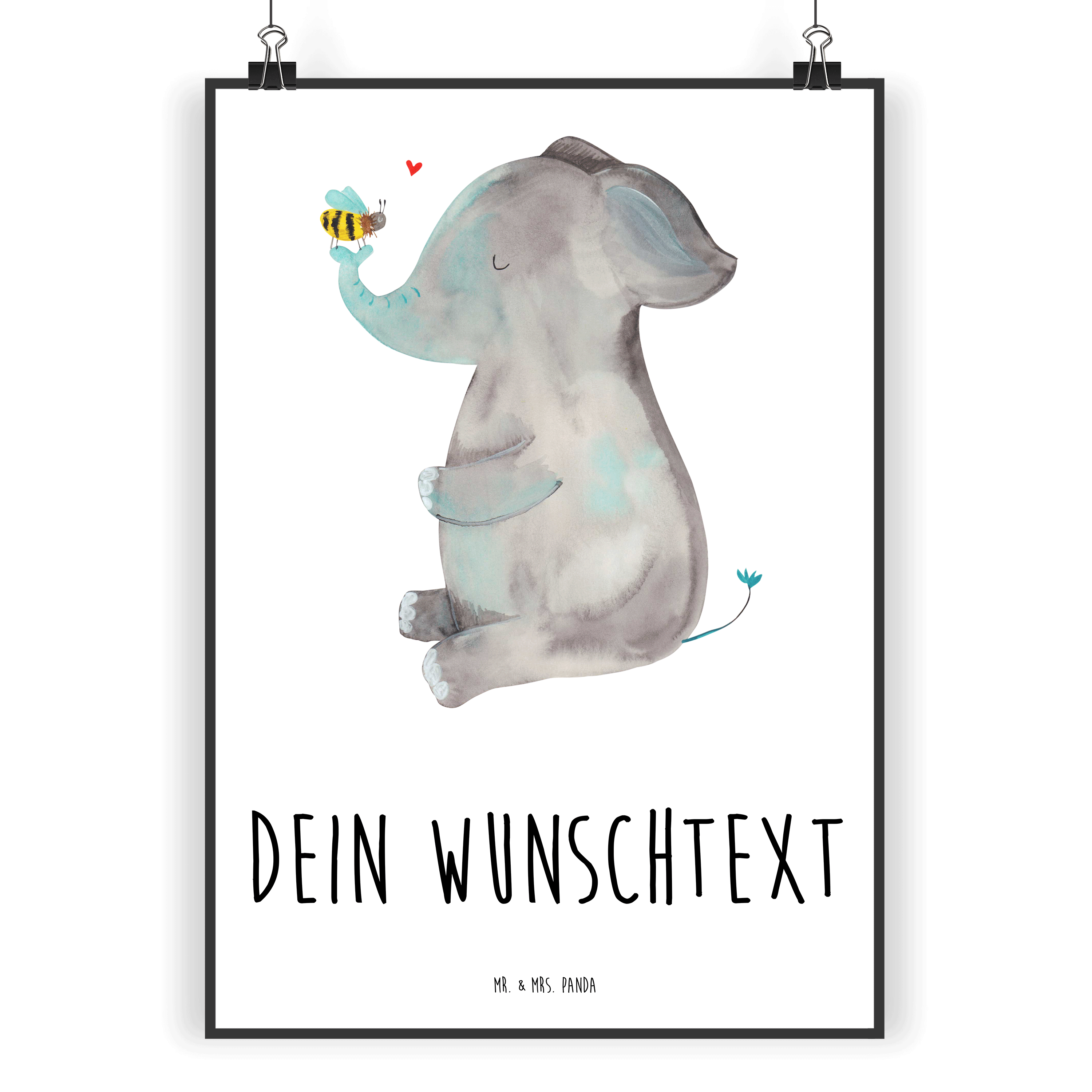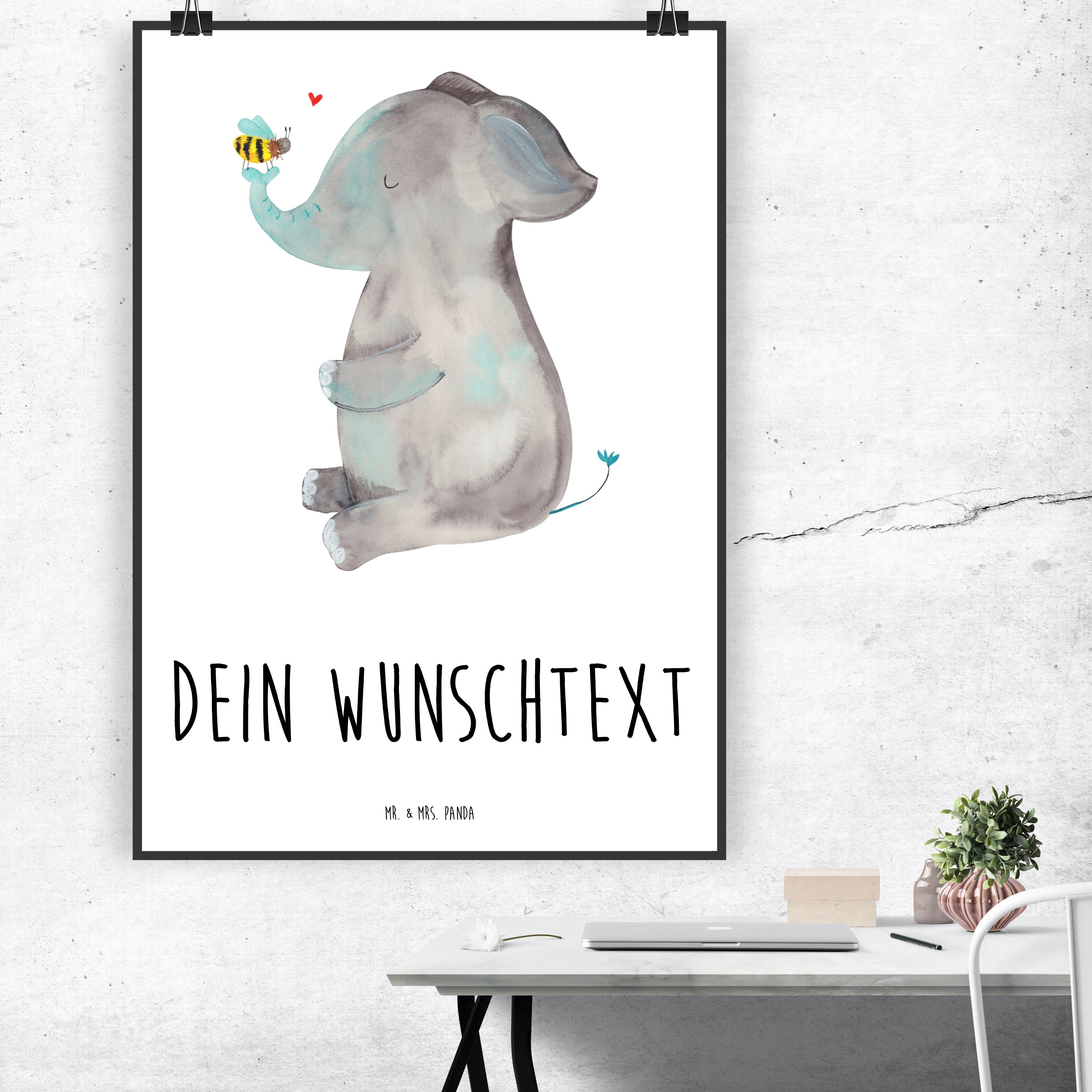 Personalisiertes Poster Elefant & Biene - Weiß - DIN A5
