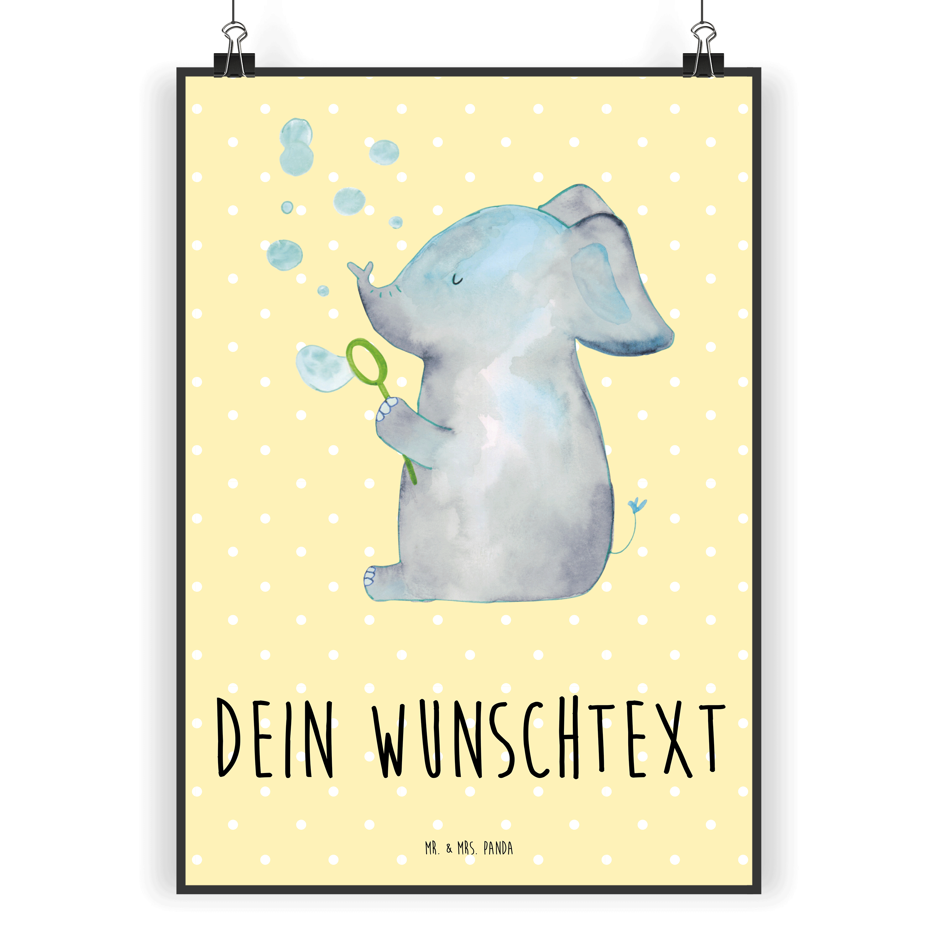 Personalisiertes Poster Elefant Seifenblasen - Gelb Pastell - DIN A5