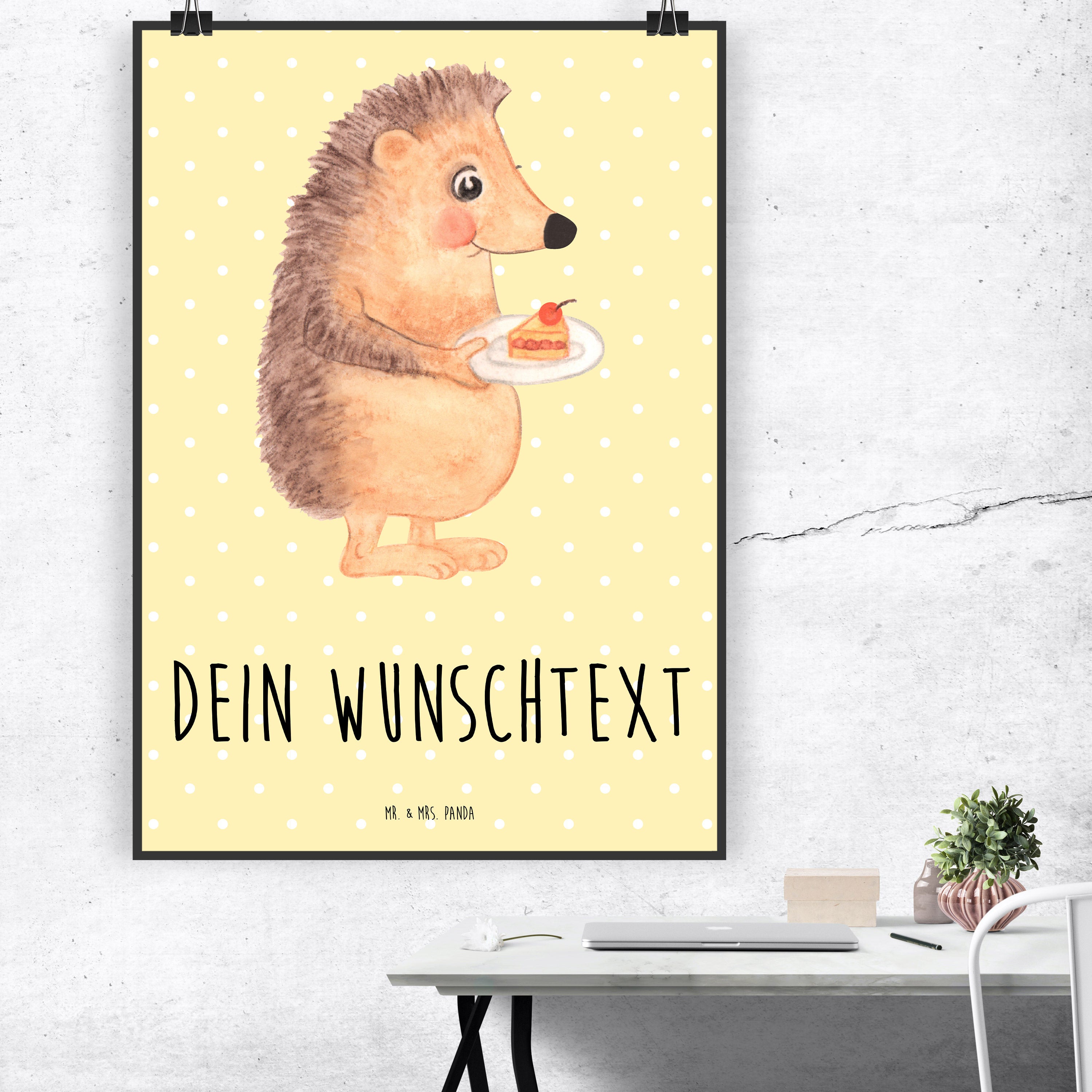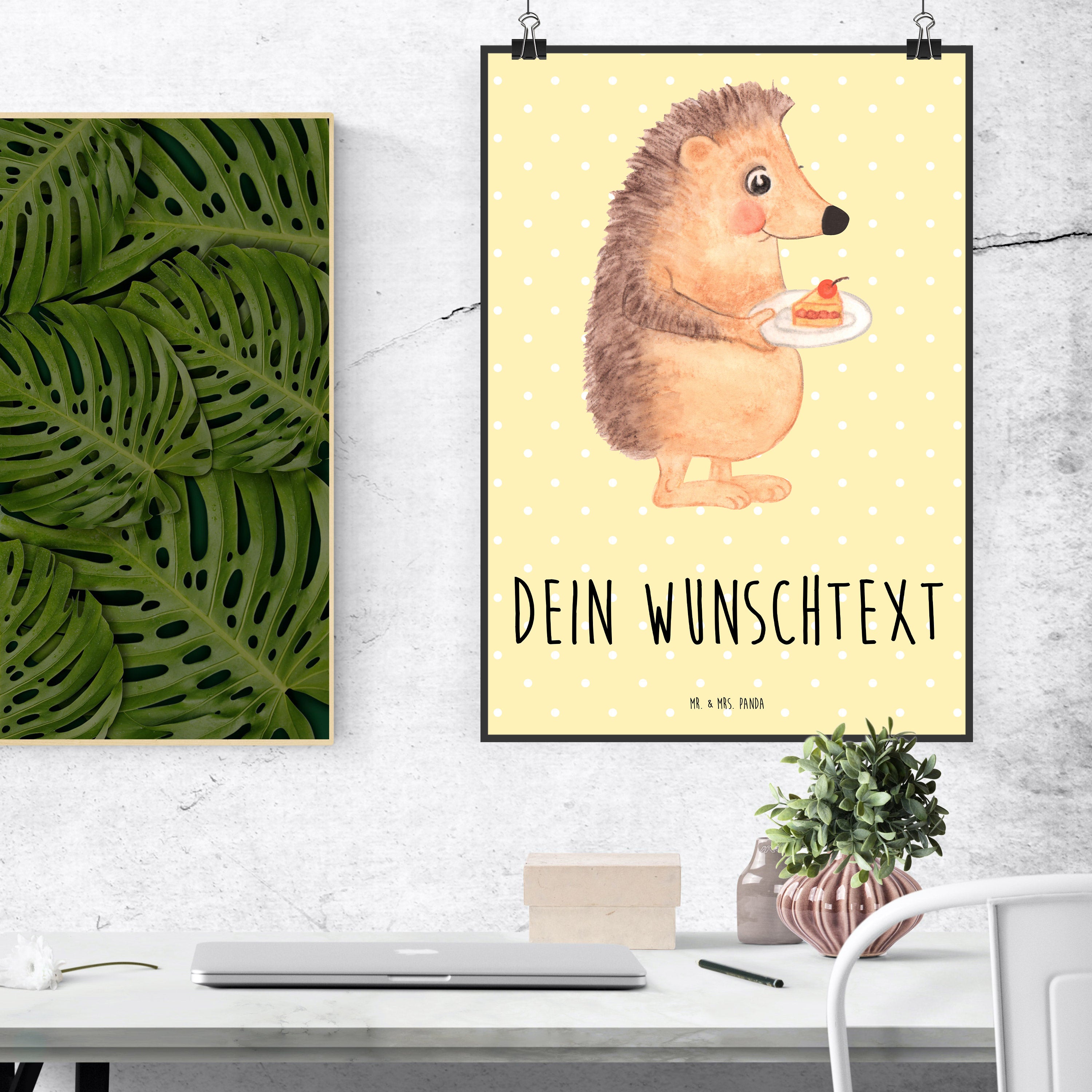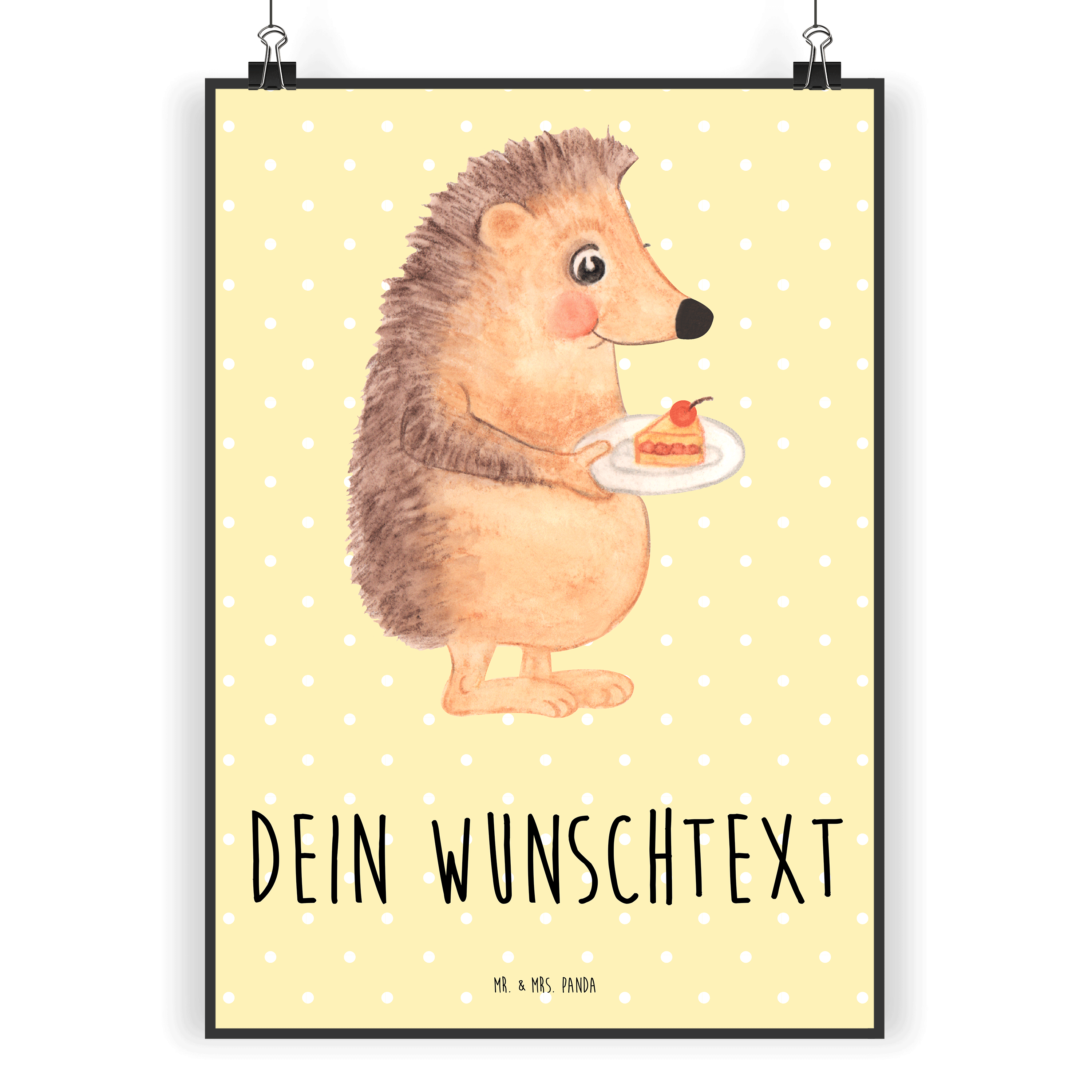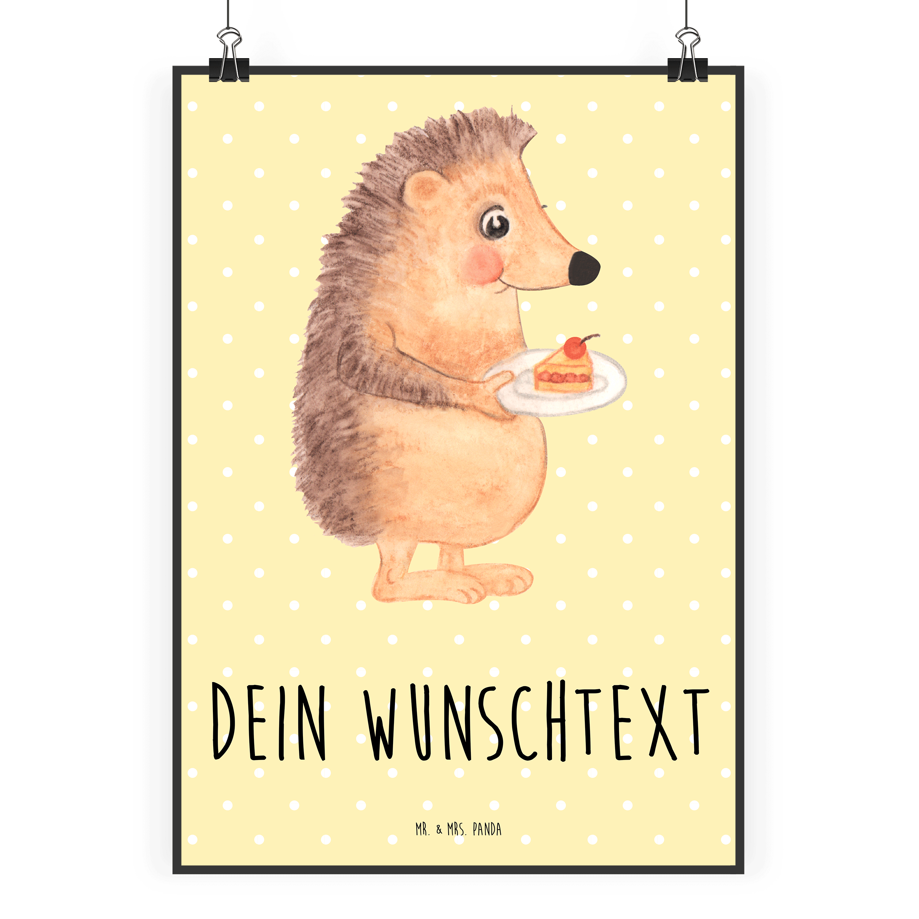 Personalisiertes Poster Igel mit Kuchenstück - Gelb Pastell - DIN A5
