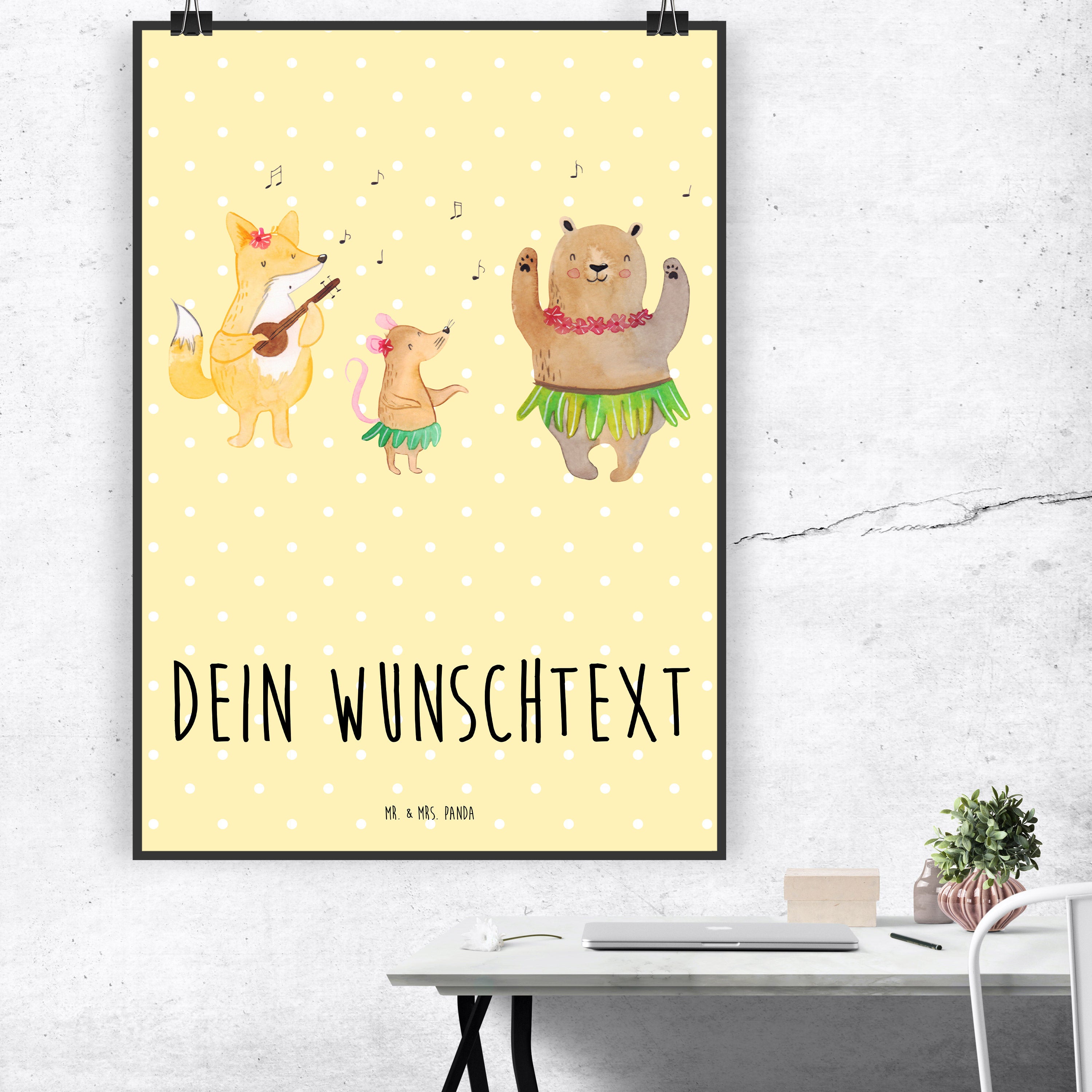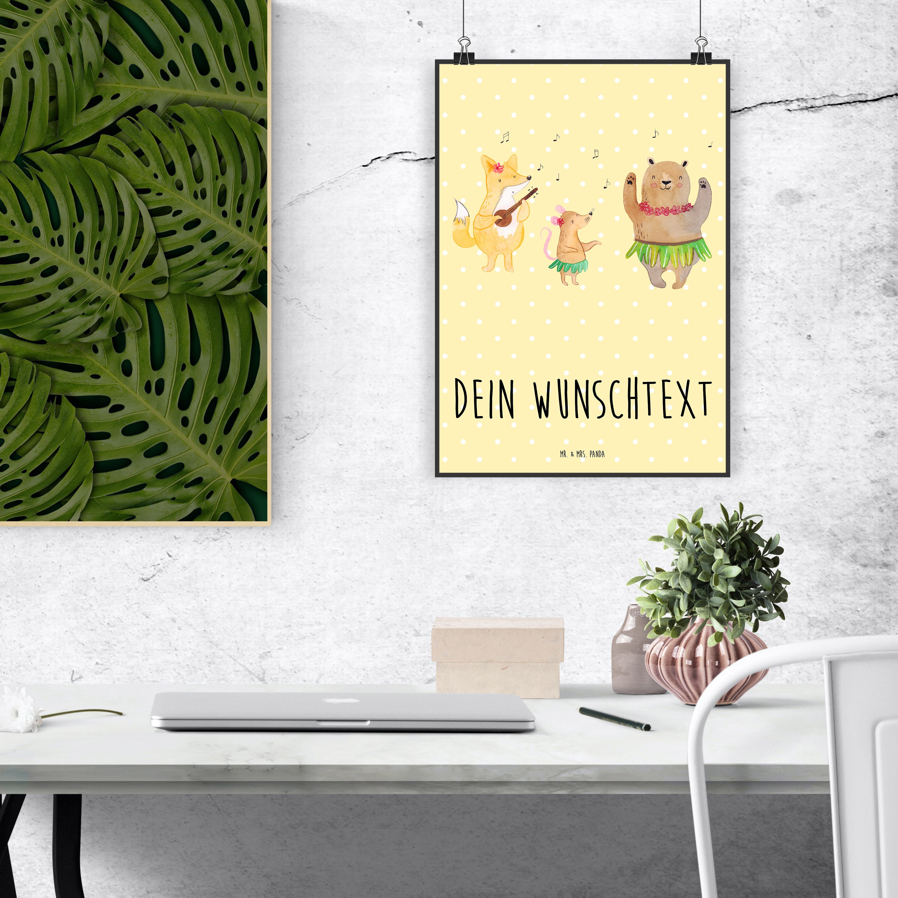 Personalisiertes Poster Waldtiere Aloha - Gelb Pastell - DIN A5