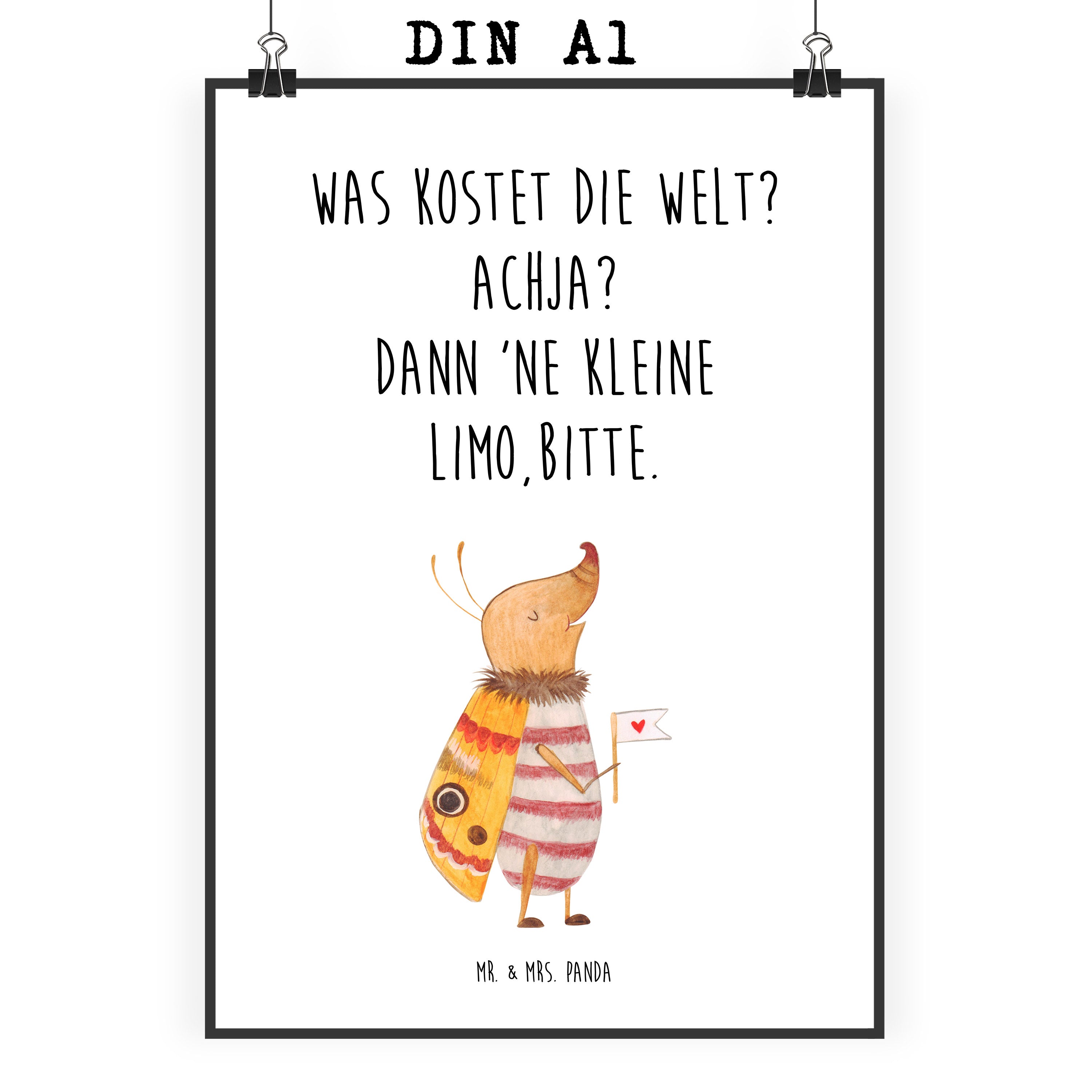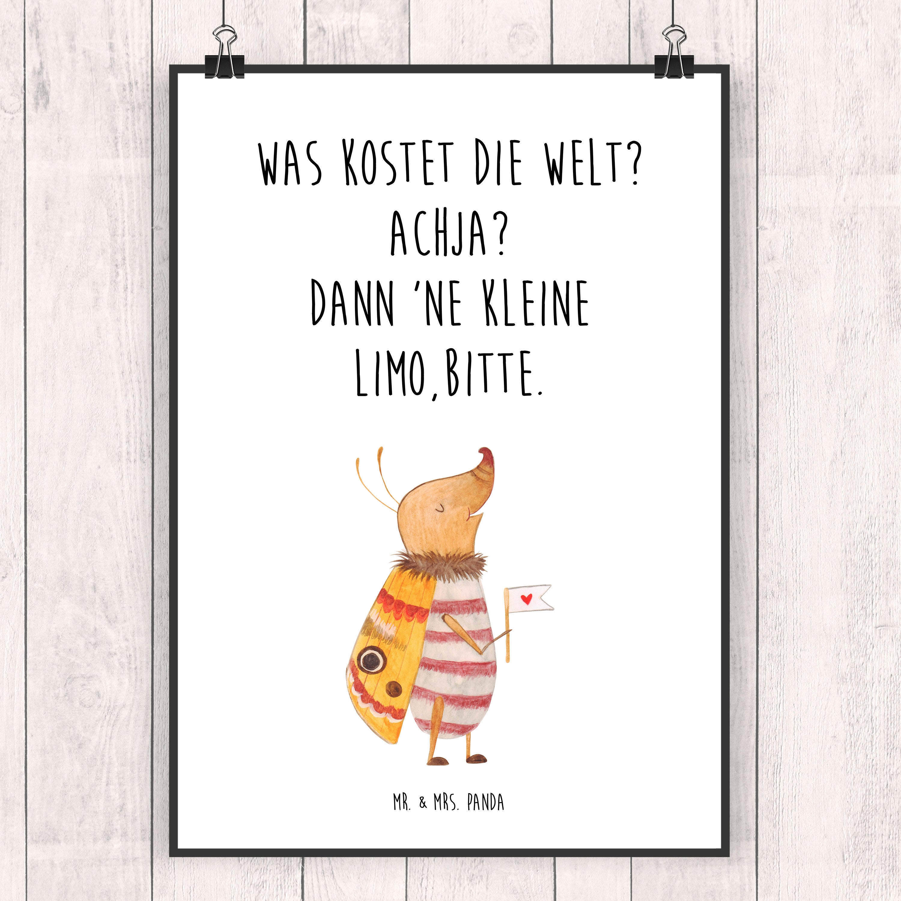 Poster Nachtfalter mit Fähnchen Poster, Wandposter, Bild, Wanddeko, Küchenposter, Kinderposter, Wanddeko Bild, Raumdekoration, Wanddekoration, Handgemaltes Poster, Mr. & Mrs. Panda Poster, Designposter, Kunstdruck, Posterdruck, Tiermotive, Gute Laune, lustige Sprüche, Tiere, Nachtfalter, Käfer, Spruch lustig, Spruch witzig, süß, niedlich, Küche Deko, Was kostet die Welt