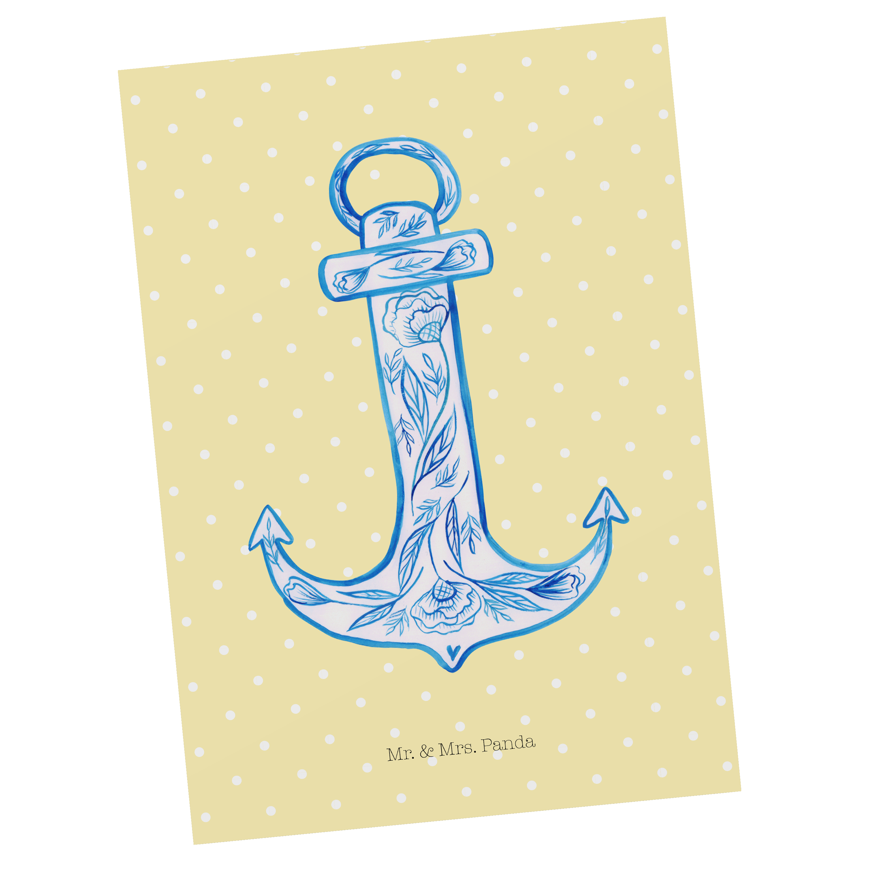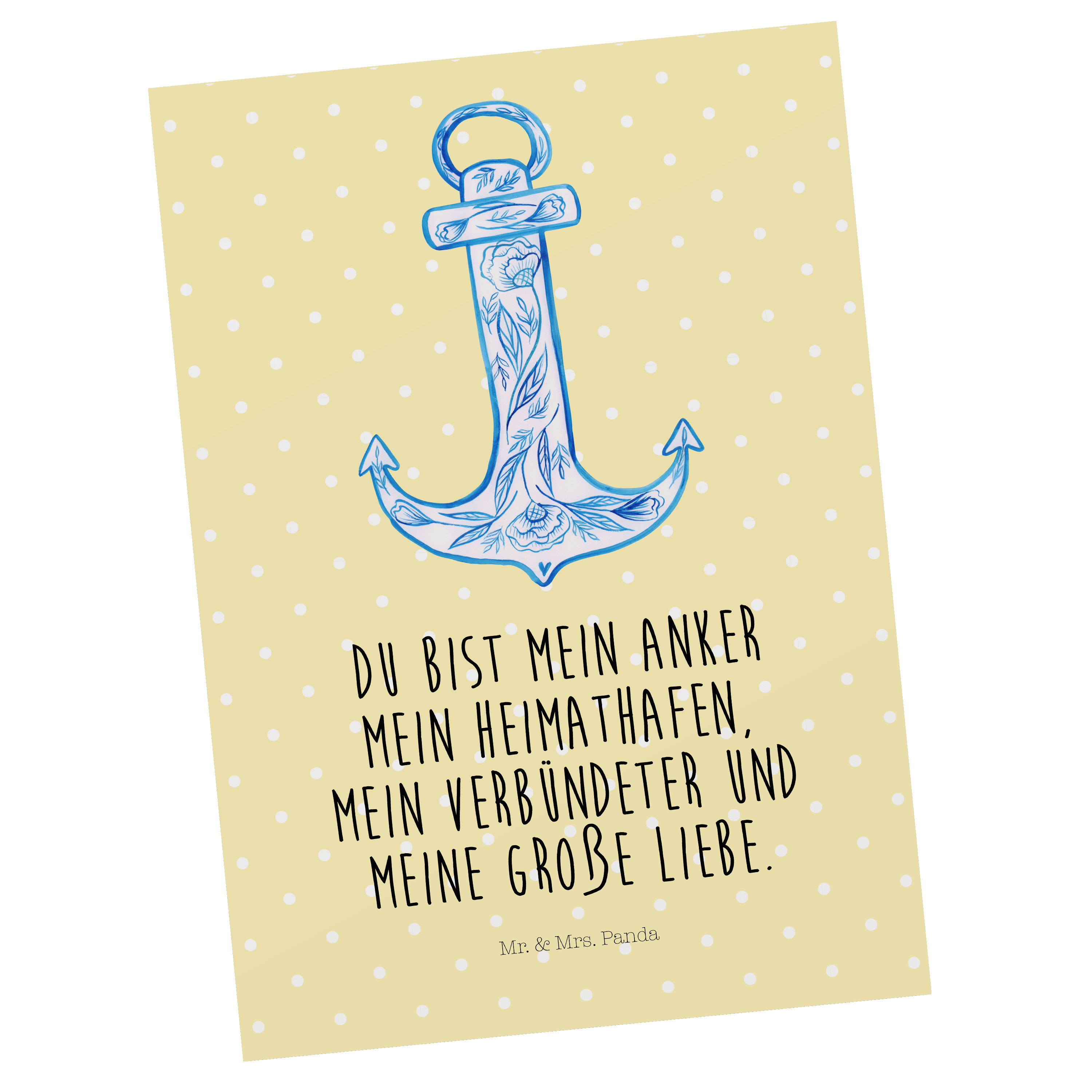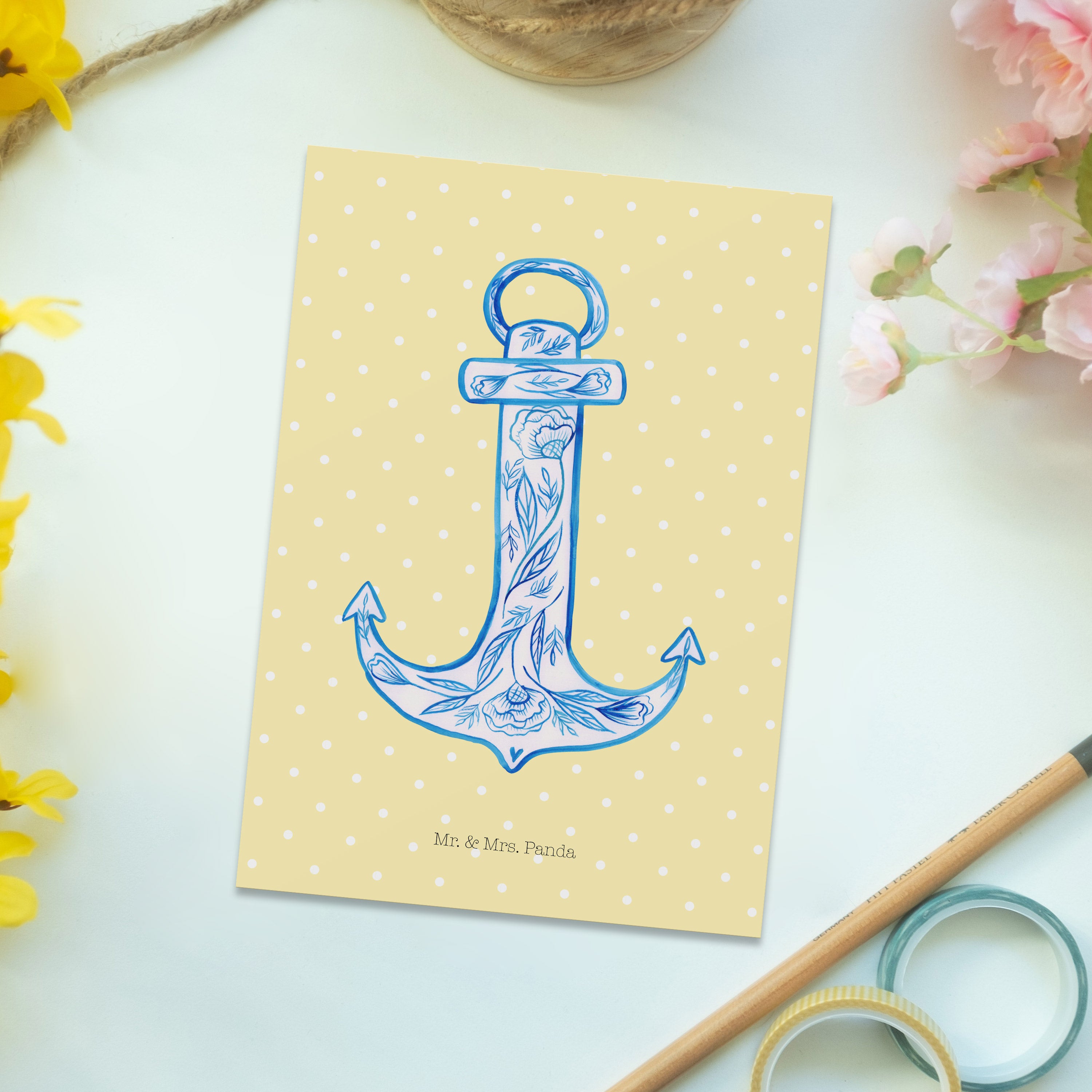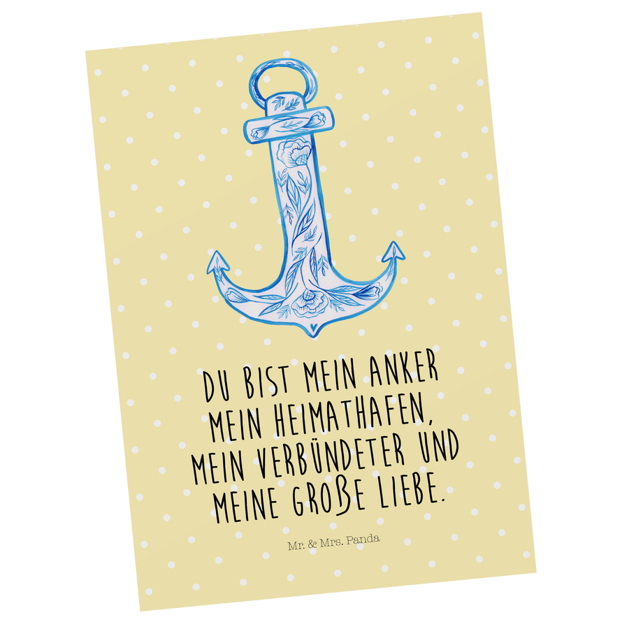 Postkarte Anker Blau - mit Spruch - Gelb Pastell