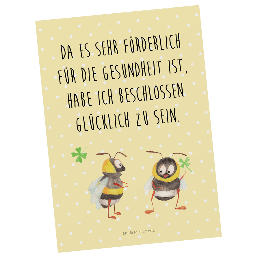 Postkarte Hummeln mit Kleeblatt - mit Spruch - Gelb Pastell