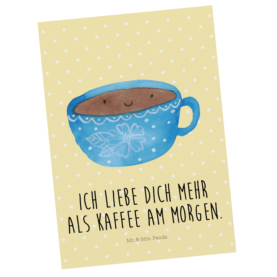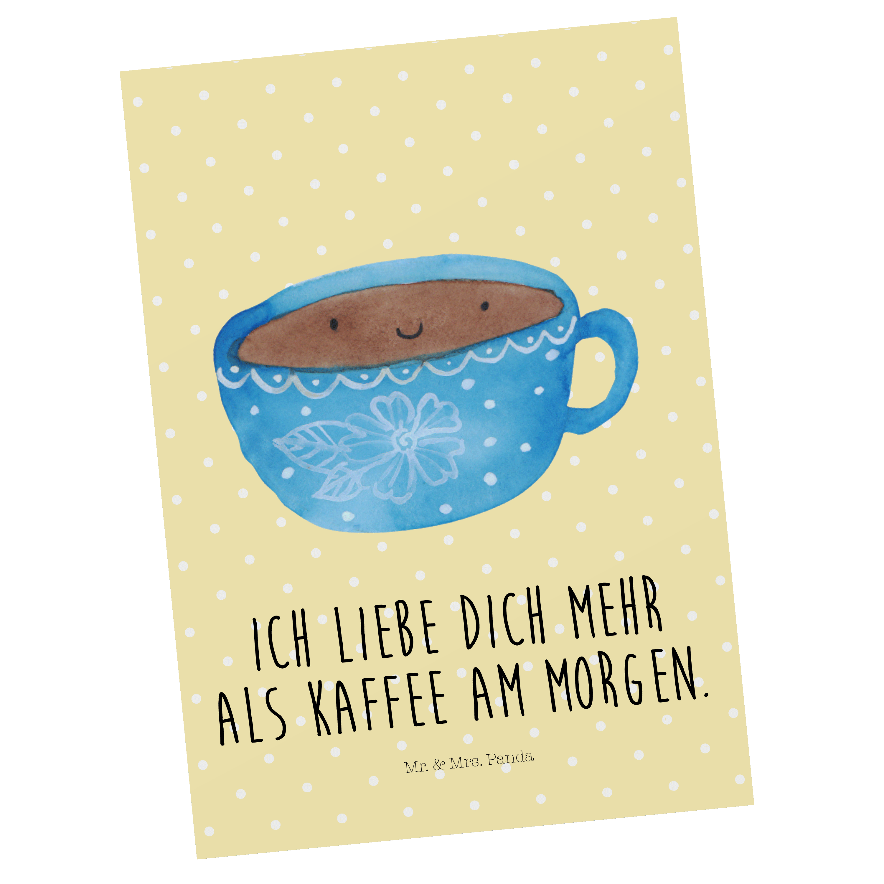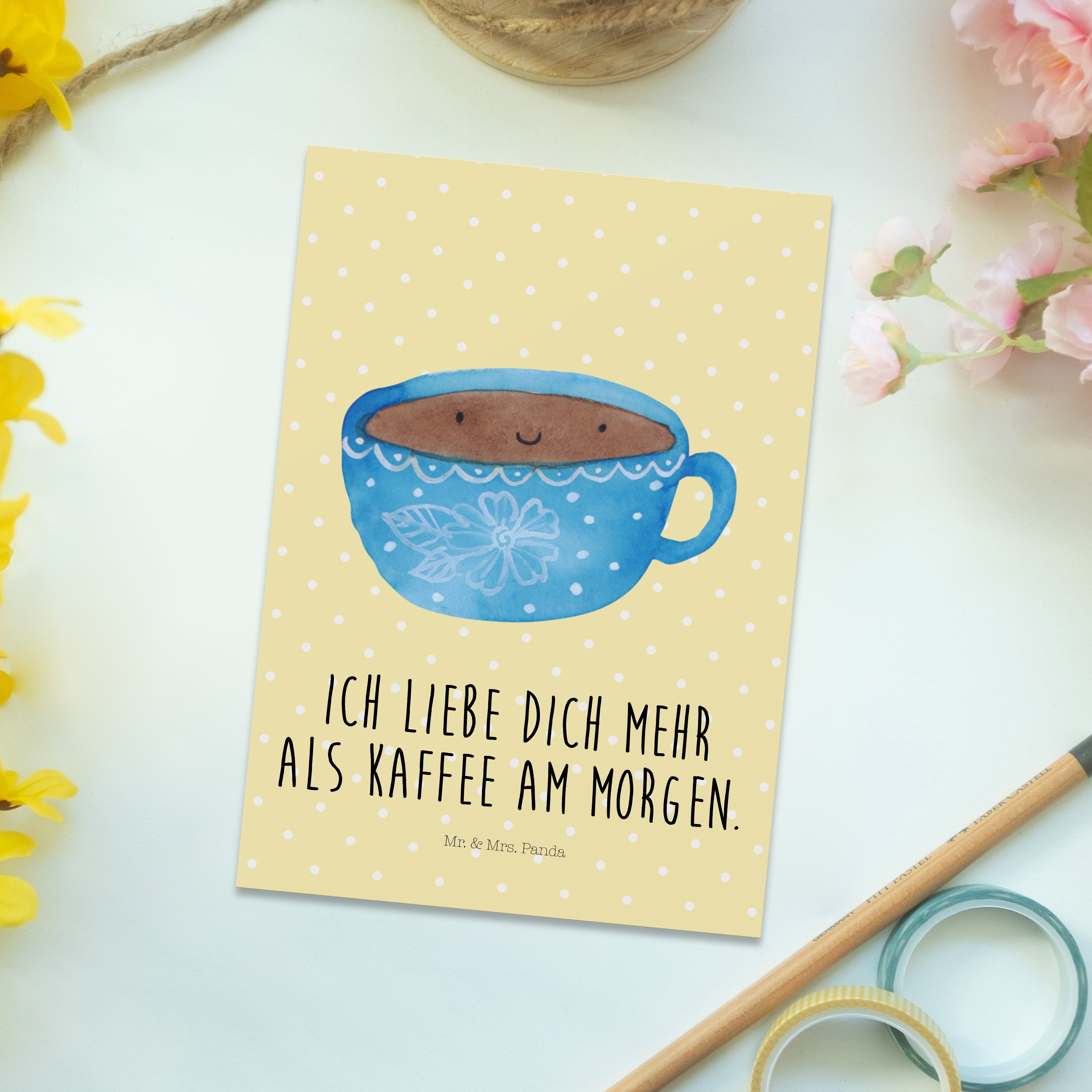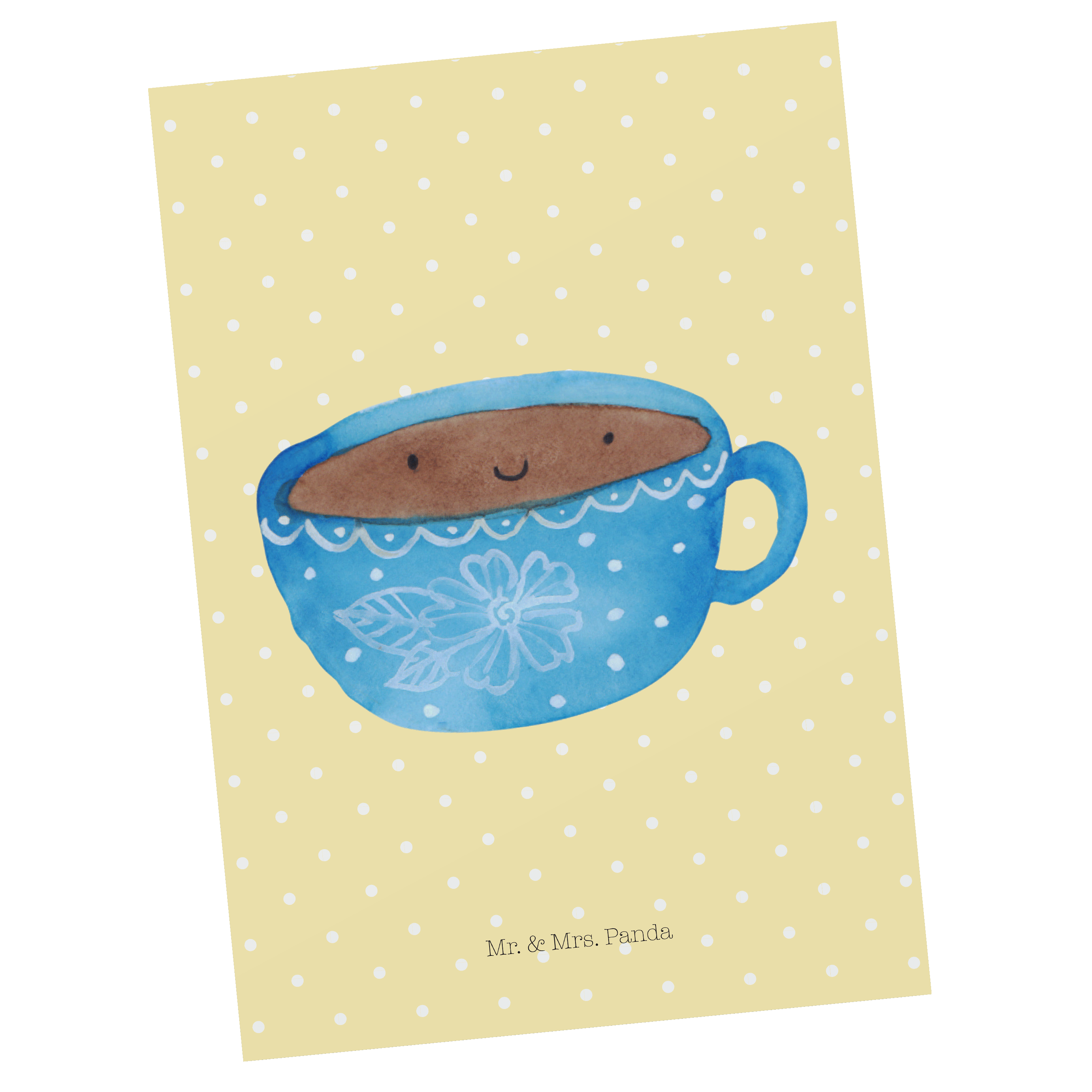 Postkarte Kaffee Tasse - mit Spruch - Gelb Pastell